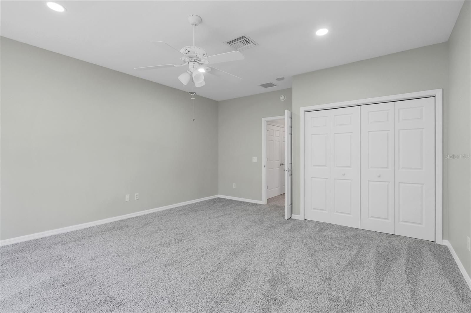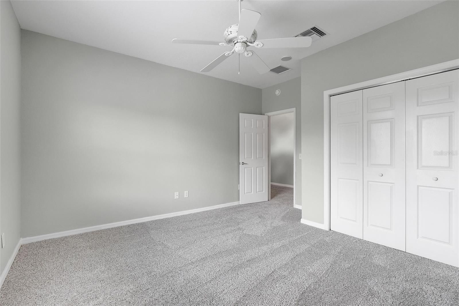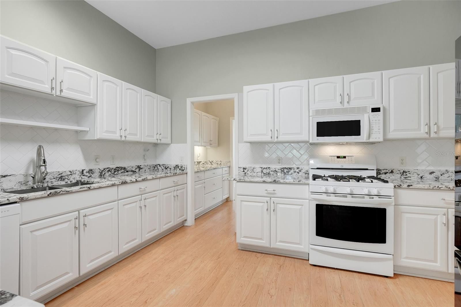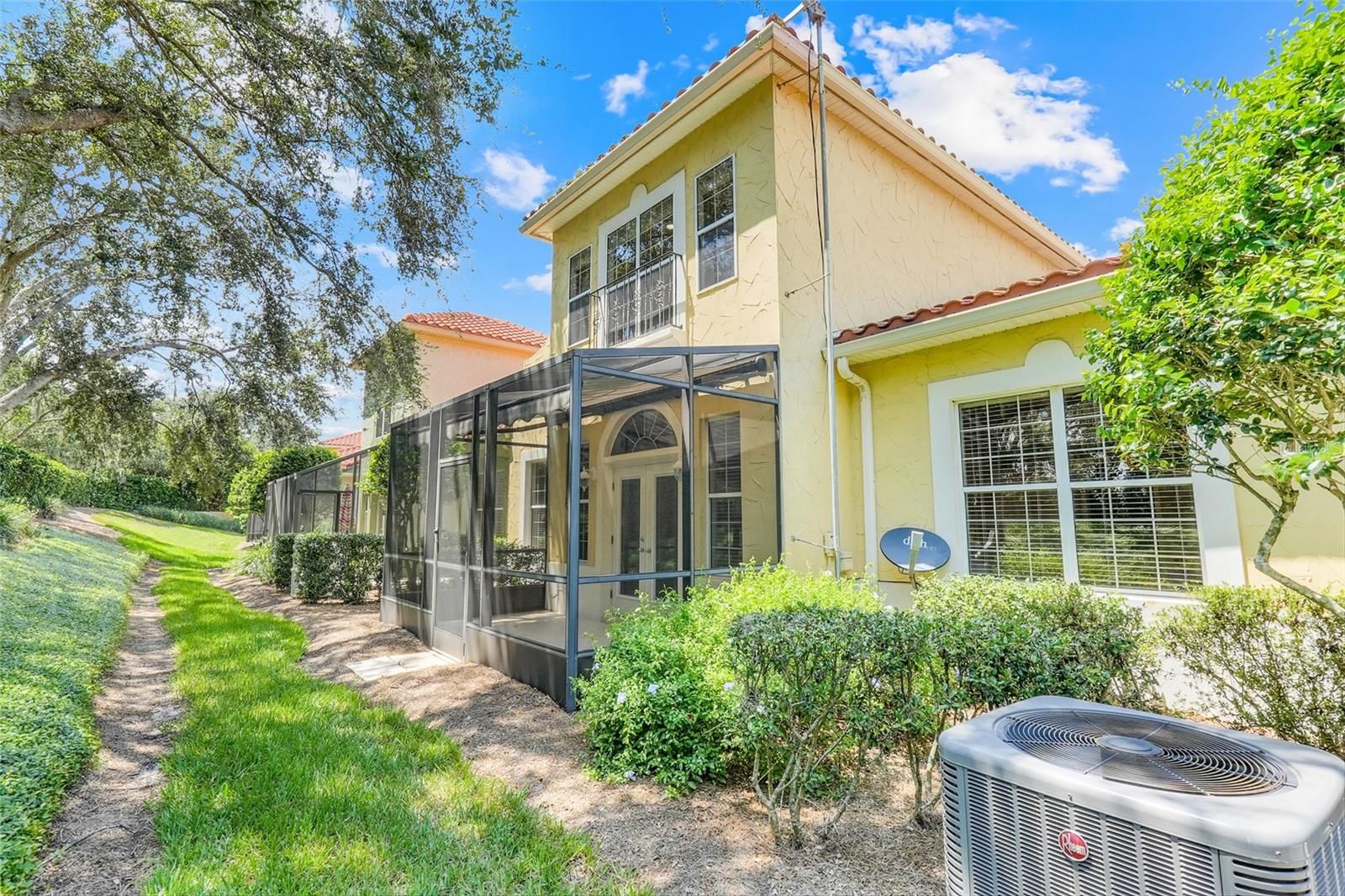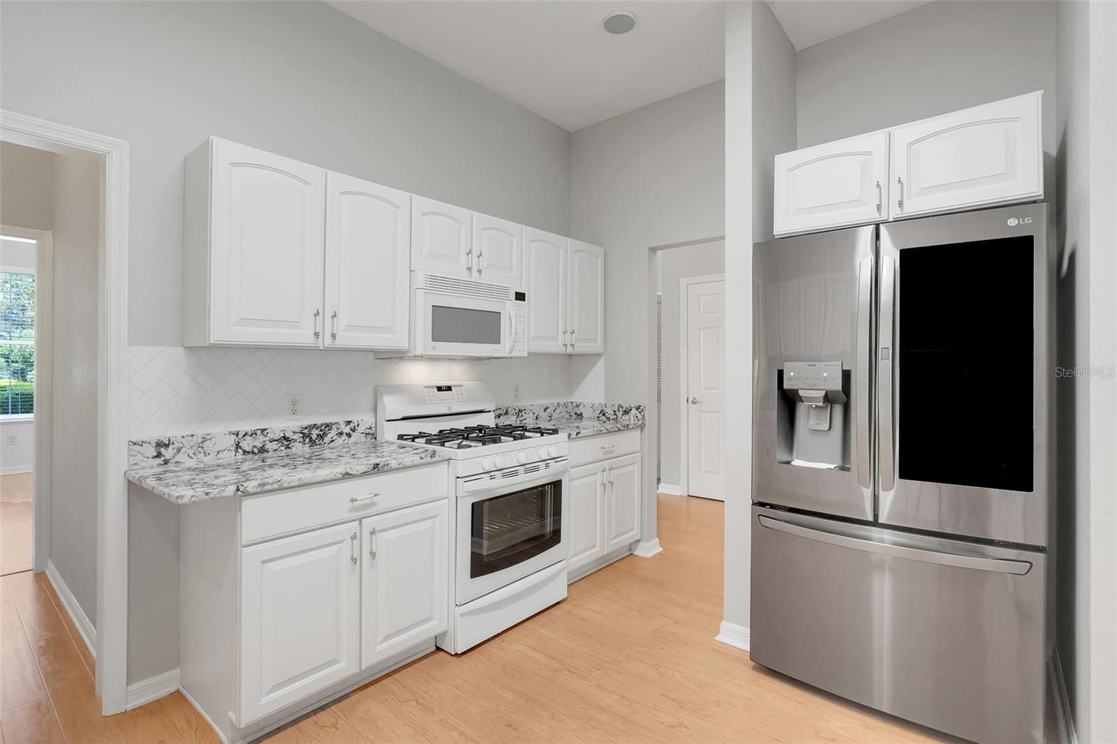 One or more photo(s) has been virtually staged. Welcome to this beautifully maintained 3-bedroom, 2.5-bath Vista Sonoma Villa, ideally located in a gated community just steps from the vibrant Spanish Springs Town Square in The Villages. This elegant home showcases a classic Spanish-style exterior with a California barrel clay tile roof, gutters, and downspouts—offering both charm and durability. A tiled front porch welcomes you into a bright and spacious foyer with soaring ceilings throughout. The FRESHLY PAINTED INTERIOR (2025) and beautifully REMODELED kitchen are true highlights. The kitchen features GRANITE countertops, upgraded cabinetry, NEWER appliances, and a brand-new light fixture. It also includes a butler's pantry with plenty of cabinets for additional storage. The kitchen seamlessly flows into the living room, creating an ideal layout for entertaining. The living room includes a setup for a TV projector and opens through French doors to your private screened patio—perfect for morning coffee or evening relaxation. The main level hosts a generous primary suite complete with an en-suite bathroom and walk-in closet. Upstairs, you’ll find two additional bedrooms with BRAND-NEW carpet (2025) and a full bathroom with a shower-tub combo—perfect for guests or family, plus ample storage space. Additional highlights include an inside laundry room, a convenient half bath off the garage entry, and a 1.5-car garage with plenty of room for storage or a golf cart. Just a short walk from shopping, dining, and nightly entertainment, this immaculate villa offers the best of The Villages lifestyle. Whether you're entertaining or simply relaxing, this home is priced to sell and ready to welcome you home!