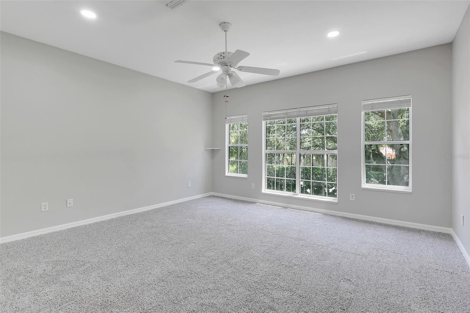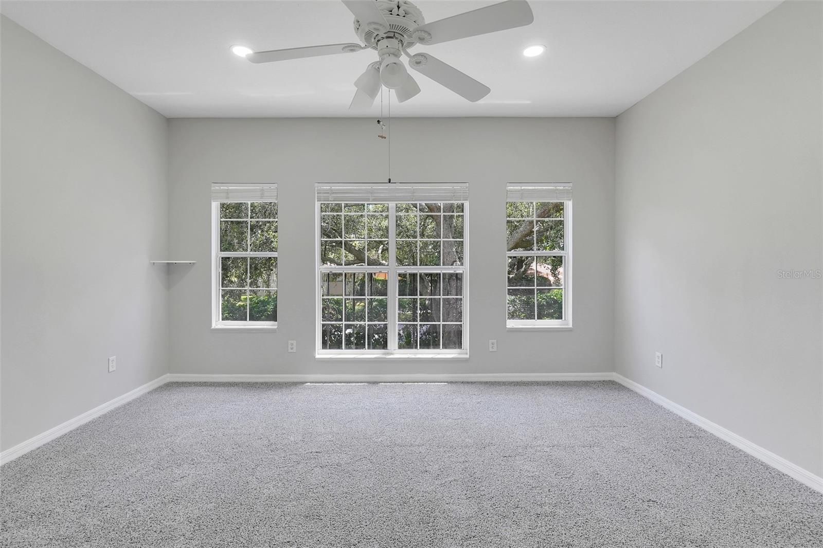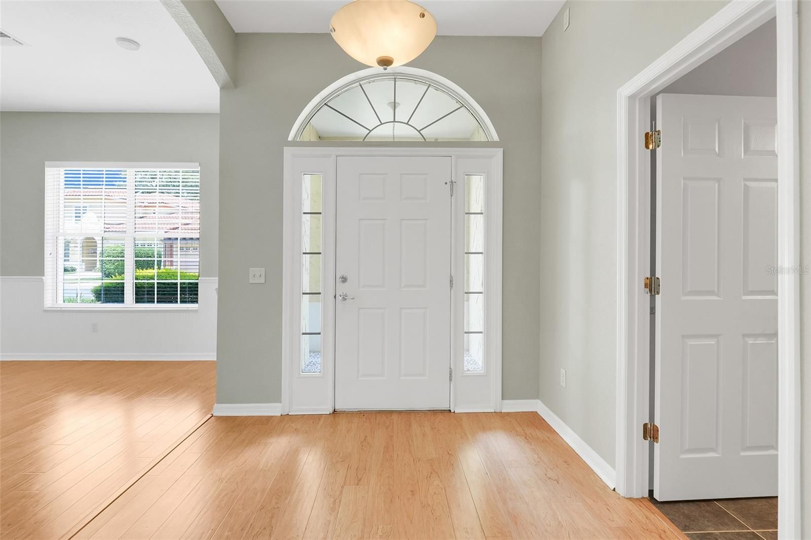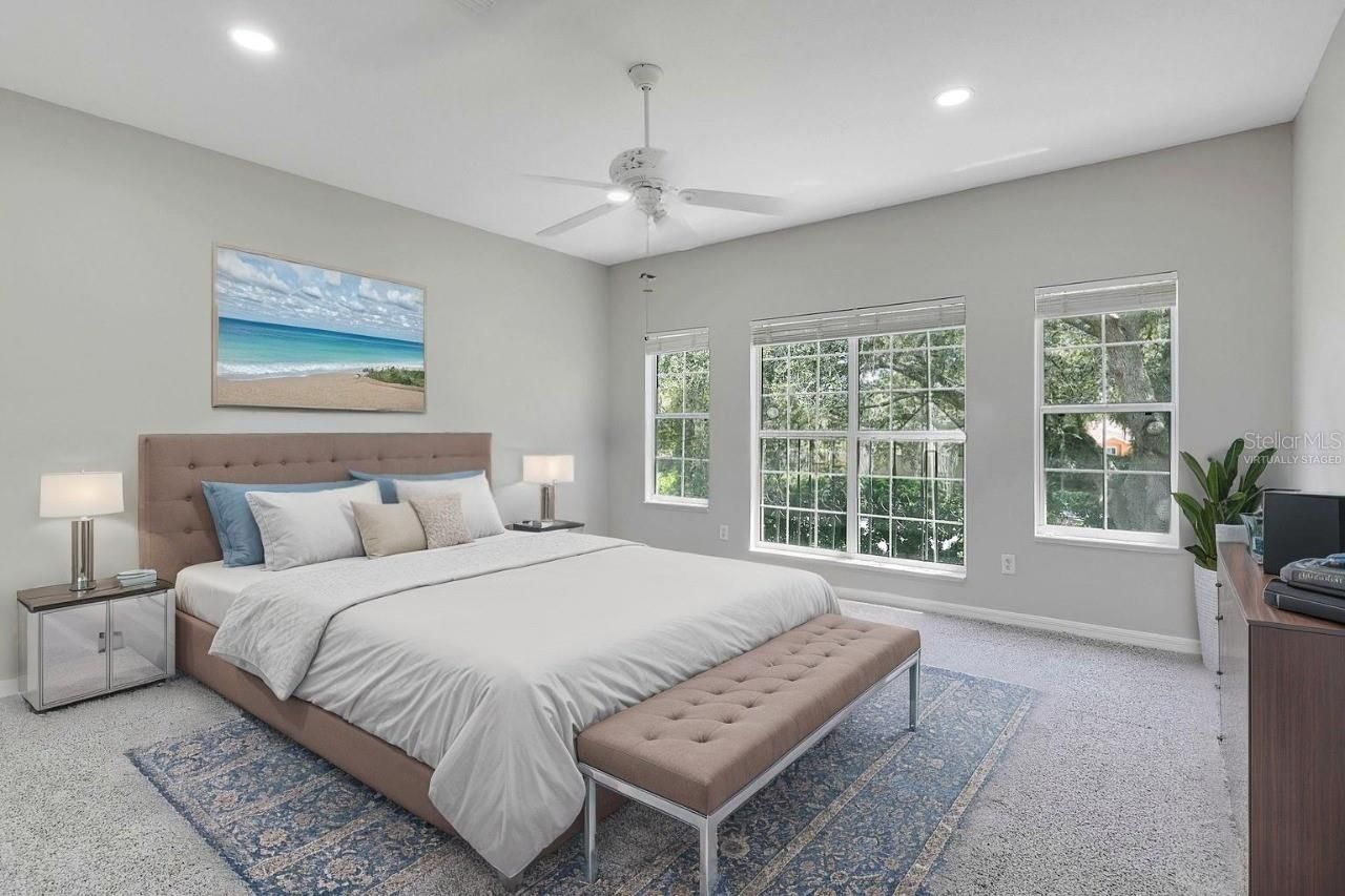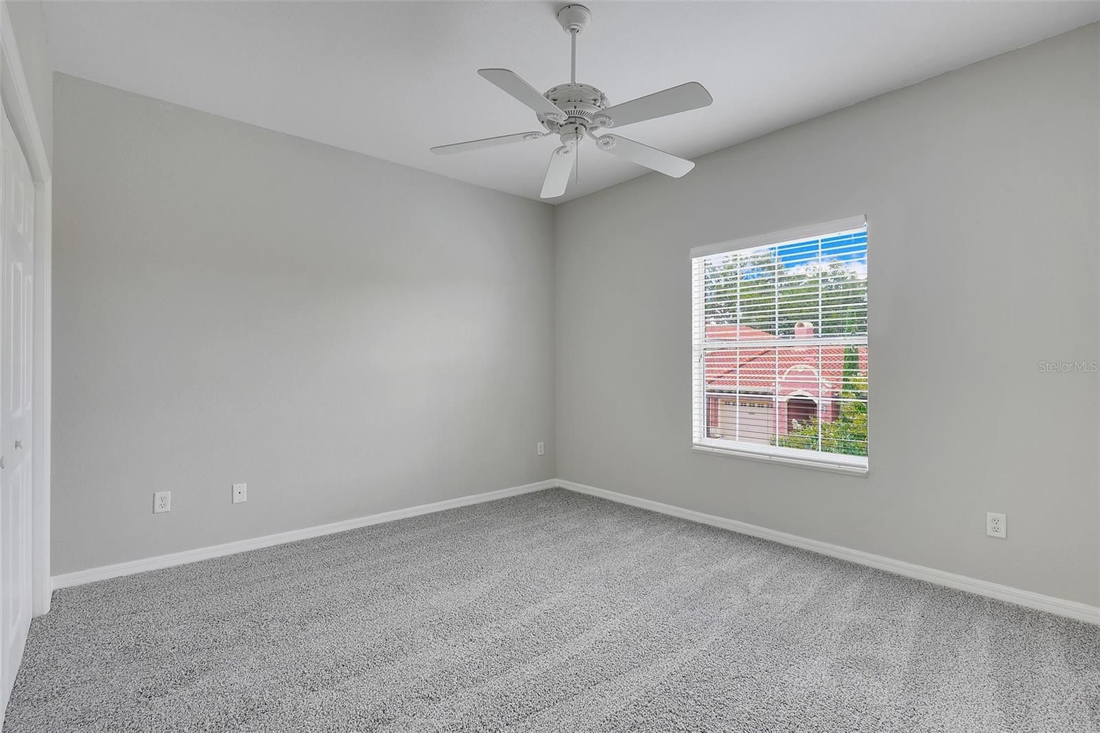 One or more photo(s) has been virtually staged. Welcome to this beautifully maintained 3-bedroom, 2.5-bath Vista Sonoma Villa, ideally located in a gated community just steps from the vibrant Spanish Springs Town Square in The Villages. This elegant home showcases a classic Spanish-style exterior with a California barrel clay tile roof, gutters, and downspouts—offering both charm and durability. A tiled front porch welcomes you into a bright and spacious foyer with soaring ceilings throughout. The FRESHLY PAINTED INTERIOR (2025) and beautifully REMODELED kitchen are true highlights. The kitchen features GRANITE countertops, upgraded cabinetry, NEWER appliances, and a brand-new light fixture. It also includes a butler's pantry with plenty of cabinets for additional storage. The kitchen seamlessly flows into the living room, creating an ideal layout for entertaining. The living room includes a setup for a TV projector and opens through French doors to your private screened patio—perfect for morning coffee or evening relaxation. The main level hosts a generous primary suite complete with an en-suite bathroom and walk-in closet. Upstairs, you’ll find two additional bedrooms with BRAND-NEW carpet (2025) and a full bathroom with a shower-tub combo—perfect for guests or family, plus ample storage space. Additional highlights include an inside laundry room, a convenient half bath off the garage entry, and a 1.5-car garage with plenty of room for storage or a golf cart. Just a short walk from shopping, dining, and nightly entertainment, this immaculate villa offers the best of The Villages lifestyle. Whether you're entertaining or simply relaxing, this home is priced to sell and ready to welcome you home!