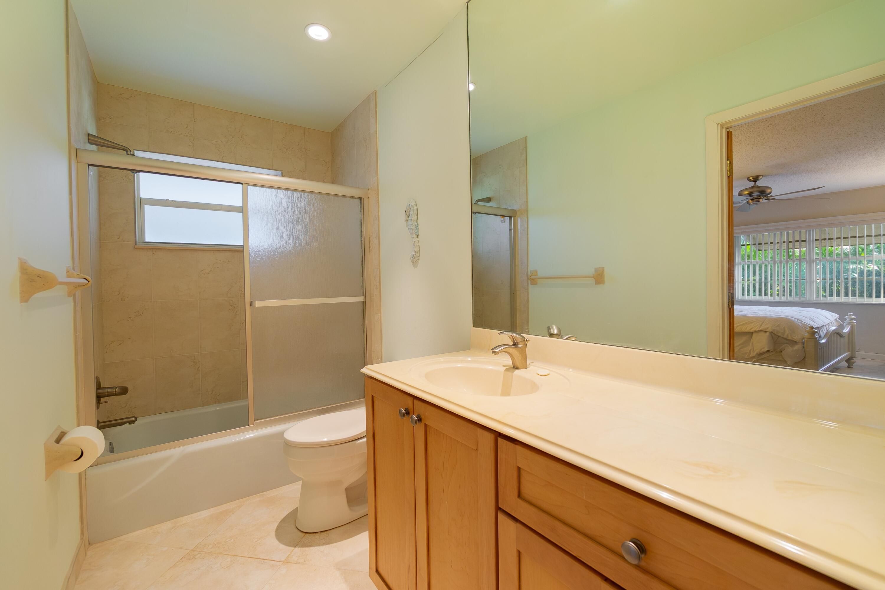 Stylish two bedroom, two Bath 1st floor villa-style condo with Travertine Tile floors throughout. End Unit. Kitchen is opened up to the living room creating an airy feel. Quality Thomasville cabinetry in kitchen and baths. Hall bathroom has a walk-in shower. Front Florida room porch is used as a Den. Rear Open patio with privacy landscaping. Front and rear screen doors added to catch those beautiful balmy winter breezes. Enjoy the Florida lifestyle you deserve. Only 5 miles to the Public Beach! Brand New Electrical panels just installed inside and out! Roof - 2018, A/C - 2019. Washing machine in master suite is included in the sale.