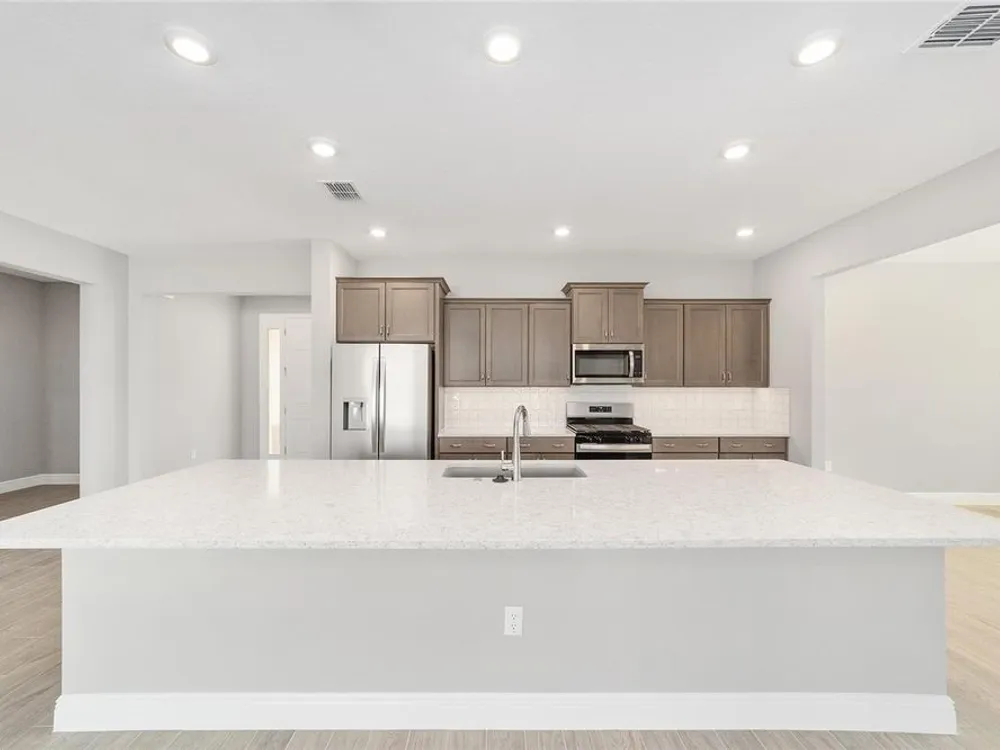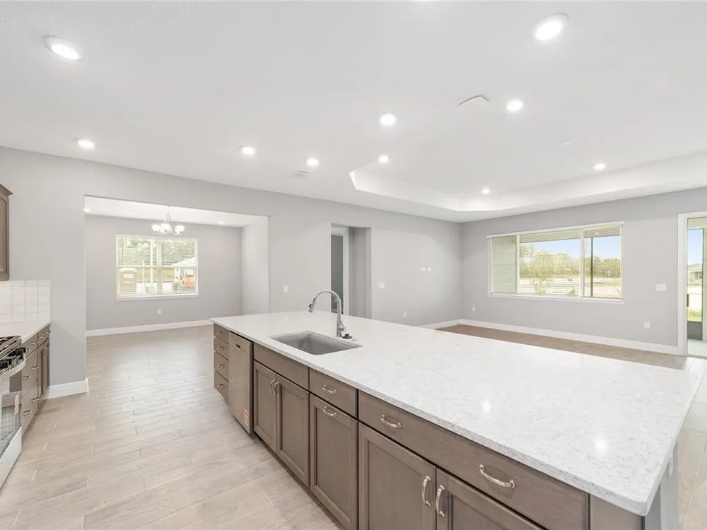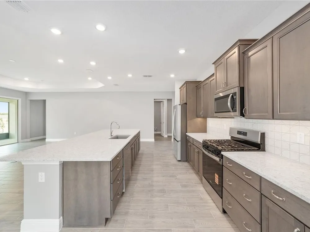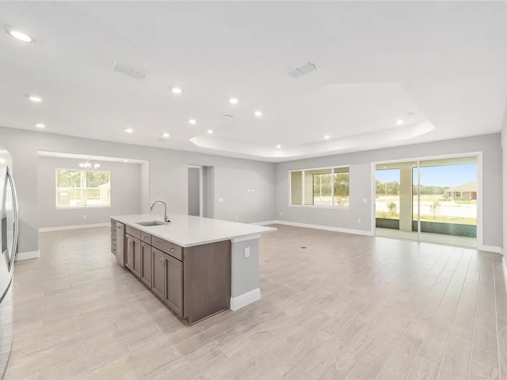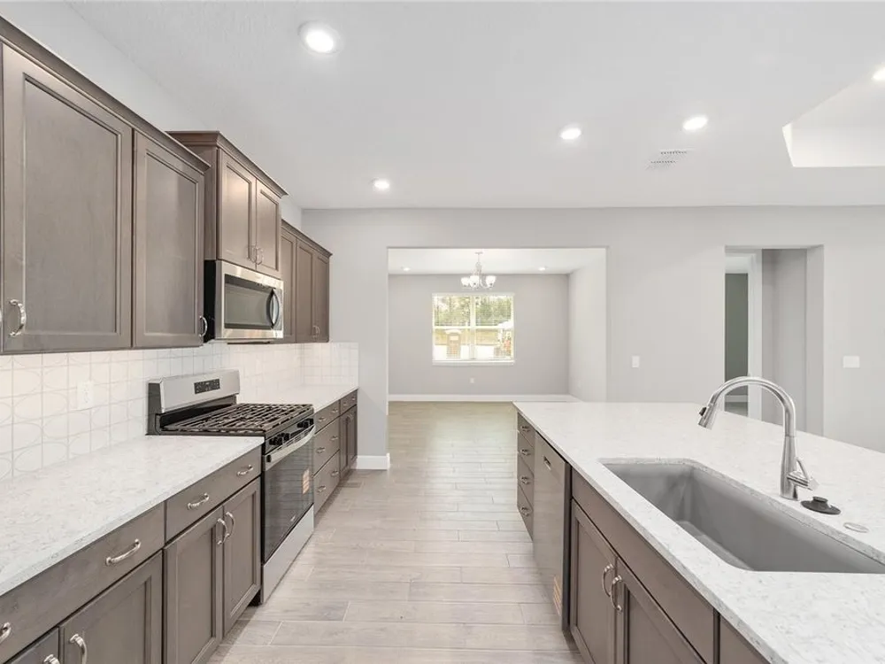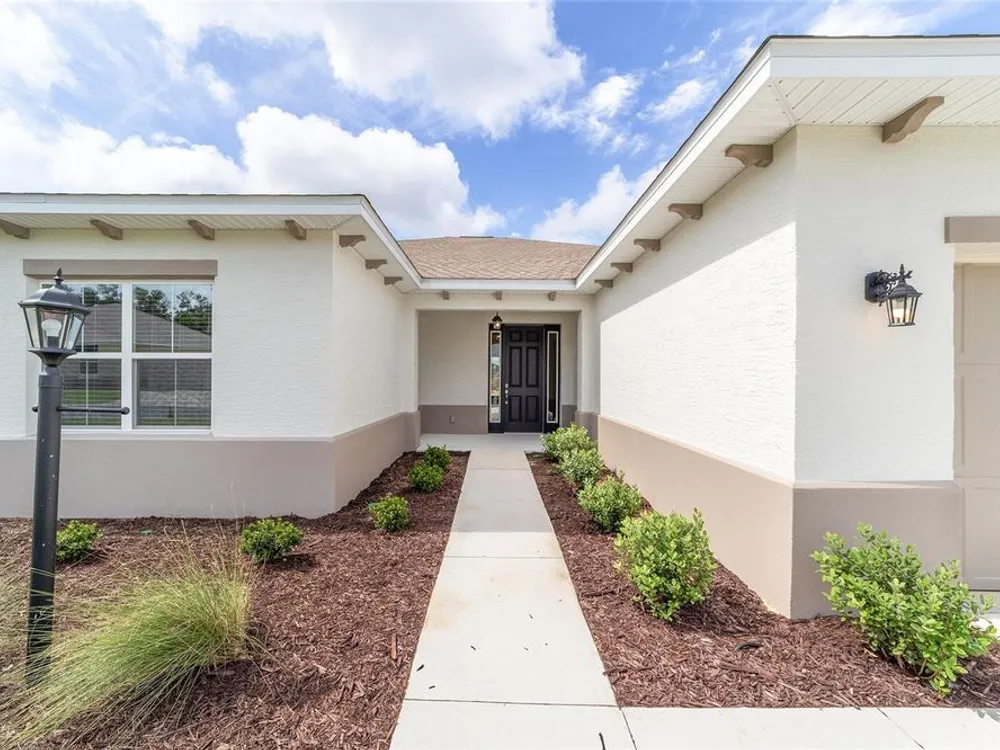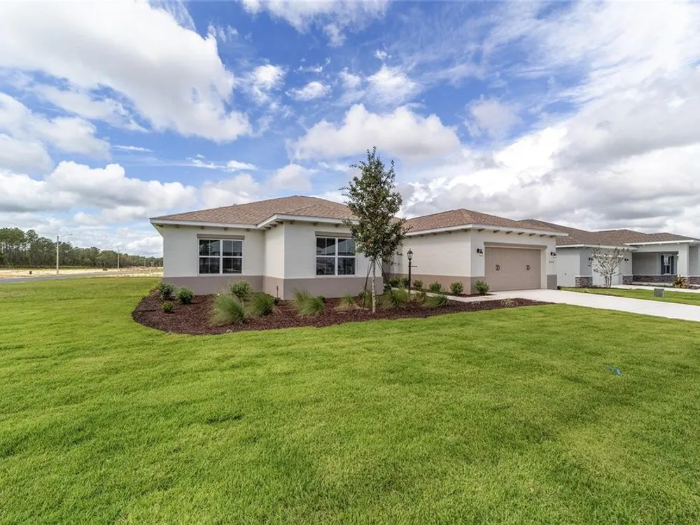 Beautiful New Construction Willem Model in Longleaf Ridge! Welcome home to this stunning new Willem model offering over 2,500 sq. ft. of beautifully designed living space. Situated on a desirable corner lot, this 3-bedroom, 3-bath home with a 2-car garage combines elegant design with functional comfort. The open floor plan features tile flooring throughout and tray ceilings that enhance the home’s bright and spacious feel. The gourmet kitchen is a showpiece with stainless steel appliances, a large island with quartz countertops, staggered cabinets with crown molding, under-cabinet lighting, a tile backsplash, and a walk-in pantry. A separate dining area provides the perfect space for hosting family and friends. The luxurious primary suite includes a tray ceiling and a three-panel window overlooking the backyard, a large walk-in closet, and a spa-inspired ensuite bath with dual quartz vanities and a zero-entry tiled shower with a built-in bench. Bedroom 2 offers its own private ensuite bath featuring an extended quartz vanity and a walk-in tiled shower with a glass door. Bedroom 3 has a spacious closet and convenient access to the third full bath, which includes a quartz vanity and a tiled tub/shower combination. Located in the desirable Longleaf Ridge neighborhood of On Top of the World, this exceptional home blends modern design, comfort, and the unmatched amenities of one of Ocala’s premier active adult communities.
