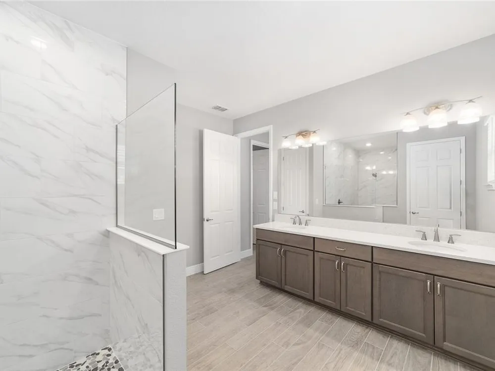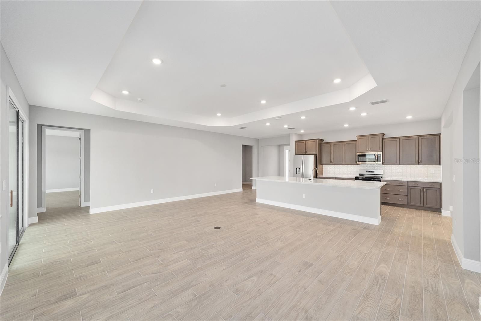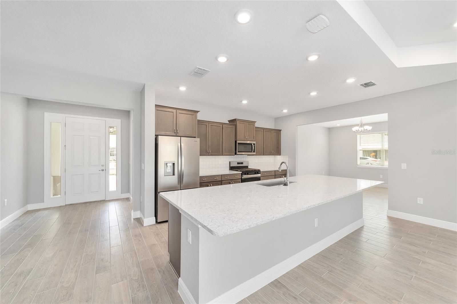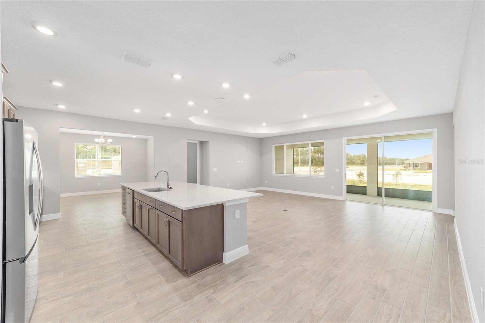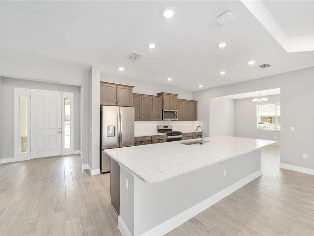 Beautiful New Construction Willem Model in Longleaf Ridge! Welcome home to this stunning new Willem model offering over 2,500 sq. ft. of beautifully designed living space. Situated on a desirable corner lot, this 3-bedroom, 3-bath home with a 2-car garage combines elegant design with functional comfort. The open floor plan features tile flooring throughout and tray ceilings that enhance the home’s bright and spacious feel. The gourmet kitchen is a showpiece with stainless steel appliances, a large island with quartz countertops, staggered cabinets with crown molding, under-cabinet lighting, a tile backsplash, and a walk-in pantry. A separate dining area provides the perfect space for hosting family and friends. The luxurious primary suite includes a tray ceiling and a three-panel window overlooking the backyard, a large walk-in closet, and a spa-inspired ensuite bath with dual quartz vanities and a zero-entry tiled shower with a built-in bench. Bedroom 2 offers its own private ensuite bath featuring an extended quartz vanity and a walk-in tiled shower with a glass door. Bedroom 3 has a spacious closet and convenient access to the third full bath, which includes a quartz vanity and a tiled tub/shower combination. Located in the desirable Longleaf Ridge neighborhood of On Top of the World, this exceptional home blends modern design, comfort, and the unmatched amenities of one of Ocala’s premier active adult communities.