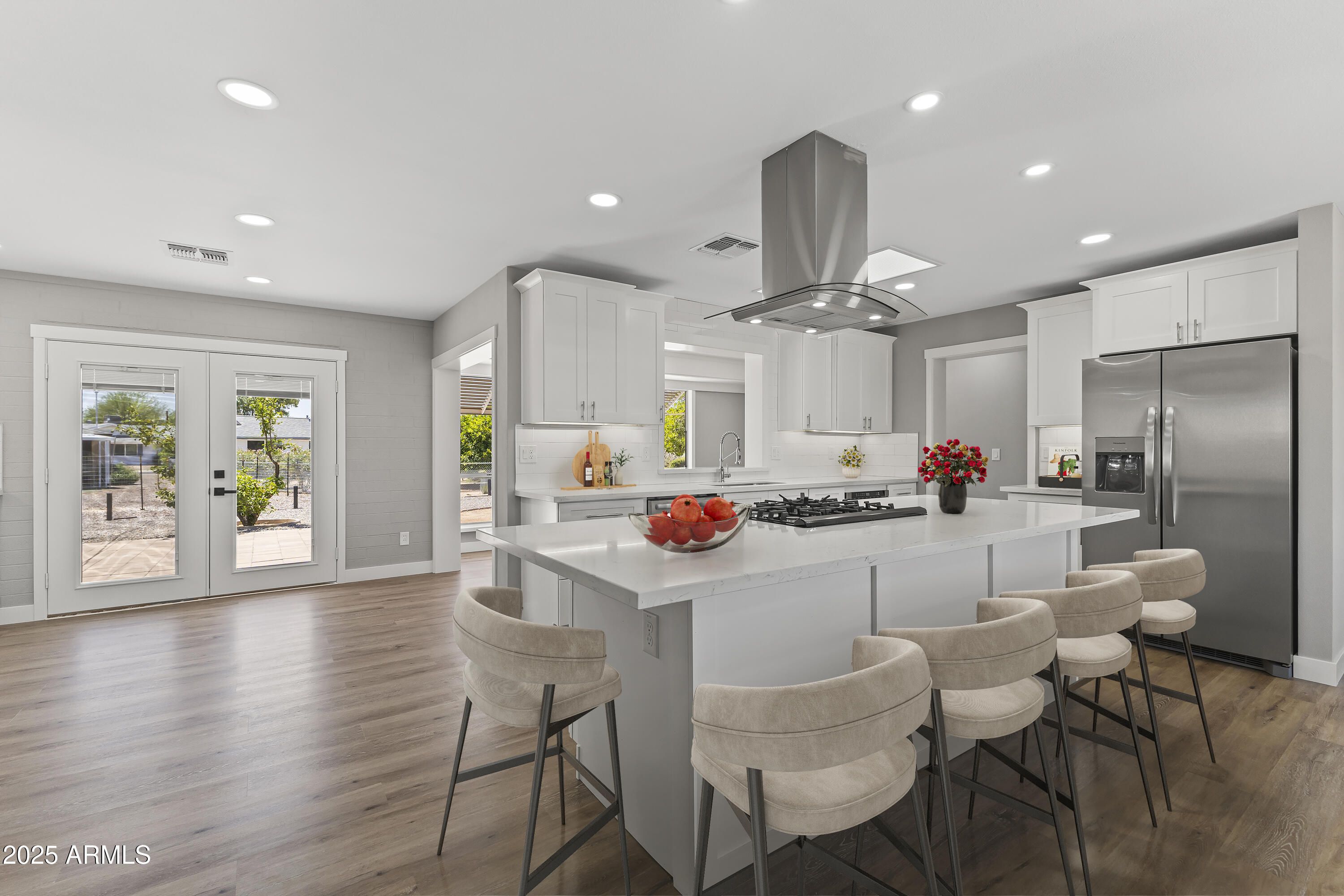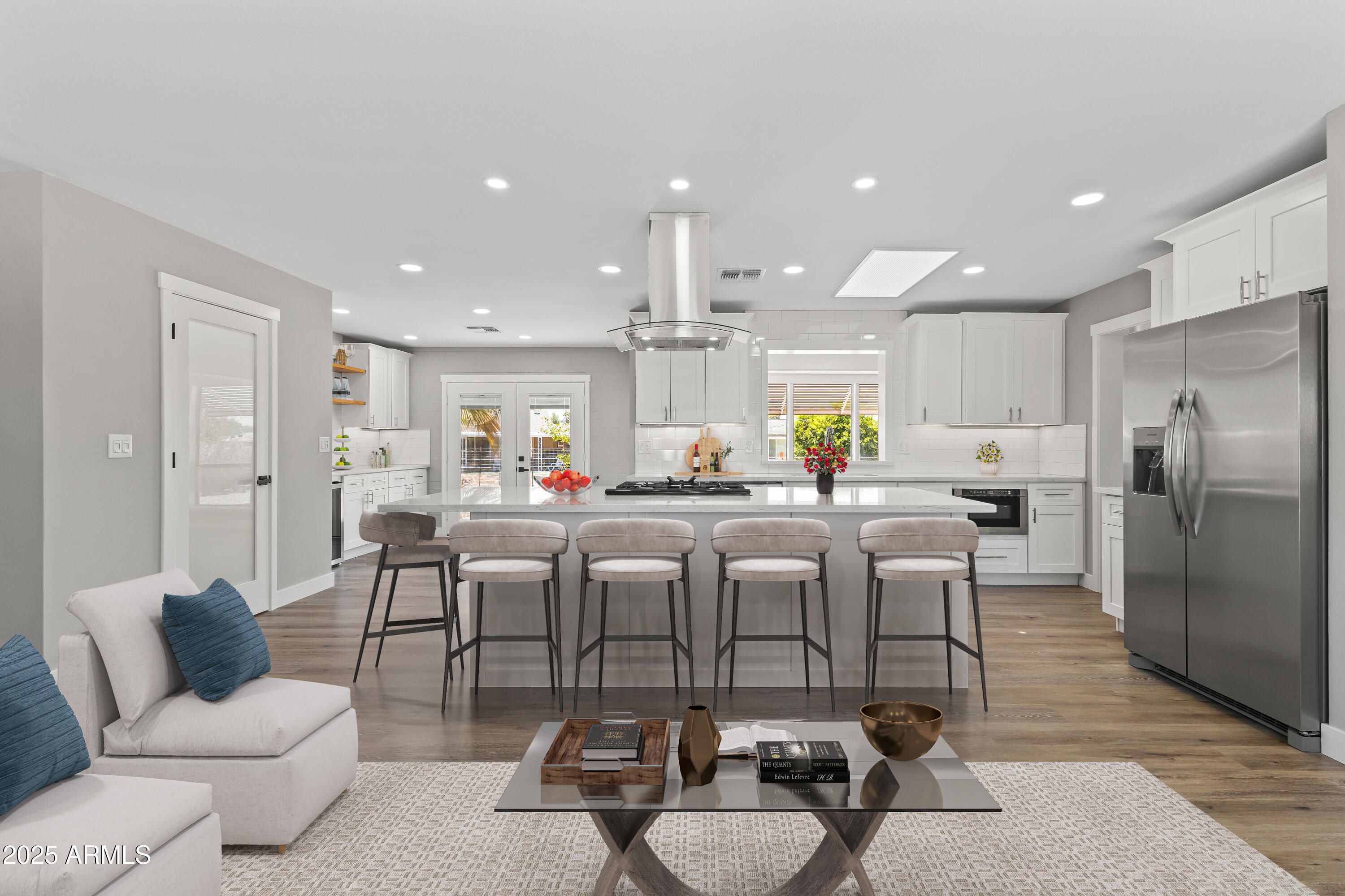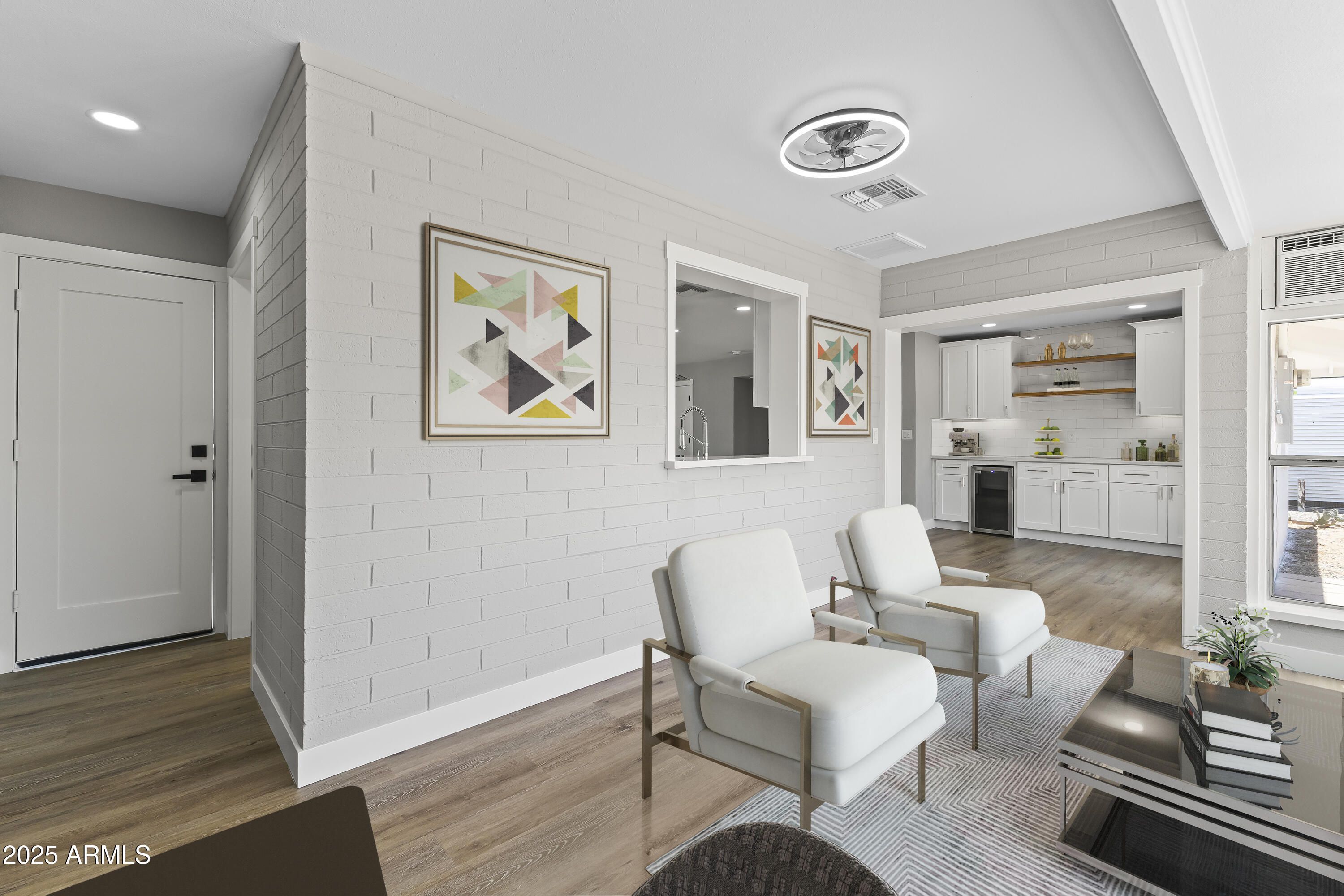 Move-in ready! This home features a chef's kitchen with a 9-ft quartz island, gas range, drawer microwave, dry bar with beverage fridge, and a custom pantry with lighting on every shelf. Soft-close shaker cabinets with beautiful backsplash complete this dream kitchen. Luxury vinyl plank floors flow throughout, with shiplap in the living room and craftsman doors and trim throughout the home adding timeless charm. The bathrooms showcase tiled showers, including a curbless walk-in shower in the master. Fresh interior and exterior paint make this home the perfect blend of style, comfort, and convenience. Seller to purchase 1 yr home warranty for Buyers. Major updates include a new electrical panel, replaced sewer line, and an updated, fully inspected HVAC system. All of this is located in a vibrant 55+ community offering golf, pickleball, tennis, pools, fitness centers, medical facilities, shopping, and dining. This home is truly move-in ready. Everything has been done for you!