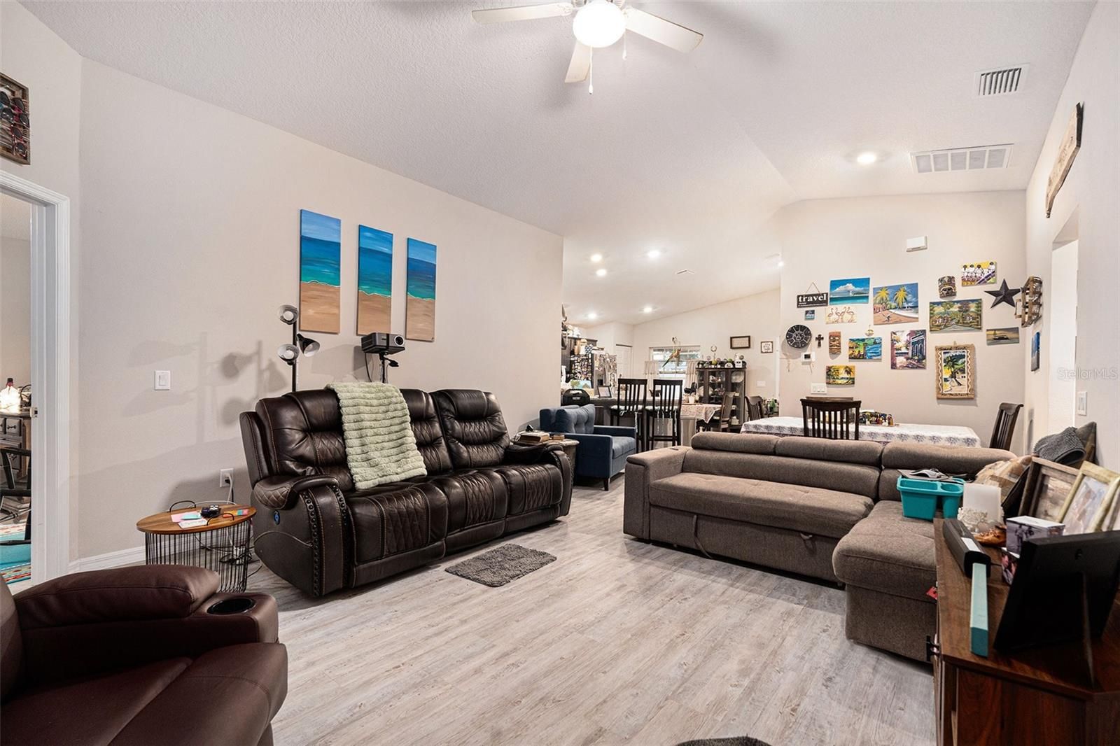 - Ceiling Fan(s), Eat-in Kitchen, Kitchen/Family Room Combo, Living/Dining Room, Open Floorplan, Split Bedrooms, Stone Counters, Walk-In Closet(s)
