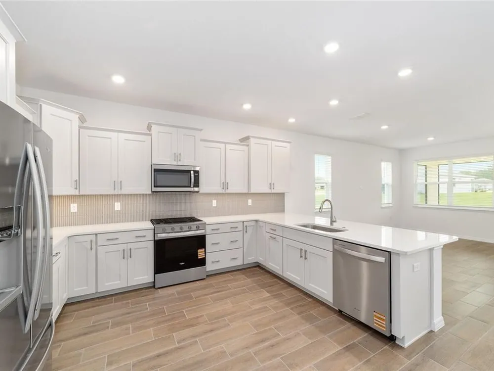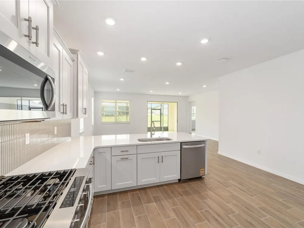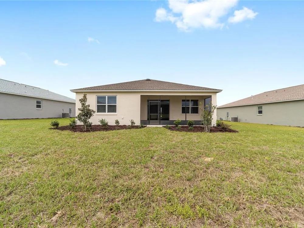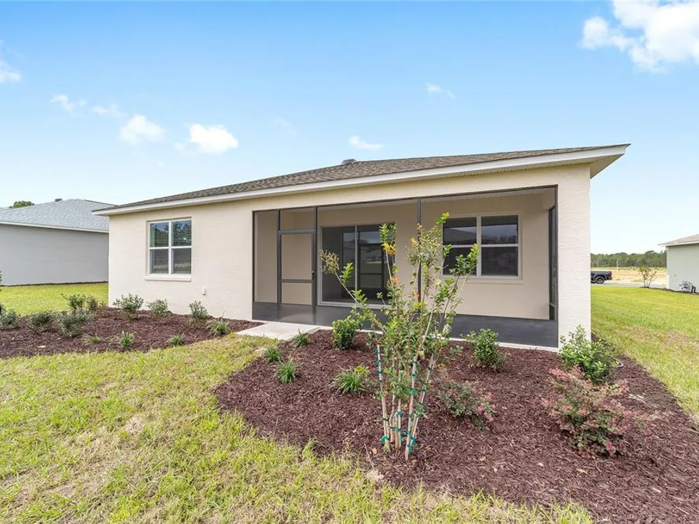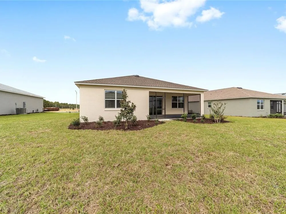 Beautiful New Construction Orchid Model in Longleaf Ridge! Discover modern comfort and style in this stunning 3-bedroom, 2-bath Orchid floor plan with over 1,800 sq. ft. of living space. Designed for easy living, this home features an open concept layout with tile flooring throughout and a screened lanai perfect for relaxing or entertaining. The gourmet kitchen offers staggered cabinets with crown molding, under-cabinet lighting, quartz countertops, a tile backsplash, and stainless-steel appliances — seamlessly opening to the dining and living areas. The spacious primary suite includes two rear-facing windows with blinds overlooking the backyard, a luxurious ensuite bath with double quartz vanities, a zero-entry tiled shower with a built-in bench, and a large walk-in closet. Bedrooms two and three both feature generous closet space, with the second bath offering a quartz vanity and a tub/shower combination. Enjoy maintenance-free living and world-class amenities in the gated-On Top of the World community, where active adult living meets modern elegance in Longleaf Ridge.