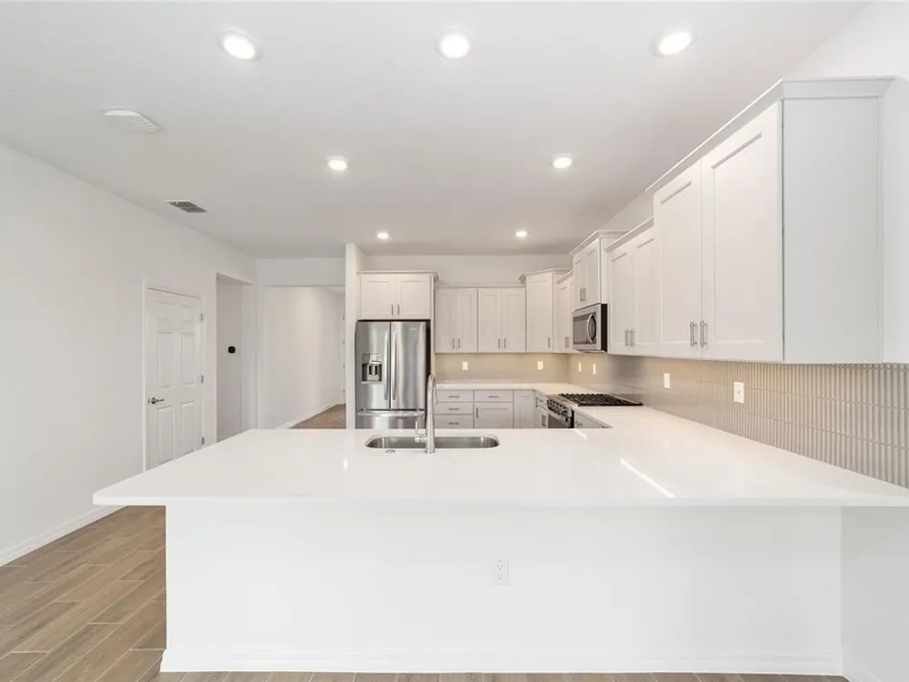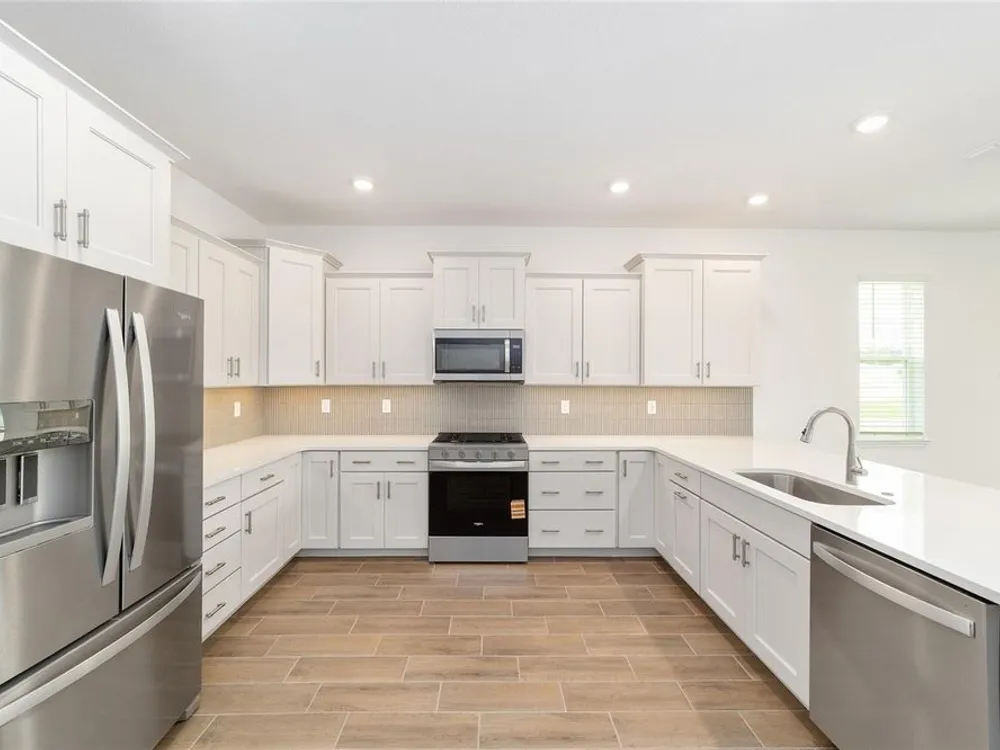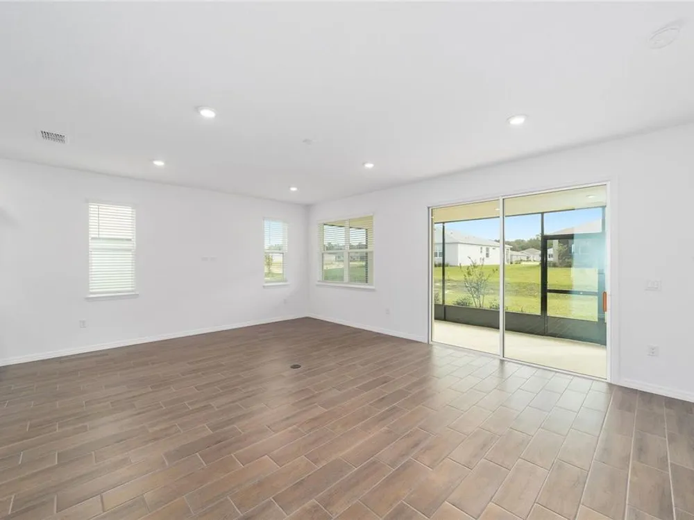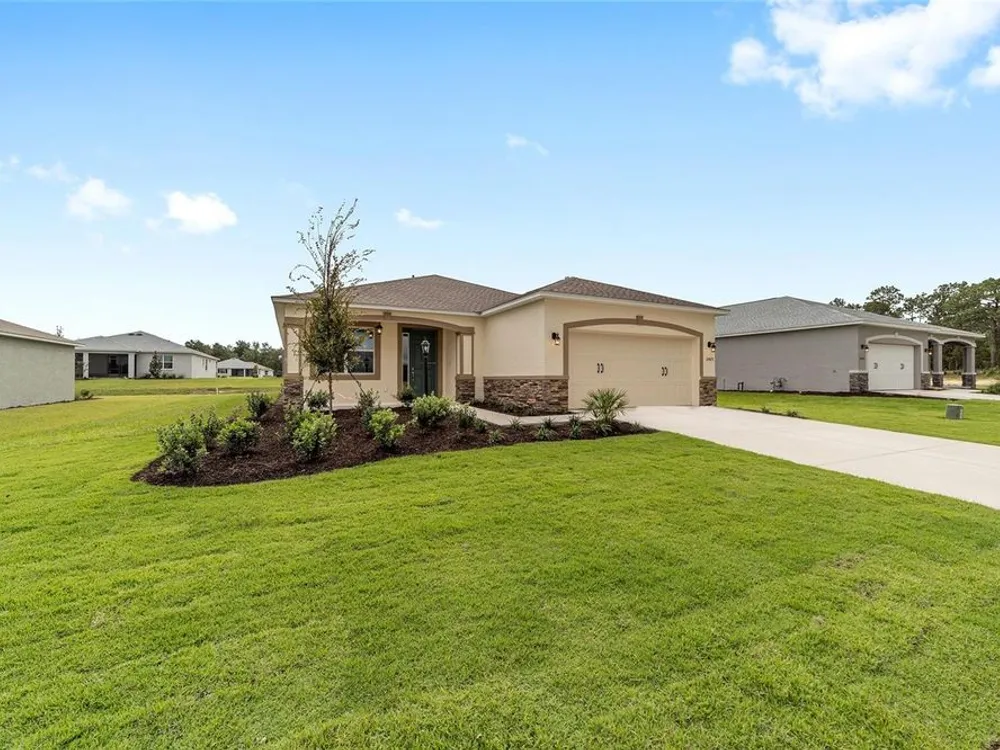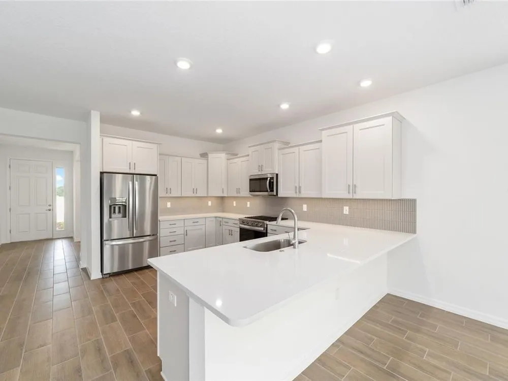 Beautiful New Construction Orchid Model in Longleaf Ridge! Discover modern comfort and style in this stunning 3-bedroom, 2-bath Orchid floor plan with over 1,800 sq. ft. of living space. Designed for easy living, this home features an open concept layout with tile flooring throughout and a screened lanai perfect for relaxing or entertaining. The gourmet kitchen offers staggered cabinets with crown molding, under-cabinet lighting, quartz countertops, a tile backsplash, and stainless-steel appliances — seamlessly opening to the dining and living areas. The spacious primary suite includes two rear-facing windows with blinds overlooking the backyard, a luxurious ensuite bath with double quartz vanities, a zero-entry tiled shower with a built-in bench, and a large walk-in closet. Bedrooms two and three both feature generous closet space, with the second bath offering a quartz vanity and a tub/shower combination. Enjoy maintenance-free living and world-class amenities in the gated-On Top of the World community, where active adult living meets modern elegance in Longleaf Ridge.