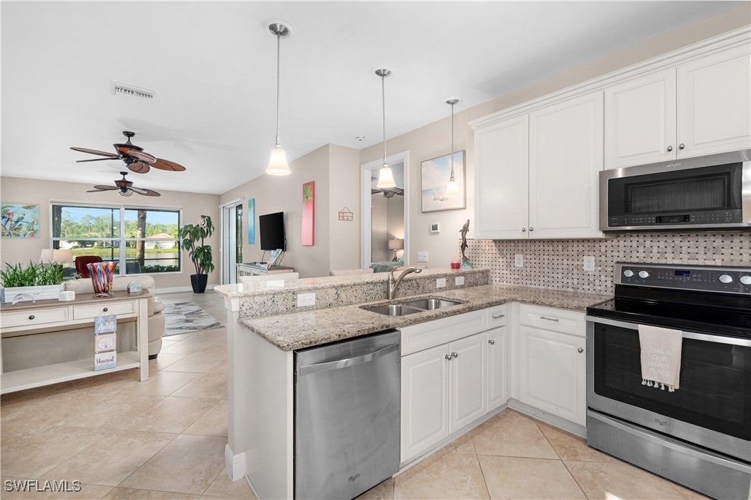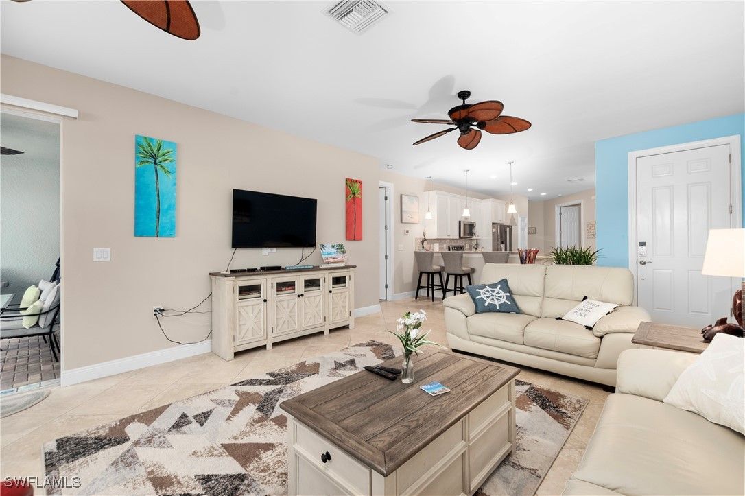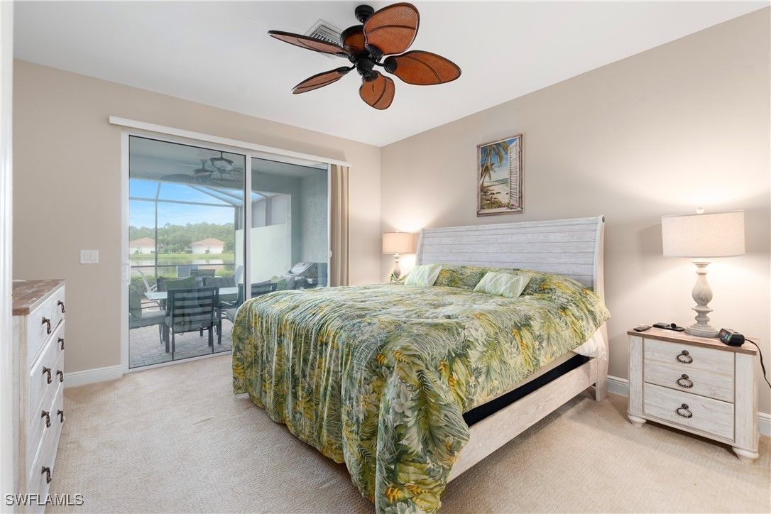 Come home to this beautiful 3 bedroom, 2 bath villa. Enjoy the warm southern exposure on the extended lanai with long lake views. For added piece of mind the owners added electric roll down shutters on lanai and easy to manage accordion shutters on the rest of the home. New AC installed in 2024. Photos shown both furnished and unfurnished, with fresh paint completed in October. Live like you’re on vacation every day in this 55+ community with a year-round social calendar, packed with events and classes, live music and more. As a resident of Pelican Preserve, you'll have access to a wealth of amenities designed to support an active and social lifestyle. If you’re looking for nature, you’ll find it in the walking trails, fishing pier, beach and a dog park. A vibrant town center with a movie theater, woodshop, art studio, card rooms and sewing rooms offers the perfect place to meet new friends over shared interests. Or enjoy the 27-hole championship golf course, 8 tennis courts, 12 pickleball courts, fitness center, spa services, and a variety of dining options situated around a beautiful resort style pool. Experience the best of Fort Myers living in this exceptional home with resort-style amenities.