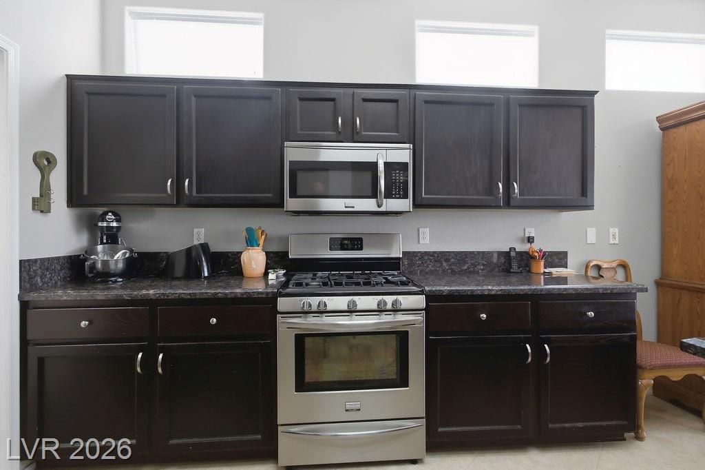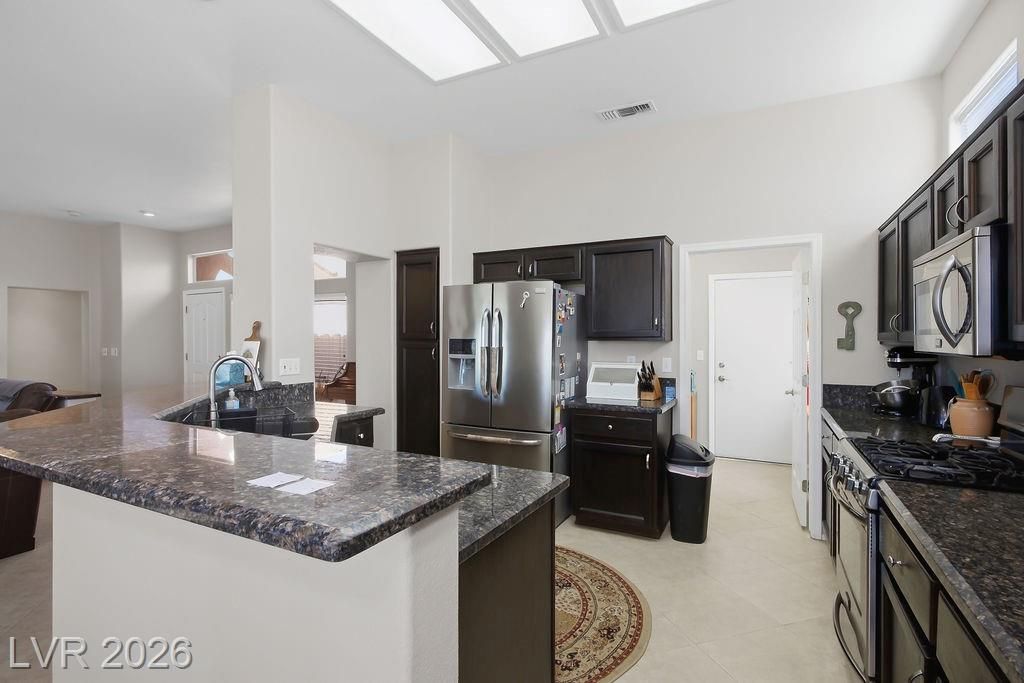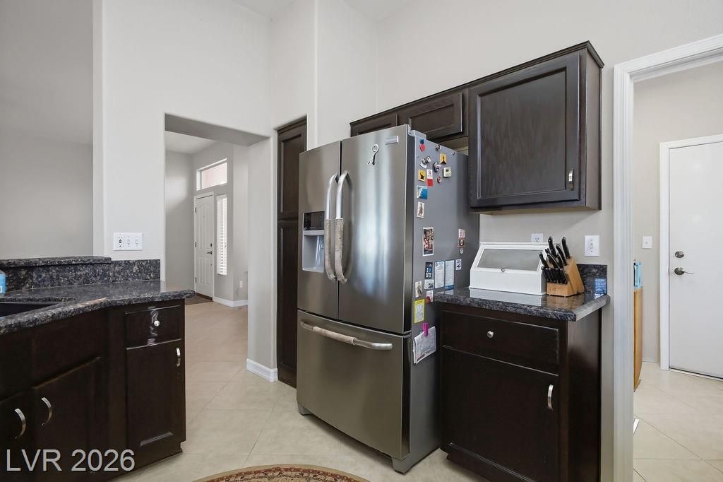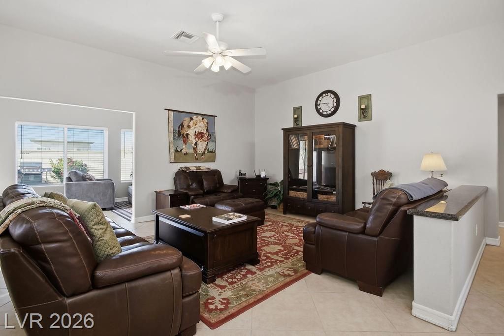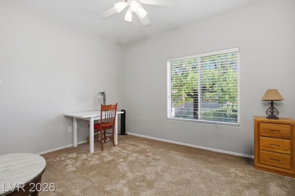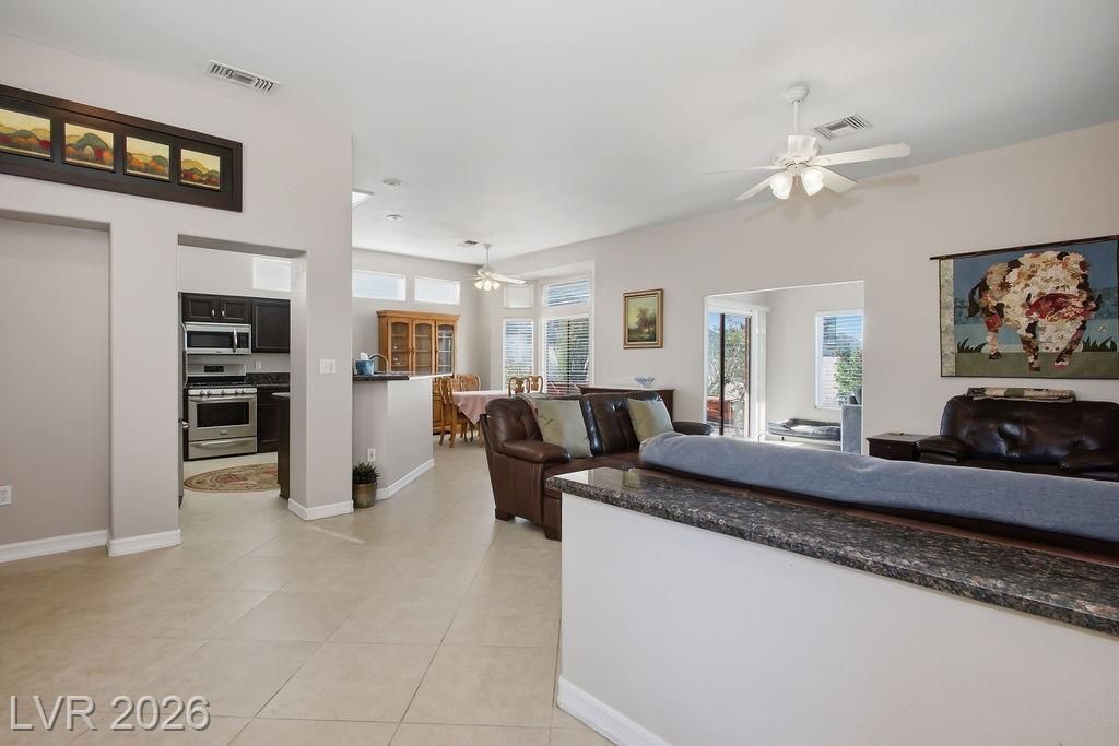 Welcome to a charming two-bedroom, two-bathroom retreat nestled in Sun City Summerlin. This beautifully updated home offers 1,533 square feet of living space, plus an additional 140-square-foot family room/den that adds versatility to an already impressive open-concept floor plan. The kitchen features stainless steel appliances, elegantly refinished ebony cabinetry, & gorgeous granite countertops. Both bathrooms echo this refined aesthetic with matching ebony cabinets & complementary granite counters, creating a cohesive and polished feel throughout. The primary bedroom is all yours complete with a walk in closet, a dual-sink vanity, and a walk in shower. Since location is everything, you will find everyday conveniences just moments away, including grocery shopping & pharmacy options within minutes. The community centers Desert Vista & Mountain Shadows provide wonderful community options. Crave upscale dining & shopping? Downtown Summerlin & Red Rock Casino are just a short drive away.