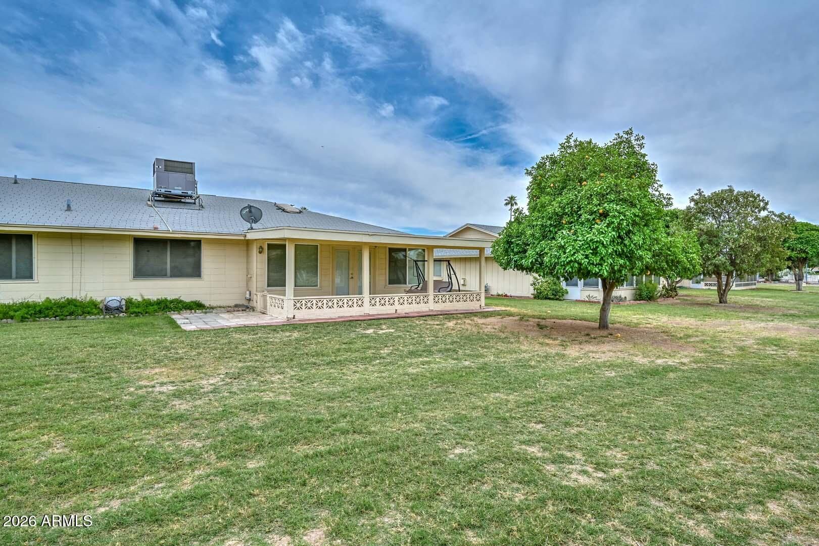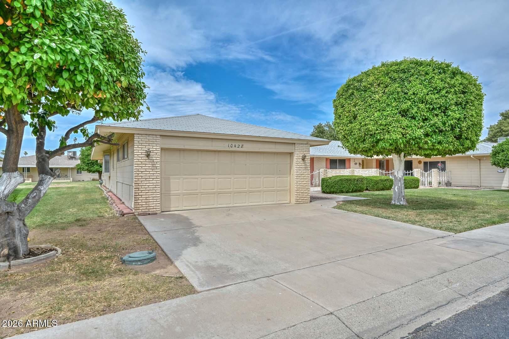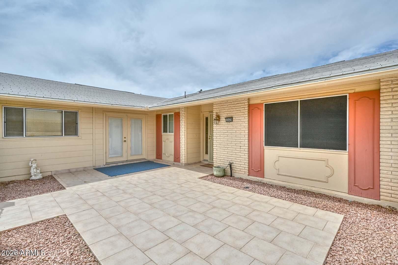 Sun City living at its best, with all the amenities residents have come to love. This well-maintained home is ideally situated in a quiet area, yet conveniently close to golf courses, recreation centers, shopping, and dining. A charming front courtyard creates a warm welcome, while the covered back patio opens to a peaceful greenbelt--perfect for relaxing or entertaining and enjoying Arizona's beautiful weather year-round. Inside, the home offers generous living spaces with a comfortable, functional floor plan designed for everyday living. Large windows bring in natural light, enhancing the inviting atmosphere throughout. The layout provides flexibility for both casual living and hosting guests, making it easy to feel right at home.