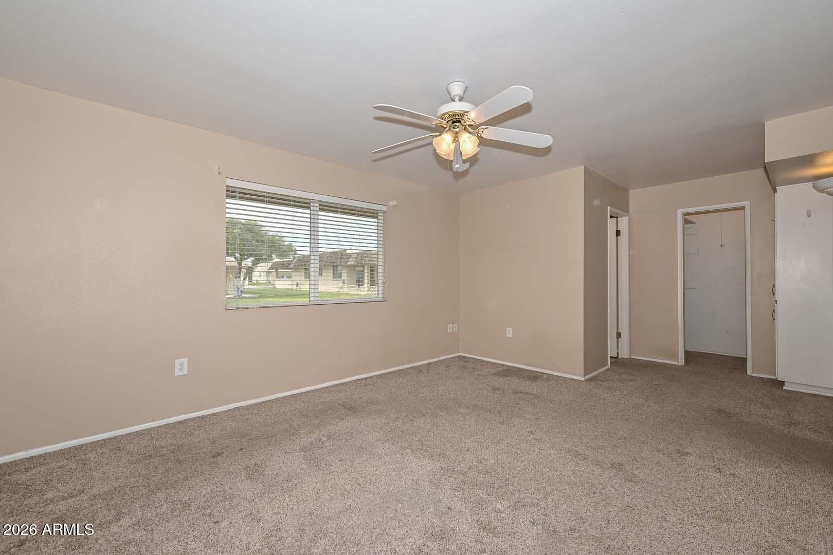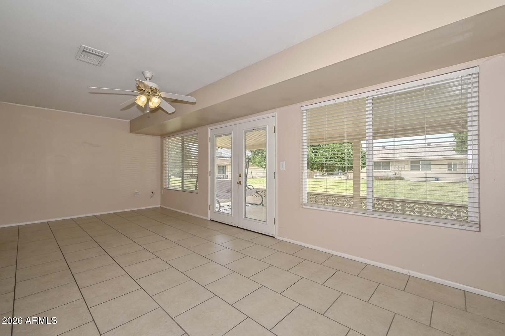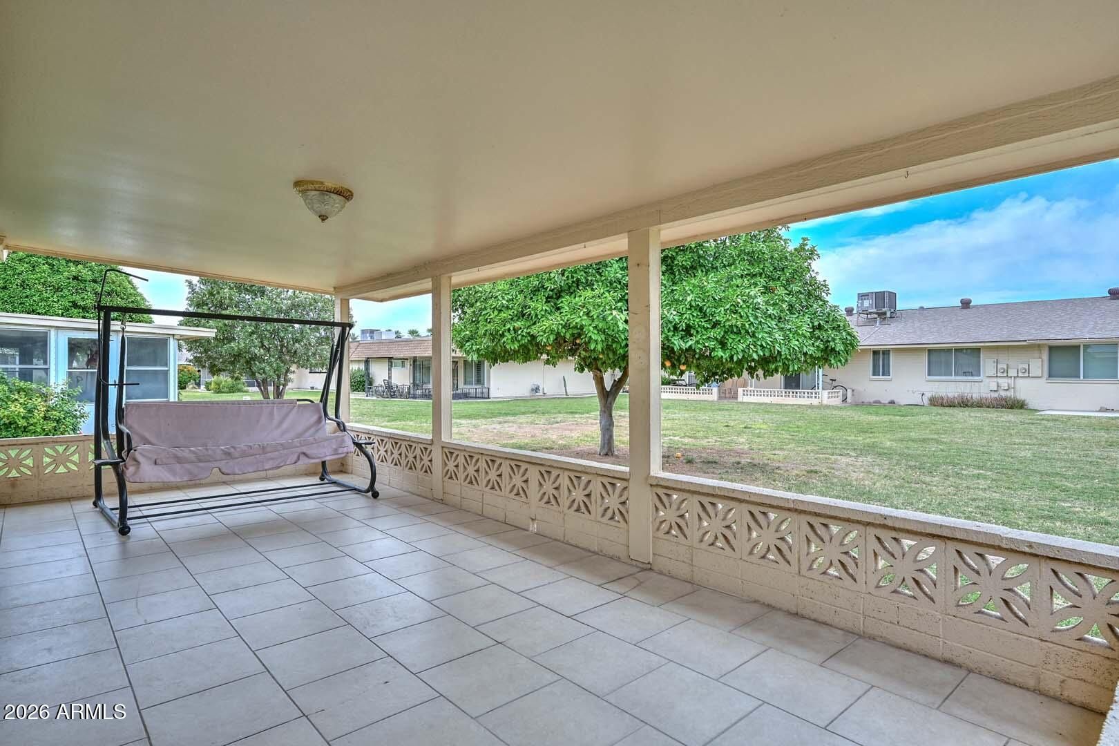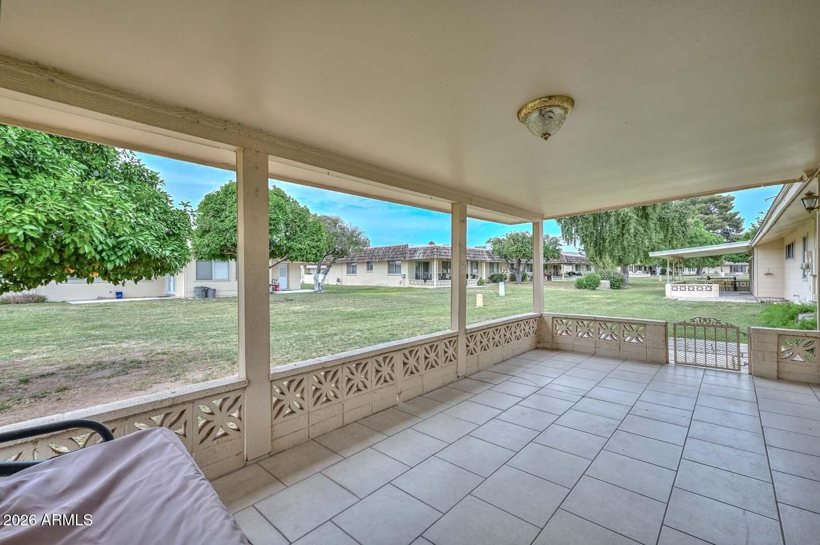 Sun City living at its best, with all the amenities residents have come to love. This well-maintained home is ideally situated in a quiet area, yet conveniently close to golf courses, recreation centers, shopping, and dining. A charming front courtyard creates a warm welcome, while the covered back patio opens to a peaceful greenbelt--perfect for relaxing or entertaining and enjoying Arizona's beautiful weather year-round. Inside, the home offers generous living spaces with a comfortable, functional floor plan designed for everyday living. Large windows bring in natural light, enhancing the inviting atmosphere throughout. The layout provides flexibility for both casual living and hosting guests, making it easy to feel right at home.