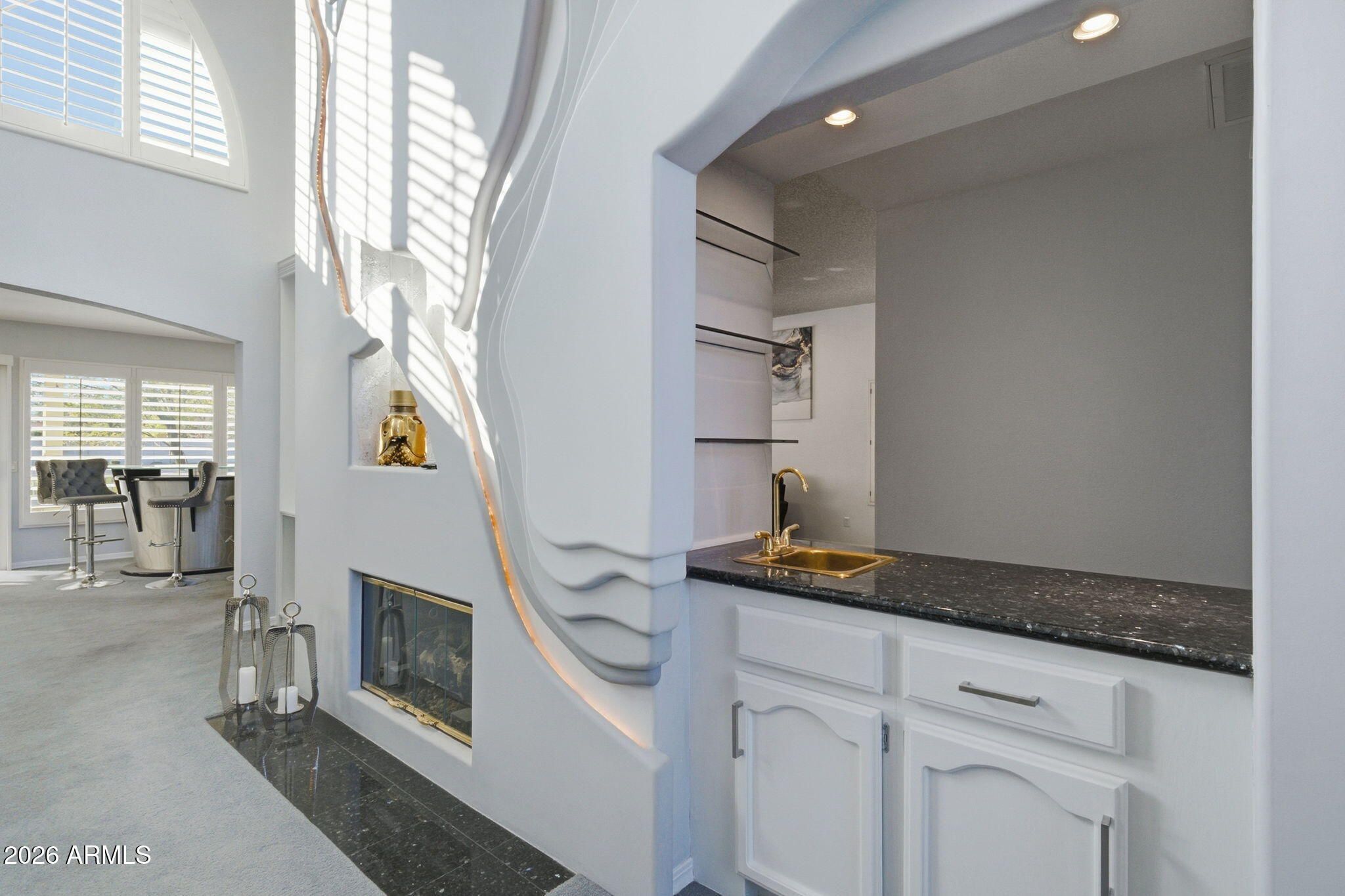 WOW!! This Expanded Eldorado is a real show house. A MUST SEE...Totally remodeled & added approx. 400sq. ft. to the very formal and totally unique living room. All Furniture & Furnishings come with the home. You will not be disappointed all top of the line, even the Player Piano & Stand-up Bar are included. Kitchen has new quartz counter tops & new appliances. Even has a lighted wine glass rack & wine refr. Large Utility room includes washer/dryer & storage cabinets & door leading to side yard w/doggie door. Master bedroom is on the main floor & has 2 walk-in closets. Master bath has a large custom shower you will fall in love with. Large curved Glass Block window & sit down vanity area. Patio is next to the lake & has a fire pit & BBQ, Ramada. NEWER HVAC UNITS, FLAT ROOF AND WATER HEATE Here is a list of Everything that has been added brand new within the last 3 years: 3 NEW AC UNITS, NEW FLAT ROOF, NEW WATRE SYSTEM, NEW REVERSE OSMOSIS, 2 NEW BATHROOMS, NEW KITCHEN, NEW LAUNDRY ROOM, ALL NEW LED LIGHTING, ALL NEW APPLIANCES, SOME NEW WINDOWS, NEW WINE FRIDGE, NEW CHANDELIER, ALL NEW CEILING FANS