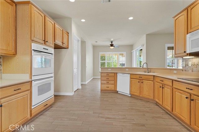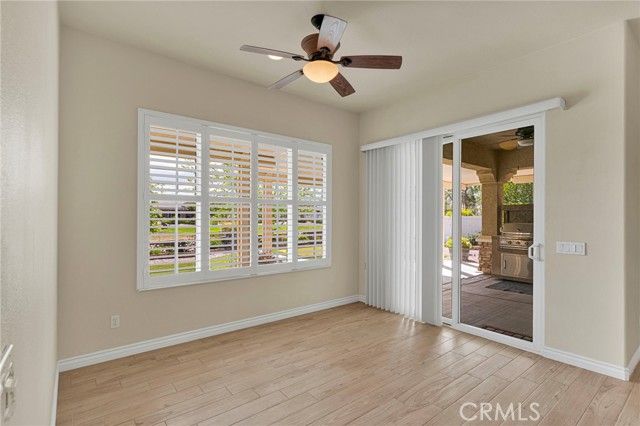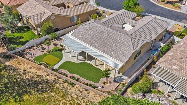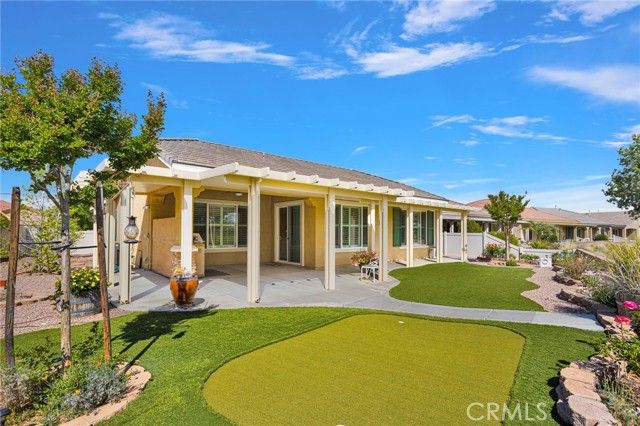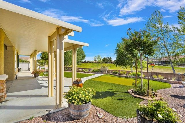 Homes like this don’t come up often—especially a Magnolia model with a private courtyard and golf course views in Sun City Apple Valley. This highly desirable Magnolia model offers 2 bedrooms, 2 bathrooms, plus a den/office, and 1,870 sqft of thoughtfully designed living space—ideally located near the Aspen Clubhouse and guard gate for everyday convenience. A true standout, the private inner courtyard creates a rare indoor-outdoor living experience—perfect for quiet mornings, relaxing evenings, or entertaining guests in a secluded setting. Inside, the home features wood-look tile flooring throughout most of the living areas, a spacious primary suite, and a generously sized guest bedroom, along with a versatile den/office space to fit your lifestyle, and plantation shutters. The kitchen is built for both function and hosting, complete with an electric cooktop, double oven, and a walk-in pantry. Comfort is elevated with remote-controlled ceiling fans in every room and a dedicated mini-split A/C system in the primary bedroom for personalized climate control. The backyard is designed to impress, featuring golf course views, an extended Alumawood patio cover, a fully equipped outdoor grilling station with a mini fridge, and a turf putting green—perfect for relaxing or entertaining. A tandem 3-car garage is another standout feature that adds flexibility for storage, vehicles, or hobbies. Enjoy resort-style living with access to indoor and outdoor pools, a fitness center, billiards room, and a full calendar of social events and clubs, all within the vibrant 55+ community of Sun City Apple Valley. Rare floorplan. Prime location. Lifestyle-driven living.