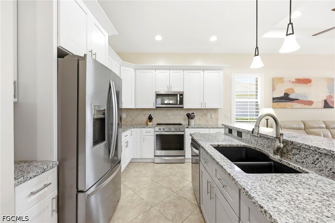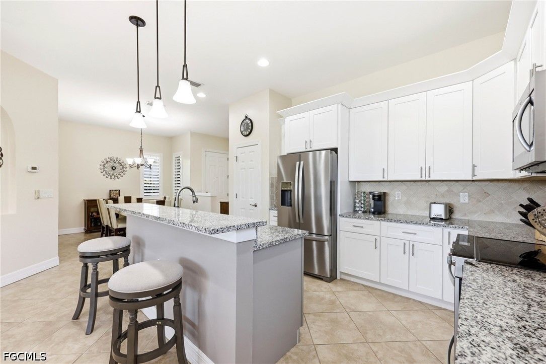 Welcome to your slice of Southwest Florida paradise in Materita! This beautifully maintained 3-bedroom, 2-bath lakefront residence offers the perfect blend of comfort, style, and serene views. Ideally positioned to capture peaceful waterfront scenery, the home features a bright and open floor plan designed for both everyday living and effortless entertaining. The spacious kitchen flows seamlessly into the main living and dining areas, creating an inviting atmosphere filled with natural light. A split-bedroom layout provides added privacy, with a generously sized primary suite overlooking the lake—perfect for unwinding at the end of the day. Step outside to your private outdoor living space, where you can enjoy morning coffee or evening sunsets with tranquil water views as your backdrop. Whether you're looking for a full-time residence, seasonal retreat, or investment opportunity, this home offers the relaxed Florida lifestyle you've been searching for. Conveniently located near shopping, dining, golf, and just a short drive to Southwest Florida’s beautiful beaches, this is lakefront living at its best.