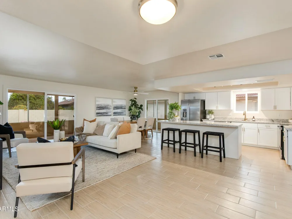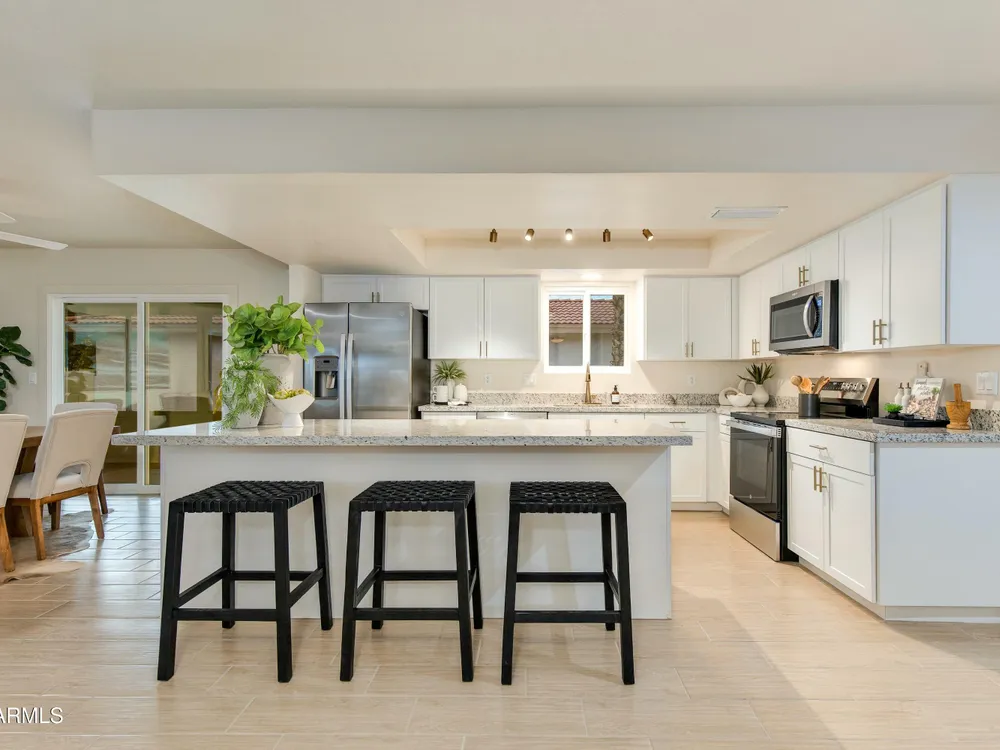 Welcome to this beautifully remodeled home in the highly sought-after Sun Lakes Active Adult Community! This move-in ready gem boasts a brand-new open floor plan, creating a seamless flow between the living, dining, and kitchen areas—perfect for entertaining. Upgrades include new flooring throughout, energy-efficient windows and doors, and a luxurious bathroom redesign featuring elegant tilework and granite countertops. The modern kitchen is a chef's dream with sleek finishes, oversized island and ample space for cooking and gathering. Enjoy the resort-style amenities Sun Lakes has to offer, including golf courses, pools, fitness centers, and a vibrant social scene. Experience luxury and comfort in this meticulously upgraded home