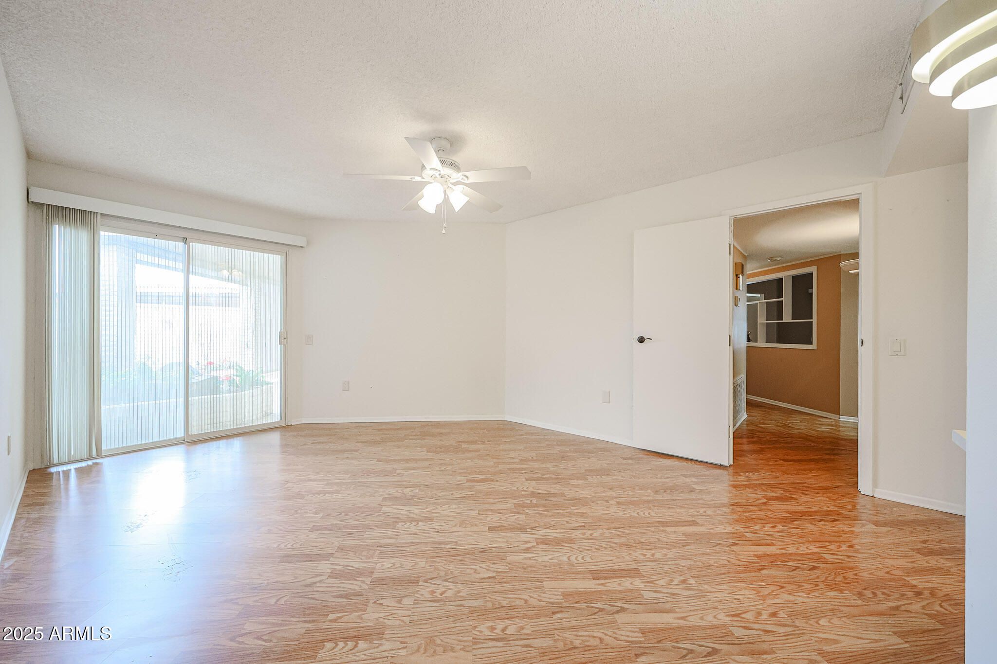 This updated home offers a clean, functional layout with modern improvements throughout. The main living area features wood-style flooring, neutral paint tones, and large sliding glass doors that bring in natural light and lead to the covered patio. The kitchen includes stainless steel appliances, ample cabinet storage, solid-surface countertops, and a practical, efficient workspace. The bathroom is upgraded with a granite countertop vanity, updated lighting, and a tub/shower combination with sliding glass doors. Additional features include ceiling fans, updated fixtures, and a layout designed for comfortable day-to-day living. The property has been well cared for and is presented in move-in-ready condition. A solid opportunity to own a home with thoughtful updates