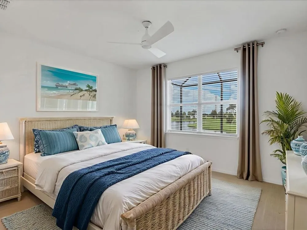 The sellers loved the lifestyle in Del Webb Bay View so much that they upgraded to a larger home! The CONTOUR floor plan, featuring two bedrooms and a den/office, was ideal as a seasonal retreat, and they thoroughly enjoyed it. With views of serene water and expansive blue skies from the Gathering Room and Primary Bedroom, plus an extended lanai and birdcage in a neutral interior palette, it’s the perfect spot to enjoy Florida's weather. Add in its convenient location close to the Driftwood Club and all activities—pure perfection. Did you know that buying a slightly lived-in resale home instead of a new build can significantly reduce closing costs? This home includes all appliances, including a washer and dryer, so you can move in right away! Del Webb Bay View is just 1.5 miles from I-75, offering excellent access to three airports as well as St. Pete, Tampa, and Sarasota. With its vibrant, active lifestyle, countless clubs and activities, golf cart-friendly community, and on-site restaurant, Bay View has it all. Plus, the CDD fee is already included in the taxes listed.