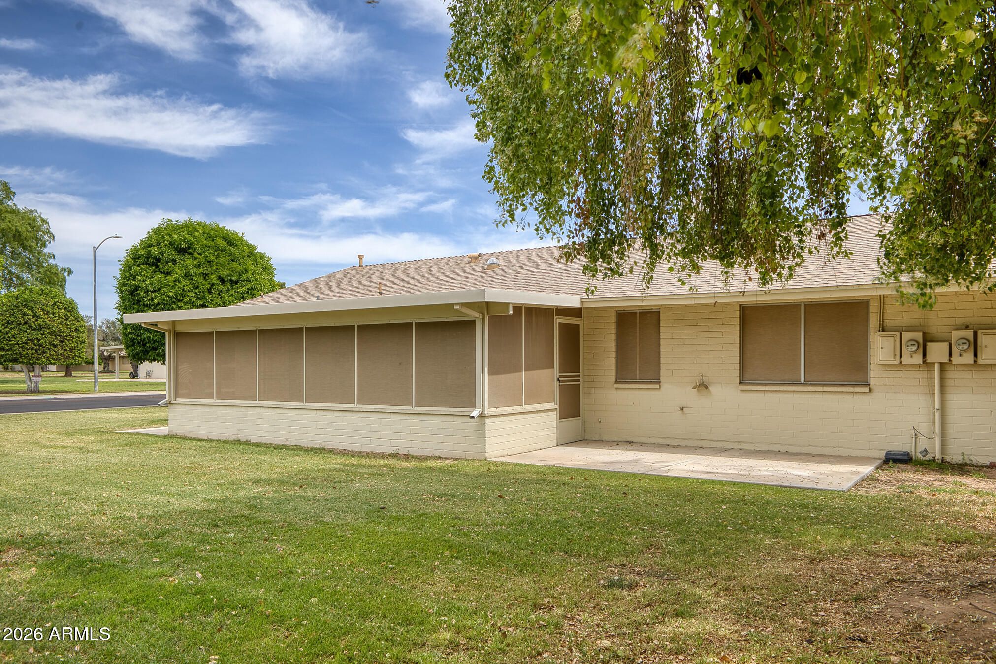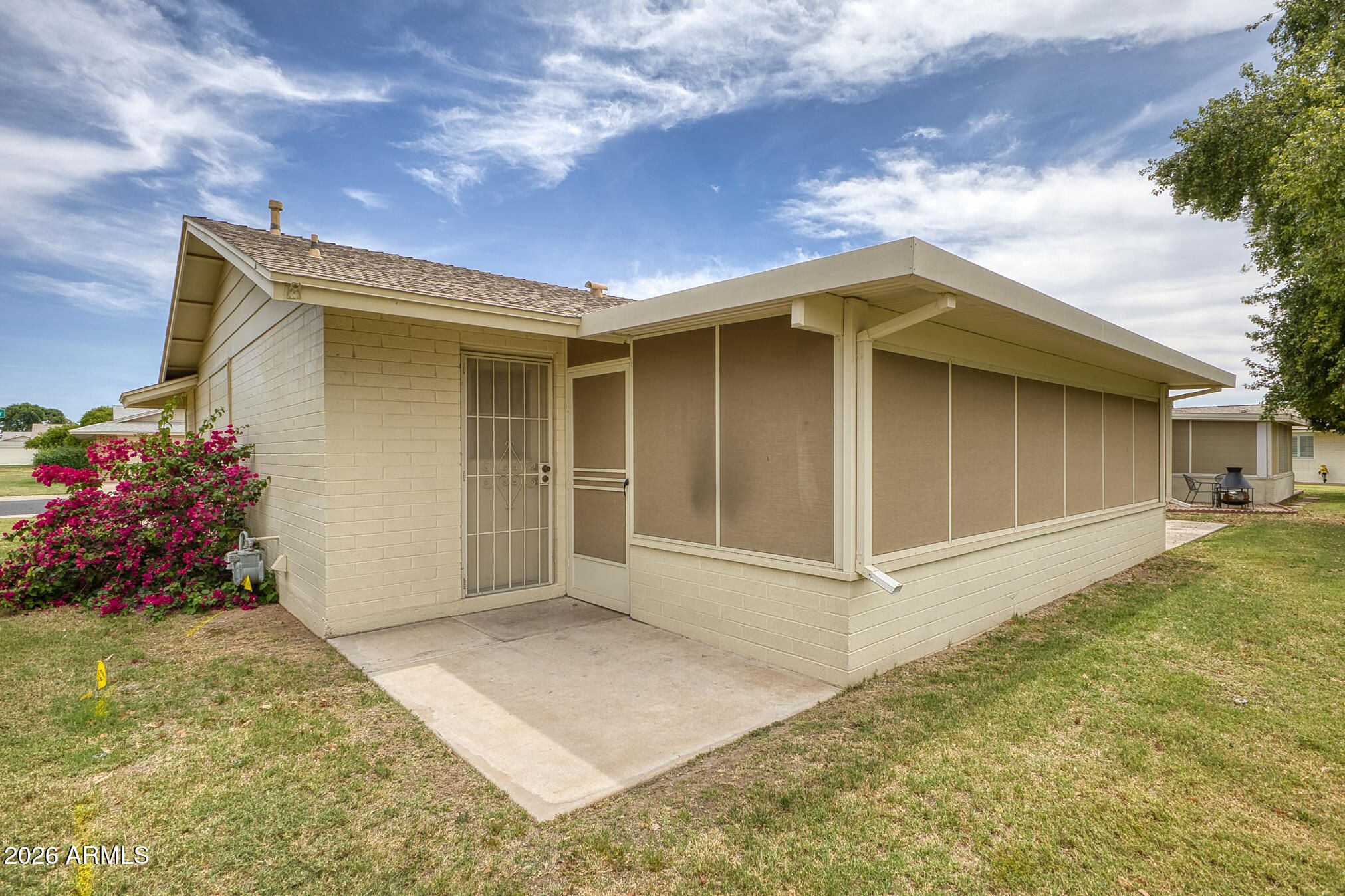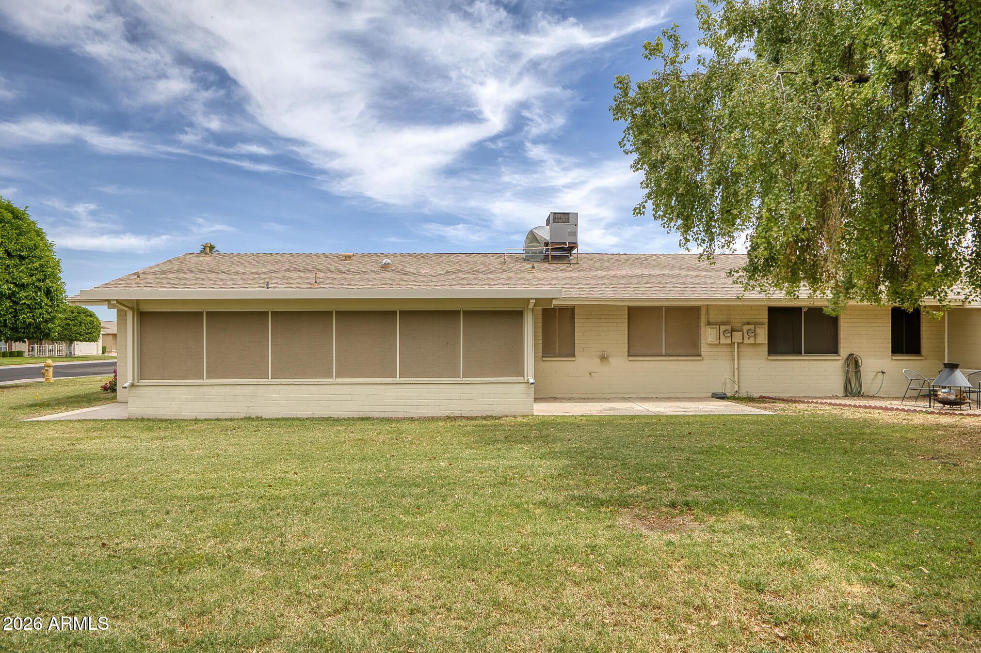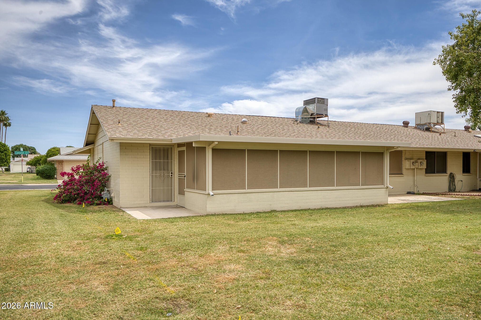 Welcome to this clean and move-in ready home in the heart of Sun City, Phase 2! Featuring 2 bedrooms and 2 baths, the home offers a spacious kitchen with abundant cabinets, ample counter space, and included appliances-refrigerator, washer, and dryer. The one car garage provides built- in cabinets for extra storage, while the backyard is perfect for outdoor living with a screened-in patio, extended covered patio, lush green lawn, plenty of room for entertaining. Situated on a desirable corner lot, the property is close to Sun City's many active-adult amenities with easy access to Del Webb Blvd, Boswell Hospital, Loop 101, and the shopping and dining along Bell Road and P83. An affordable opportunity to enjoy all that Del Webb's Sun City has to offer!