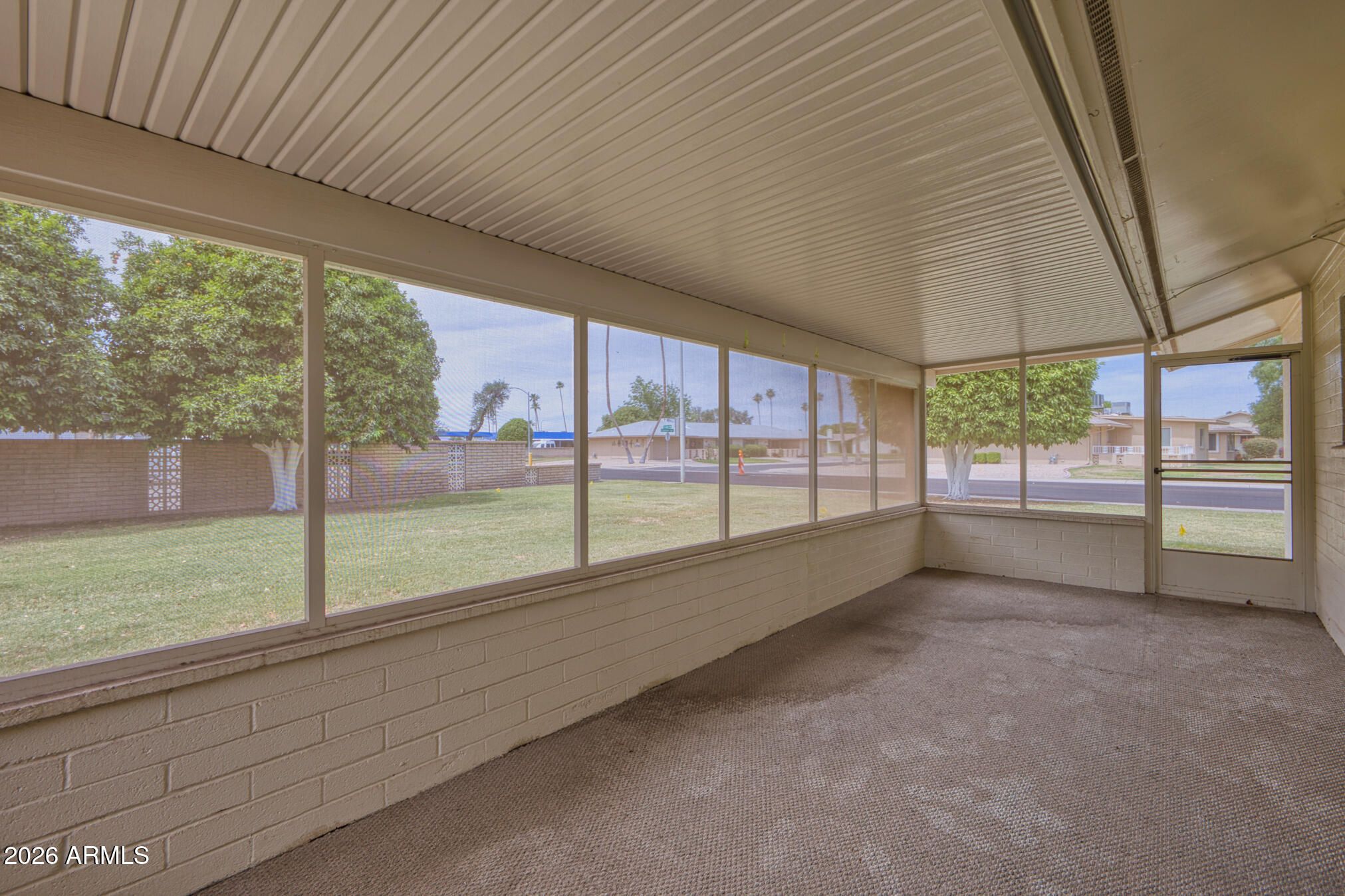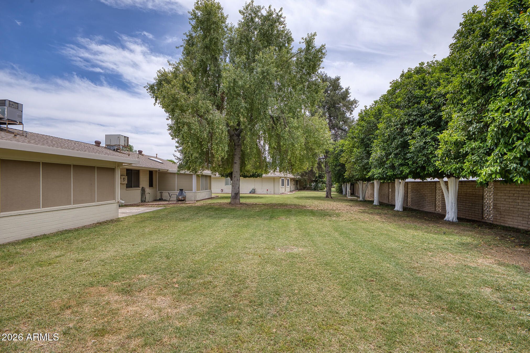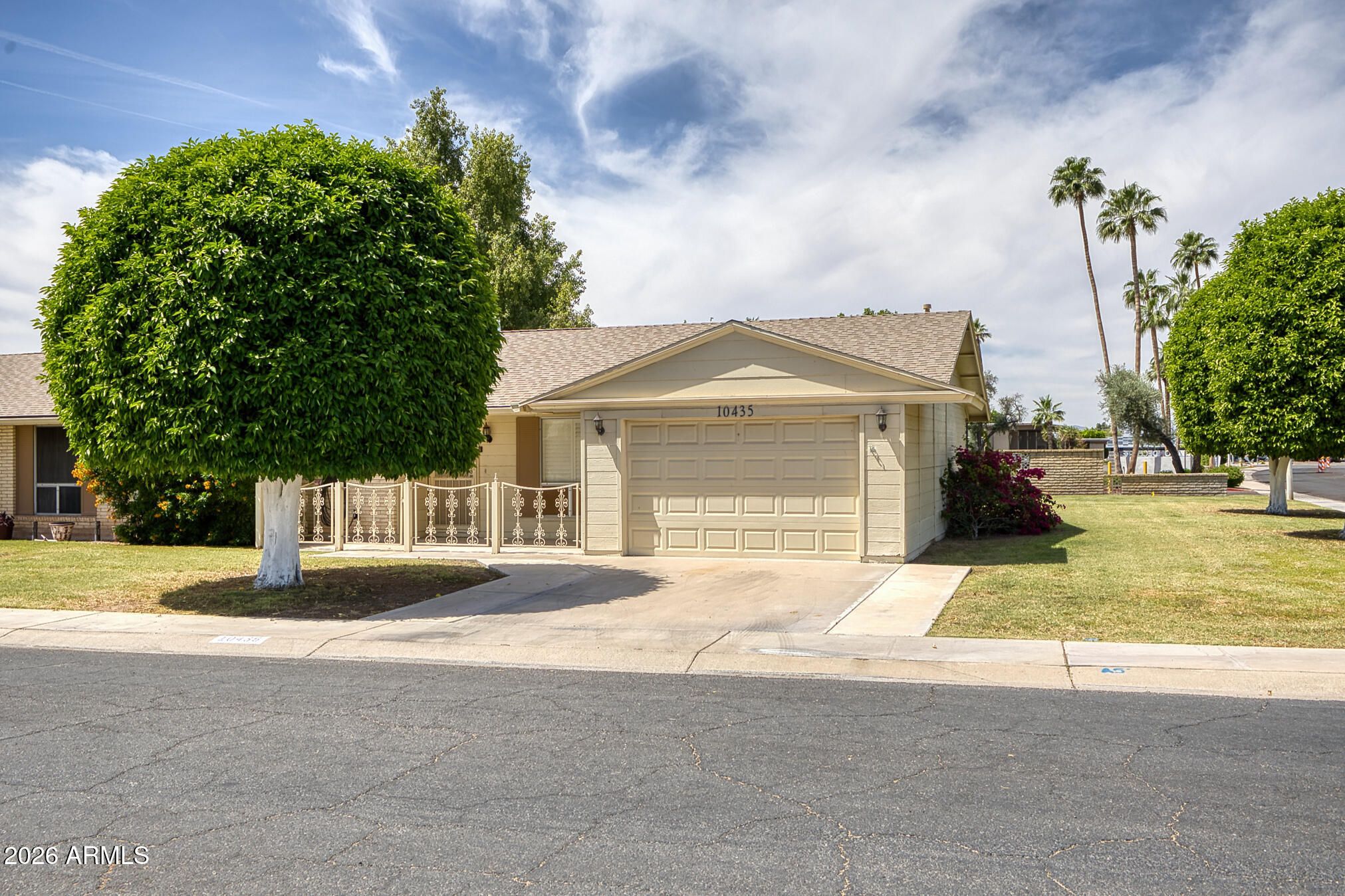 Welcome to this clean and move-in ready home in the heart of Sun City, Phase 2! Featuring 2 bedrooms and 2 baths, the home offers a spacious kitchen with abundant cabinets, ample counter space, and included appliances-refrigerator, washer, and dryer. The one car garage provides built- in cabinets for extra storage, while the backyard is perfect for outdoor living with a screened-in patio, extended covered patio, lush green lawn, plenty of room for entertaining. Situated on a desirable corner lot, the property is close to Sun City's many active-adult amenities with easy access to Del Webb Blvd, Boswell Hospital, Loop 101, and the shopping and dining along Bell Road and P83. An affordable opportunity to enjoy all that Del Webb's Sun City has to offer!