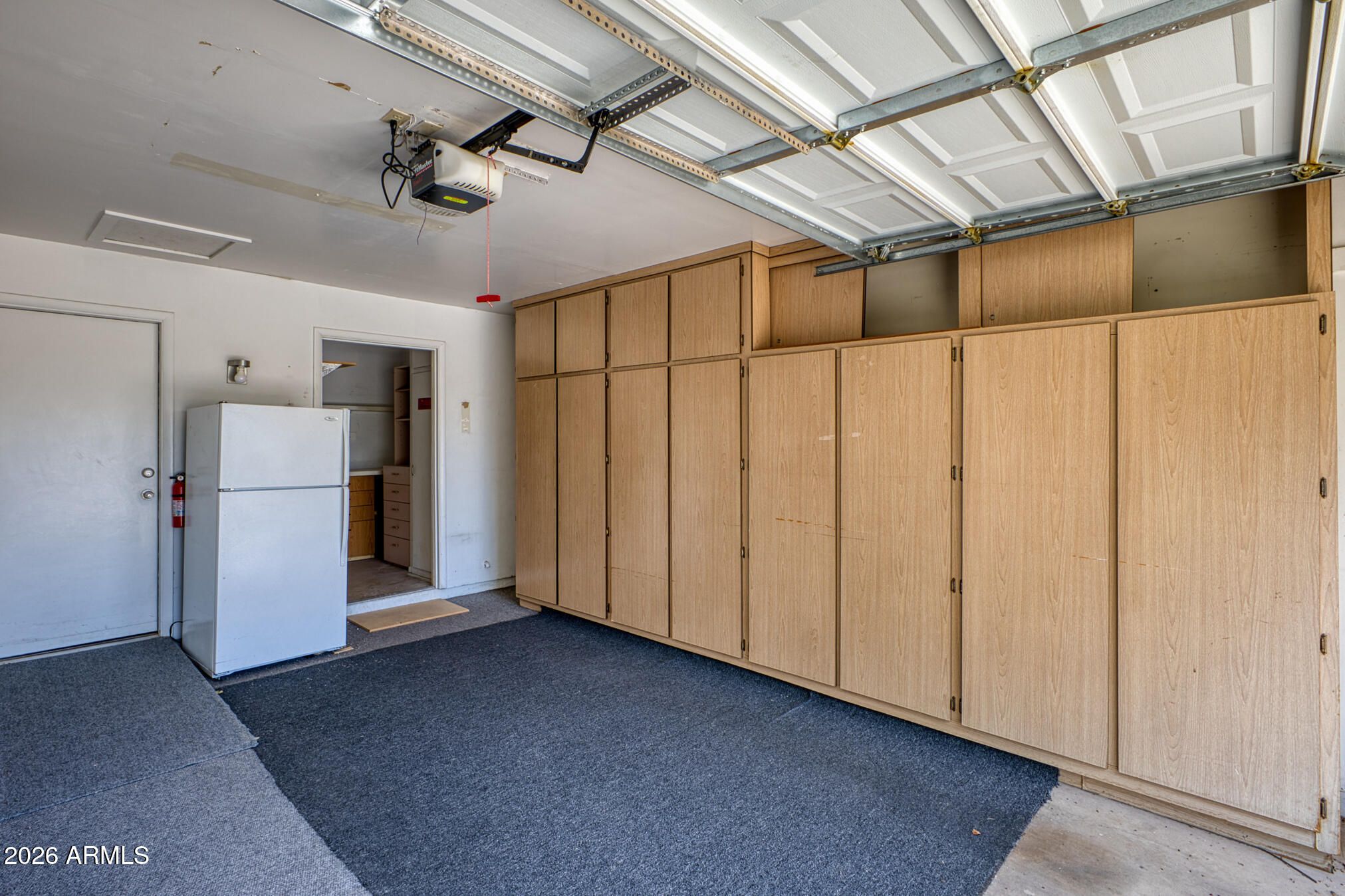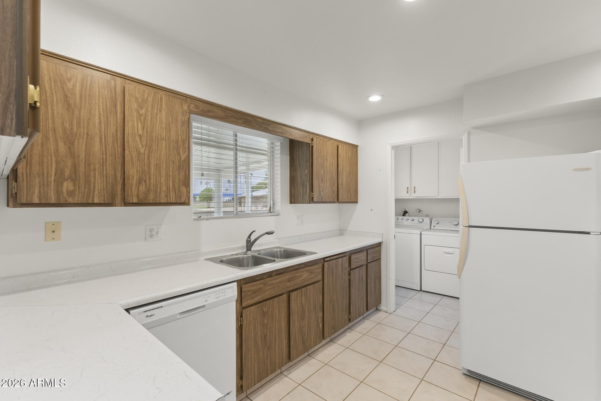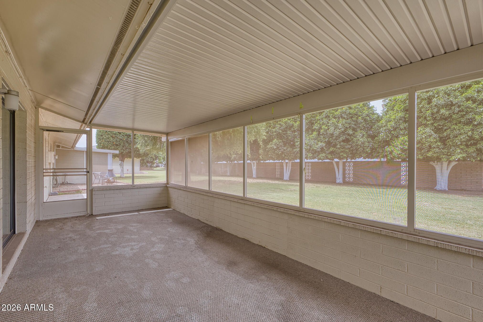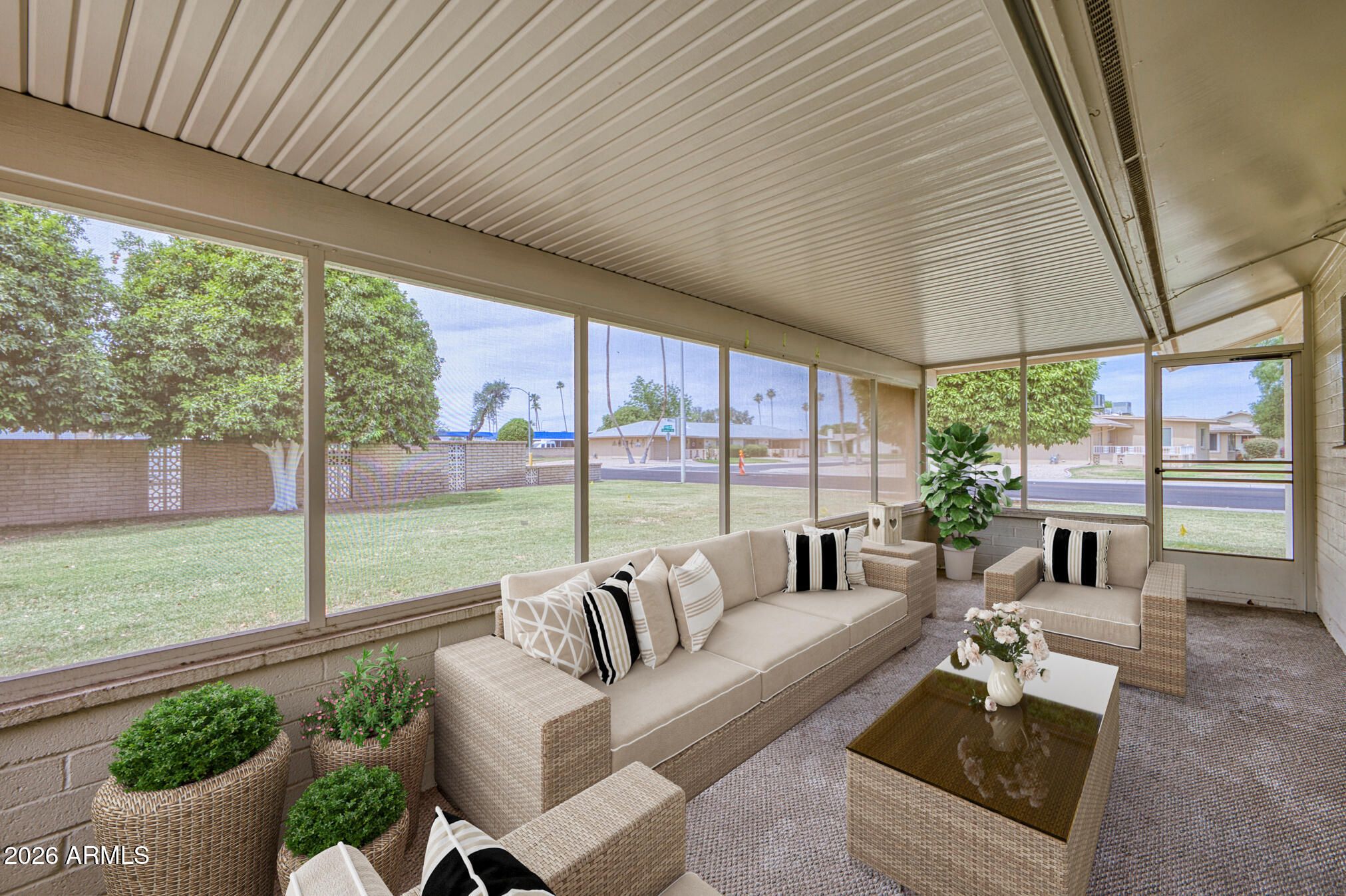 Welcome to this clean and move-in ready home in the heart of Sun City, Phase 2! Featuring 2 bedrooms and 2 baths, the home offers a spacious kitchen with abundant cabinets, ample counter space, and included appliances-refrigerator, washer, and dryer. The one car garage provides built- in cabinets for extra storage, while the backyard is perfect for outdoor living with a screened-in patio, extended covered patio, lush green lawn, plenty of room for entertaining. Situated on a desirable corner lot, the property is close to Sun City's many active-adult amenities with easy access to Del Webb Blvd, Boswell Hospital, Loop 101, and the shopping and dining along Bell Road and P83. An affordable opportunity to enjoy all that Del Webb's Sun City has to offer!