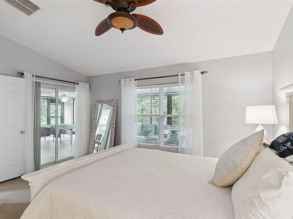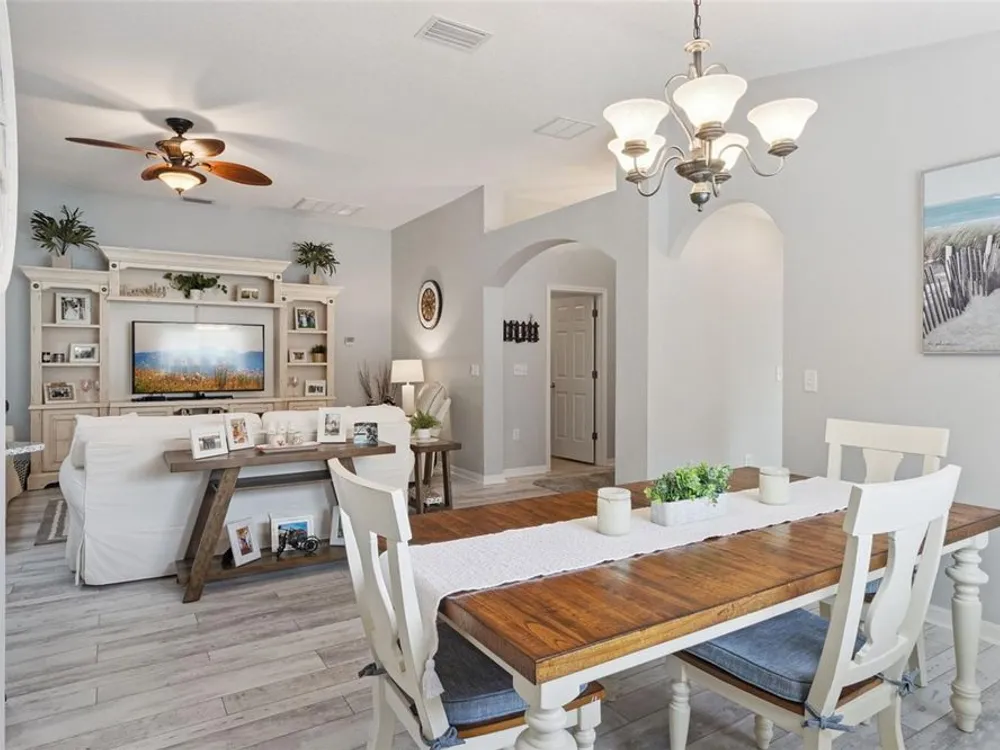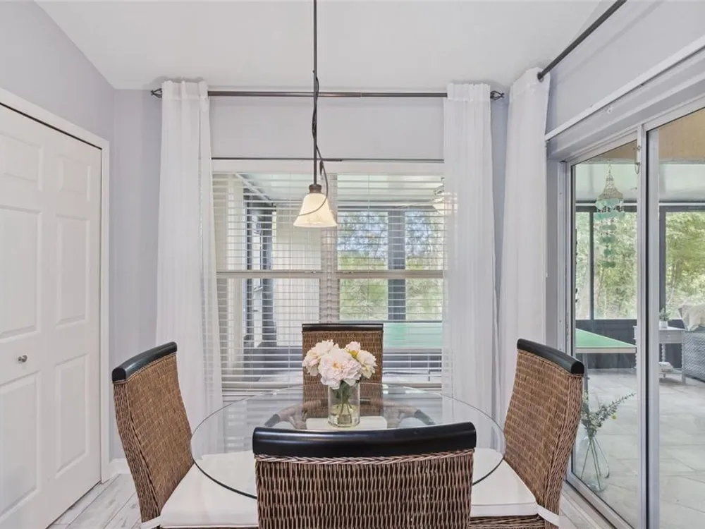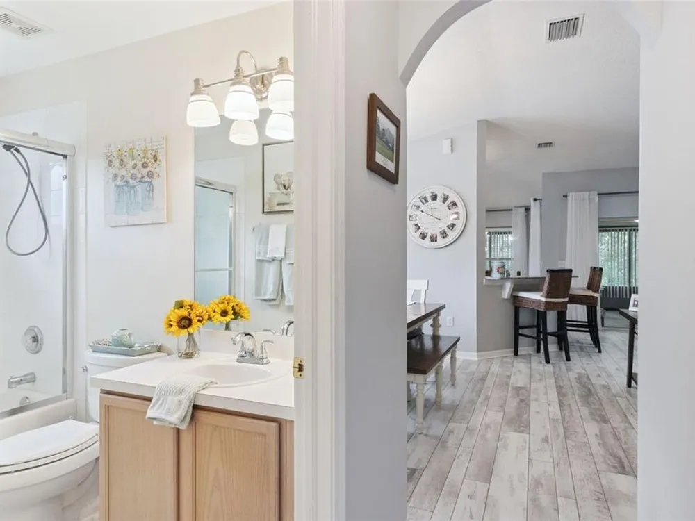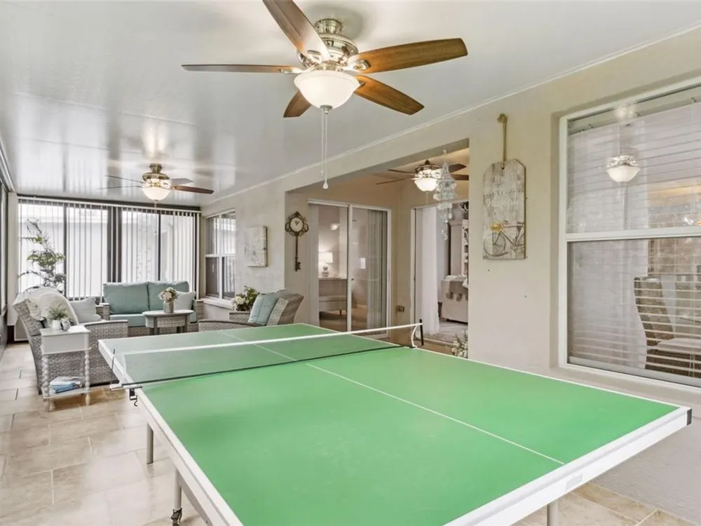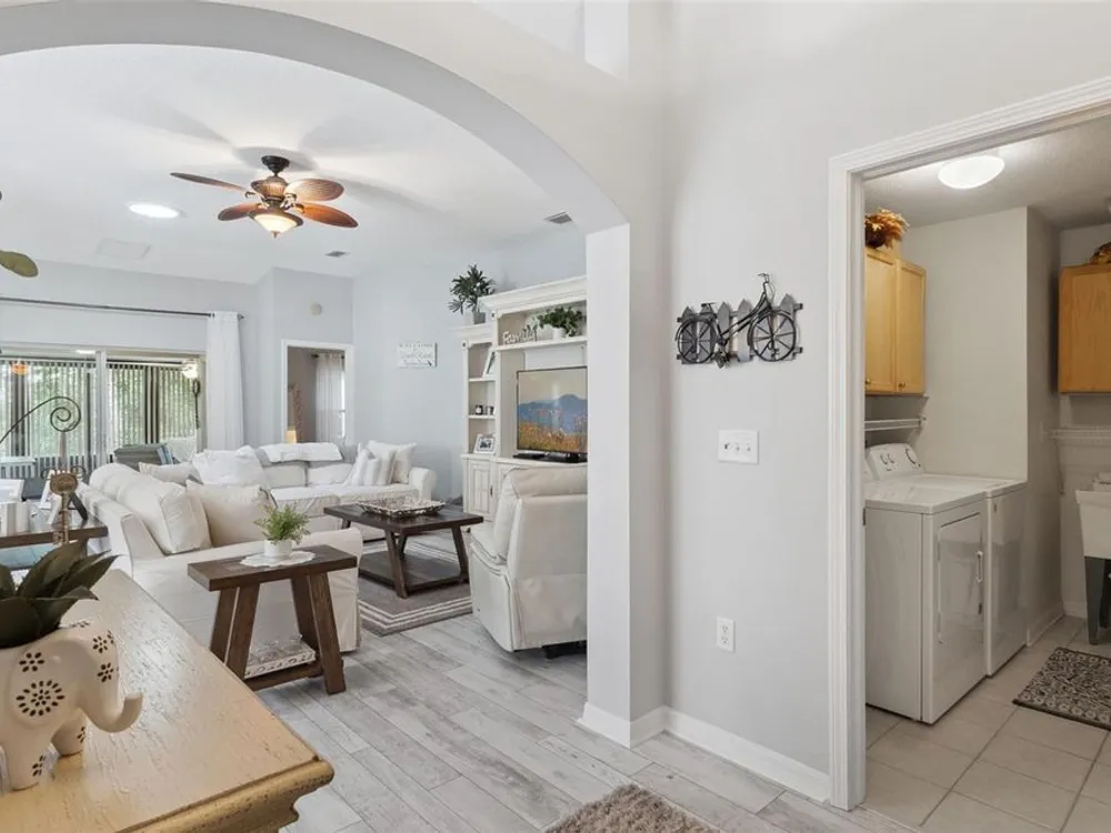 Welcome to the carefree Florida lifestyle in the exclusive 55+ enclave of Sandhill Dunes, a quiet neighborhood of just 80 maintenance-free villa homes within the sought-after Tampa Bay Golf and Country Club. Perfectly designed for active retirees, this beautifully upgraded 2-bedroom, 2-bathroom villa offers a serene setting overlooking the 17th green and a lush conservation area. From the moment you arrive, the swaying palms and professional landscaping with concrete curbing create a welcoming atmosphere. Step inside through a double glass storm door into a spacious foyer, leading into the arched entry and open-concept great room and dining area—ideal for relaxed entertaining. Enjoy year-round comfort in the enclosed, air-conditioned Florida room, which adds an additional 350 square feet of living space and features ceramic tile flooring and sliding windows that invite the outdoors in. The private backyard offers peaceful golf course views, while the master suite at the rear of the home provides a tranquil retreat with dual closets, dual sinks, a dedicated vanity area, and sliding doors that open to the lanai. A charming guest bedroom with a bay window and a full guest bath are thoughtfully positioned at the front of the home, offering comfort and privacy for visitors. This gated, manned community provides a strong sense of security and connection, with countless opportunities for social engagement, classes, and group activities. The pet-friendly environment—complete with dog parks—makes it a welcoming place for your furry companions as well. Homeowners enjoy a low-maintenance lifestyle with the HOA taking care of many communal responsibilities, allowing more time to enjoy the wide range of resort-style amenities. Whether it's a round of golf on one of the two courses, relaxing by one of the pools, enjoying a meal at the full-service restaurant and bar, or joining in on planned excursions and onsite entertainment, this is a community that truly offers it all. Experience the best of active, resort-style living in sunny Florida—your next chapter begins here.