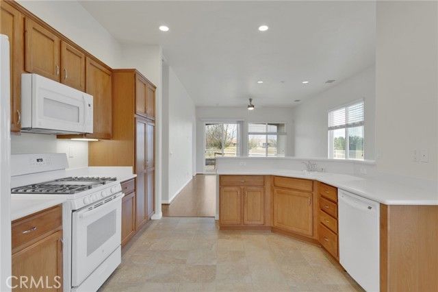 LIVE THE LIFESTYLE YOU’VE EARNED — golf course views, privacy, and resort amenities included! Welcome to this beautifully maintained Aspen model located in the High Desert’s premier 55+ active living community of Sun City Apple Valley. On the market for the first time, this home has been lovingly cared for by its original owners and sits on a prime corner-lot, providing added privacy with only one neighboring property. Step inside to an open, light-filled floor plan where the kitchen overlooks the main living areas and draws your eye straight to the serene backyard views. Fresh upgrades include all new interior paint, stylish new light fixtures, and brand-new carpet —making this home completely move-in ready. This 2-bedroom, 2-bath home also features inside laundry that houses plenty of cabinets for storage with a utility sink, a finished 2-car garage, and all the appliances are included for added convenience. Residents of Sun City have complete peace of mind with the community being entirely gated and enjoy an exceptional lifestyle with access to exclusive HOA amenities such as a gym, pools, spas, sports courts, clubhouses, and so much more! Ideally located on a greenbelt and walking distance to nearby shopping, markets, and cinemas - this home offers the perfect blend of comfort, convenience, and active living. Don’t miss this rare opportunity to own a beautiful golf-course-view home in one of Apple Valley’s finest communities.