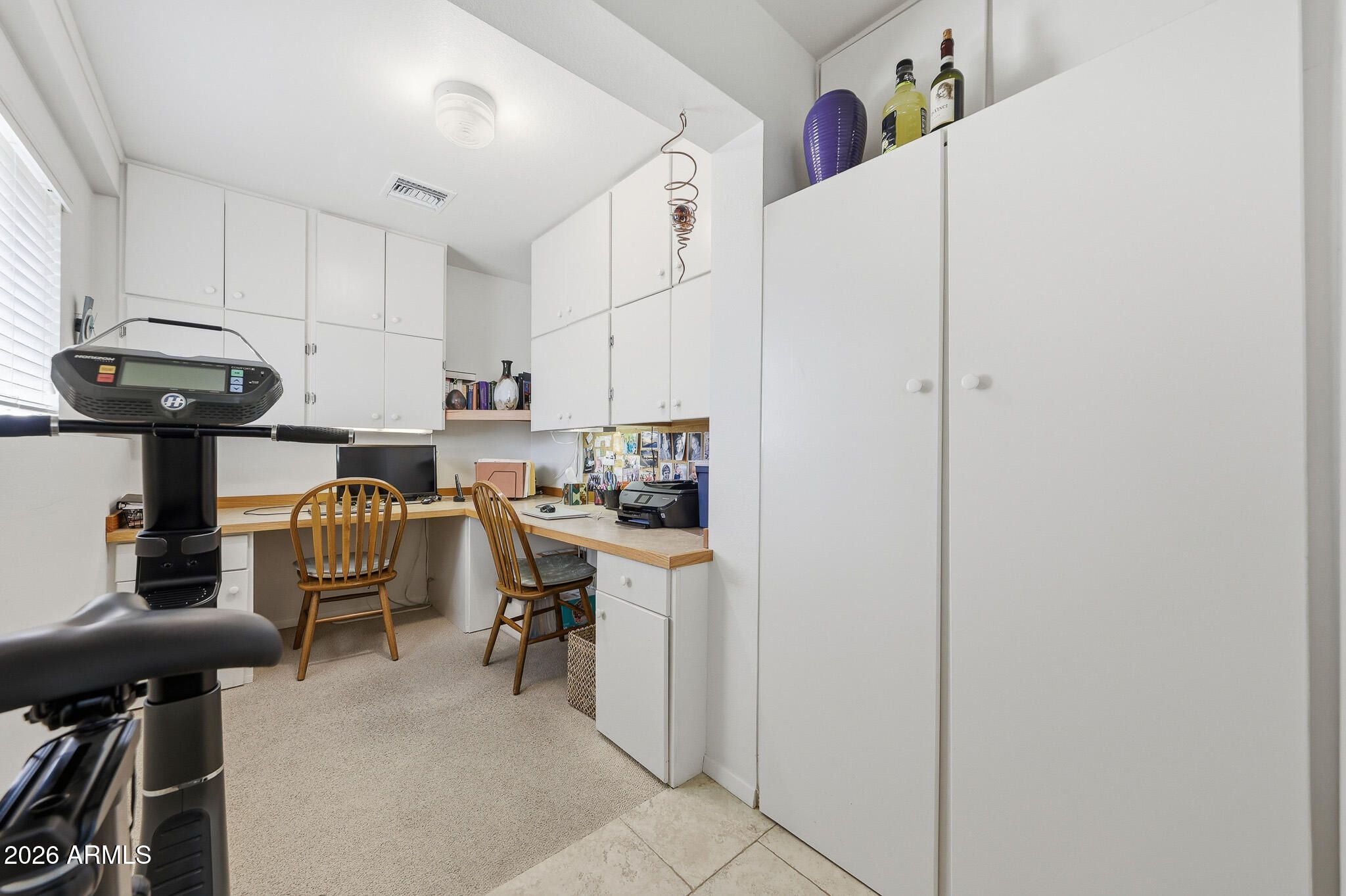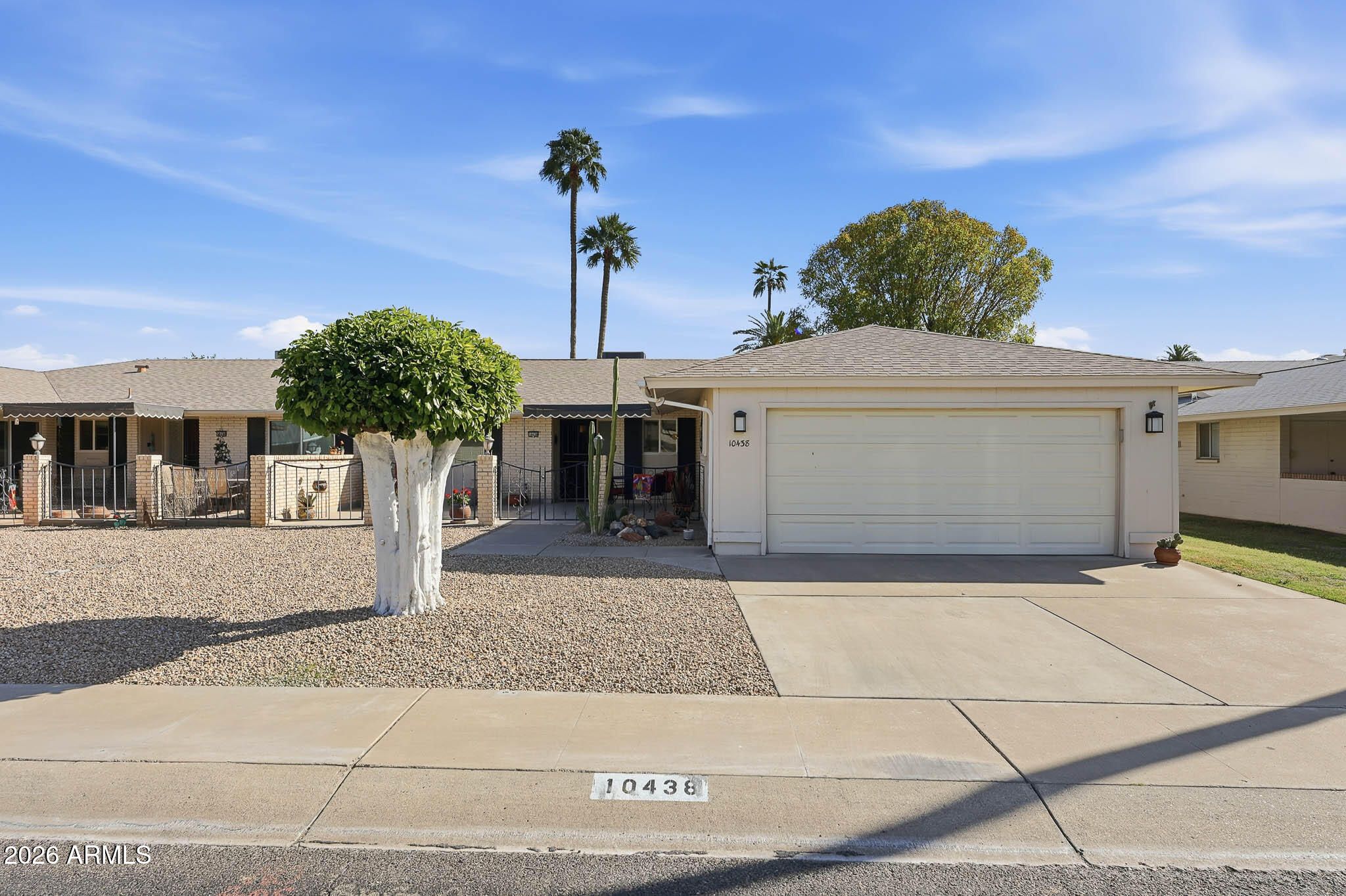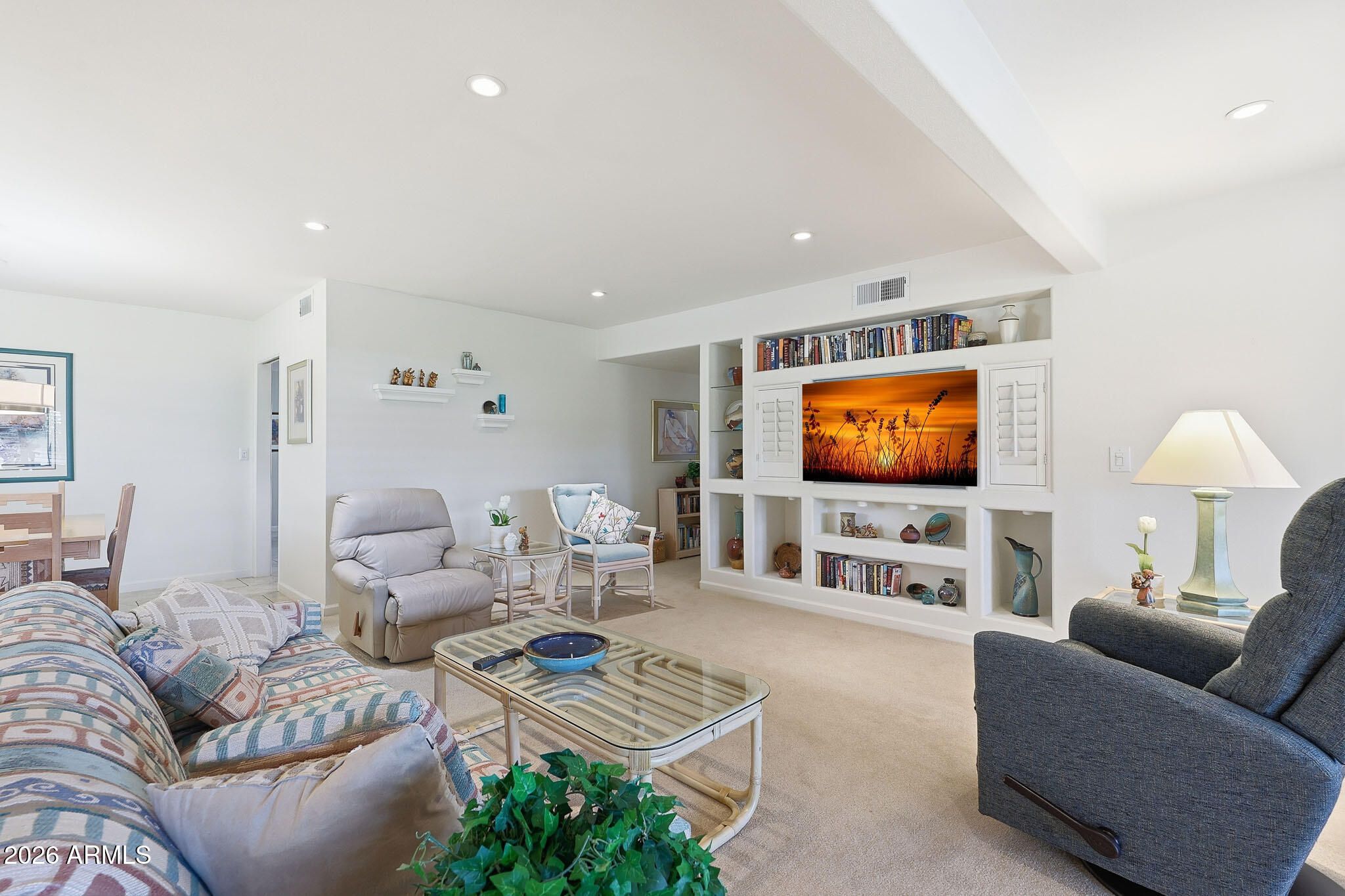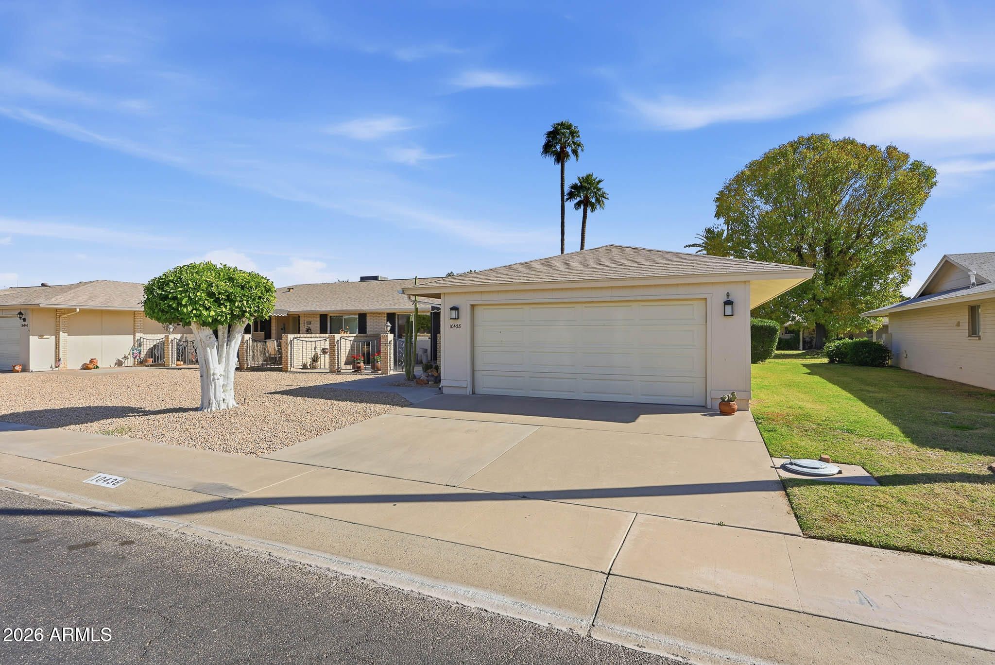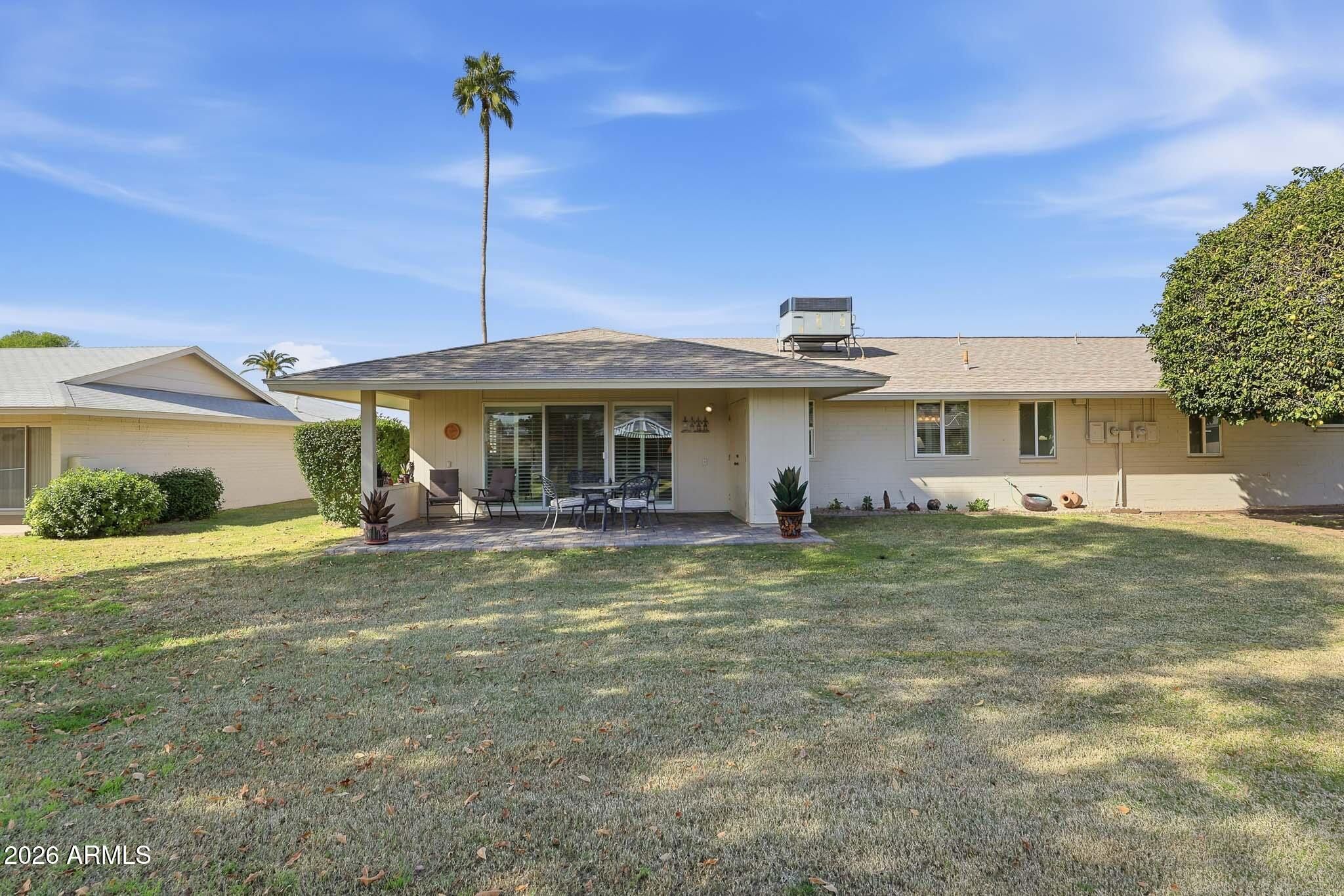 Don't Miss This A25 Model Gemini Twin Home In Sun City Arizona. This Expanded Gemini Twin Home In Sun City Is Truly One Of A Kind And Stands Out Among Other Sun City Homes. This Home Has Been Expanded In The Rear To Create Additional Living Space. There Is Also A Fully Enclosed Office Room Addition. The Living Room Has Been Extended Outward By 10 Feet, Creating A Larger Open Living Area Ideal For Entertaining Or Relaxing. A Built-In Entertainment Center Adds Functionality And Style. An Exterior Storage Closet Was Also Added For Extra Convenience. The Primary Bedroom Now Features Two Closets, Including An Added Reach-In Closet. The Primary Bathroom Includes Dual Separate Vanities For Added Comfort And Practicality. The Office Addition Is Adjacent To The Utility Room And Features A Built-In Desk With Overhead Cabinetry. This Space Is Heated And Cooled, Offering A Private And Comfortable Work-From-Home Environment. Step Outside To A Large Covered Patio Perfect For Enjoying Arizona Weather Year-Round. If You Are Searching For A Gemini Twin Home In Sun City With Office Space, Extended Living Room, Dual Vanities, And Covered Patio, This Property Is A Must-See. Hope To See You Soon.