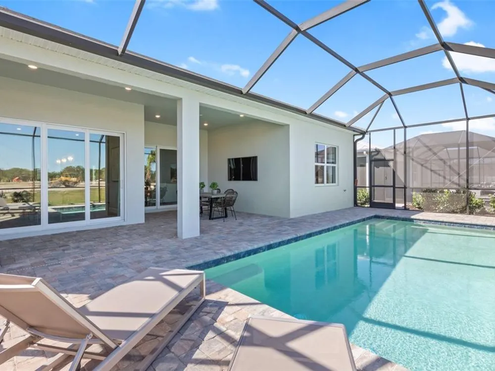 NEW CONSTRUCTION! This Prestige floorplan offers 2 bedrooms and 2 bathrooms, featuring a private pool and spa for the ultimate Florida lifestyle. The home is beautifully appointed with white cabinets, quartz countertops, and tile flooring throughout. The owner’s suite showcases an enlarged walk-in shower and tray ceilings for an added touch of elegance. Additional upgrades include built-in kitchen appliances, laundry room cabinets with sink and countertops, 8' interior doors, and epoxy flooring in the garage, blending style and functionality seamlessly. The amenities features 21 sports courts including pickleball, tennis and bocce ball, a resort style pool with a beach entry and attached lap pool with multiple swim lanes, boardwalk with a kayak launch, memorial garden, community garden, dog park, miles of trails, gated entry with guard, second gate to Manasota Beach road, full time activity director, and an 11,000 sq ft fitness center featuring a cafe and 2 restaurants.