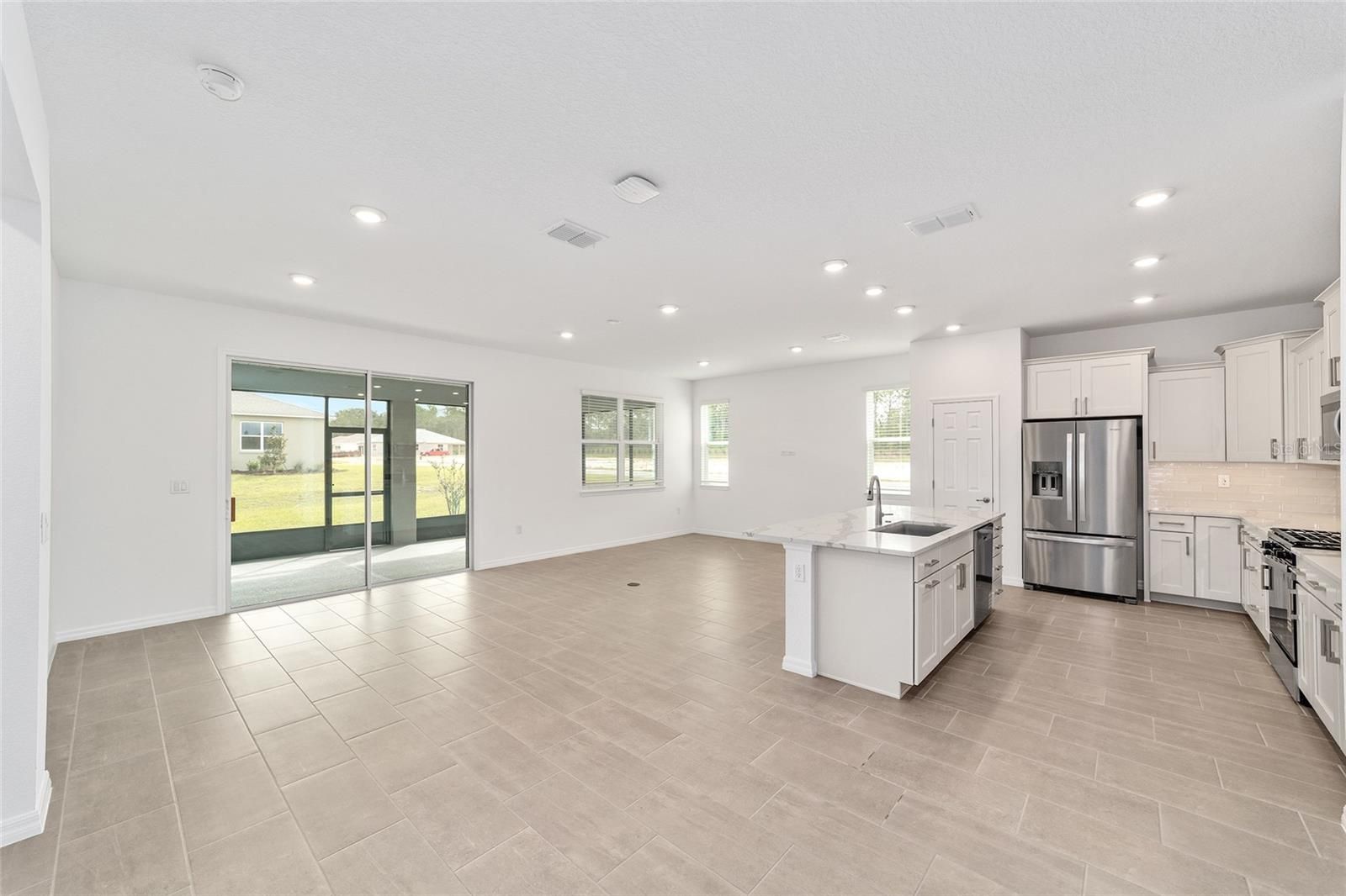 Beautiful Sunflower Model on a Corner Lot in LongLeaf Ridge at On Top of the World! Discover exceptional style and comfort in this thoughtfully designed 3-bedroom, 2-bath home with a 2-car garage, perfectly situated on a desirable corner lot. Featuring tile flooring throughout and an open-concept layout, this Sunflower model blends modern design with everyday functionality. The gourmet kitchen is the heart of the home, showcasing staggered cabinets with crown molding, under-cabinet lighting, a tile backsplash, quartz countertops, a large island, and stainless-steel appliances — ideal for both everyday living and entertaining. The spacious living area opens to a screened lanai, providing the perfect spot to relax and enjoy Florida’s year-round sunshine. The primary suite offers two windows overlooking the backyard, a generous walk-in closet with convenient through access to the laundry room, and a luxurious ensuite featuring dual quartz vanities and a tiled, glass-enclosed shower with a built-in bench and glass door. Two additional bedrooms provide flexibility for guests, a home office, or hobbies. Enjoy the active lifestyle of On Top of the World, Ocala’s premier 55+ community, offering world-class amenities, golf, swimming, fitness, and countless opportunities for recreation and connection.