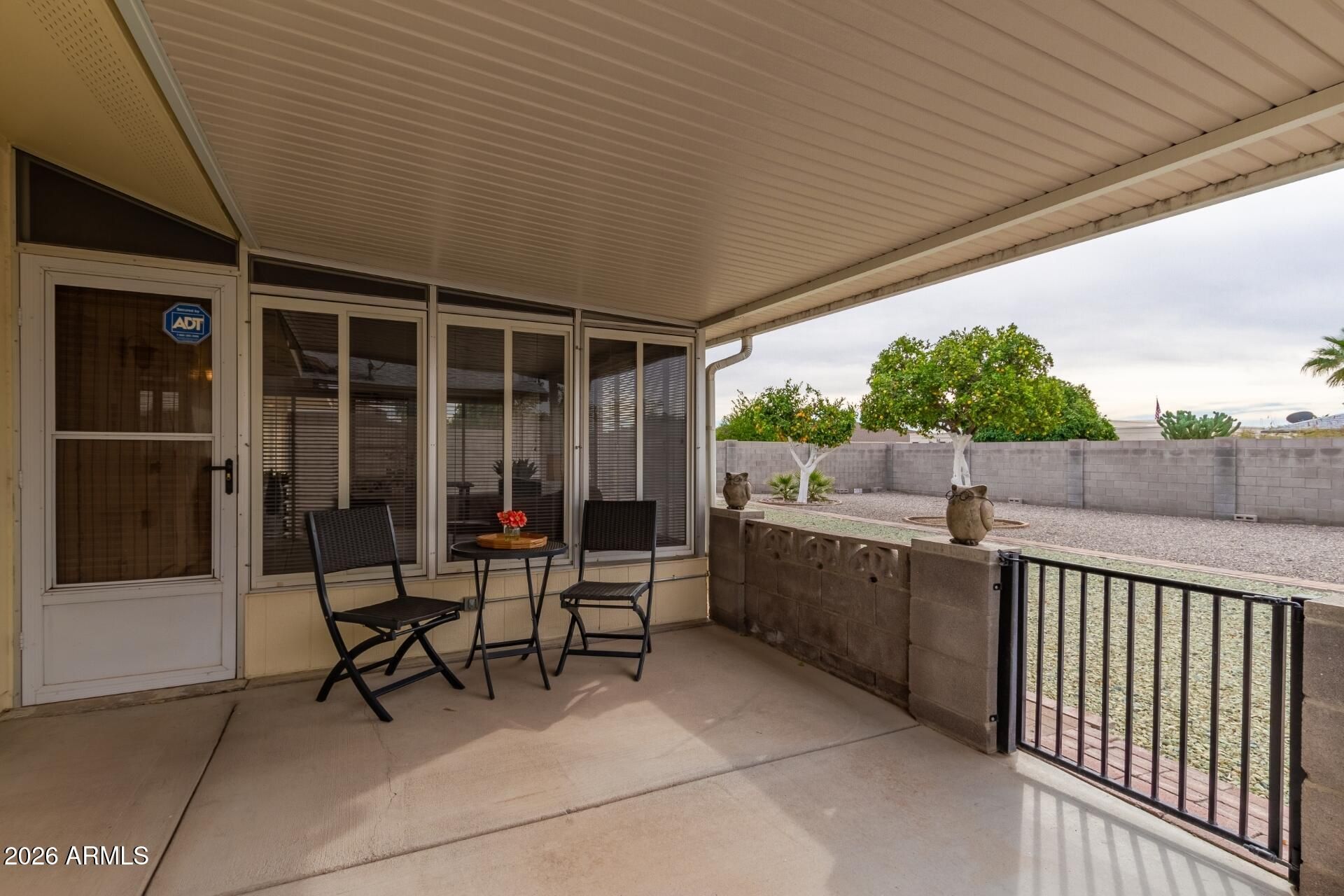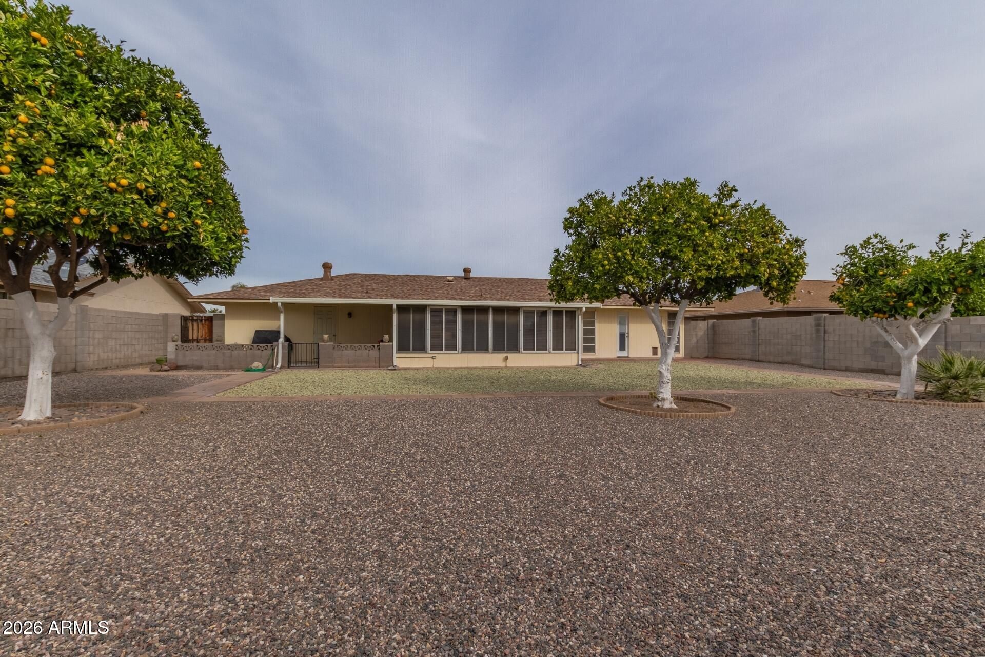 Experience ultimate peace of mind in this pristine 2-bedroom, 2-bathroom Sun City home. This property has been meticulously cared for, featuring a brand-new roof and a newer high-efficiency A/C unit, ensuring comfort and low utility bills for years to come. Inside, you'll find an open layout with easy-maintenance tile flooring and a spacious Arizona Room. The 2-car garage provides plenty of space for vehicles and hobbies and also has a built-in storage area. While the fully fenced backyard offers rare privacy and a safe space for pets. Located in the premier 55+ active adult community, you'll enjoy world-class golf, pools, and social clubs just minutes away. All the major work is done--just move in and start enjoying the Sun City lifestyle! Located in the Golden Circle and close to both the Bell Center and Sun Dial Recreation Centers with accessibility to many of the golf courses and not far from Dawn Lake! Beautiful serene setting and tons of activities for the Active Adult! Don't miss this one - put it on your list to see today!