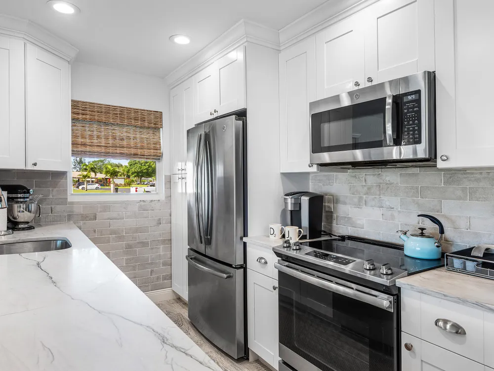Completely remodeled 2BR/2BA villa with bonus den in one of Delray Beach's most desirable 55+ communities--just 4 miles from the beach! Located on a quiet cul-de-sac, this corner unit features tile floors, smooth ceilings, plantation shutters, and an open layout with spacious bedrooms. Den can easily serve as a 3rd bedroom or office. Enjoy your private patio and walk just steps to the clubhouse and heated pool. One of the lowest HOAs in the area--includes cable, internet, water, roof maintenance, and building insurance. Assigned parking + plenty of guest spaces. Roof replaced in 2019.IMPACT WINDOWS! Ideal for seasonal or year-round living with low maintenance and close proximity to vibrant Atlantic Ave.