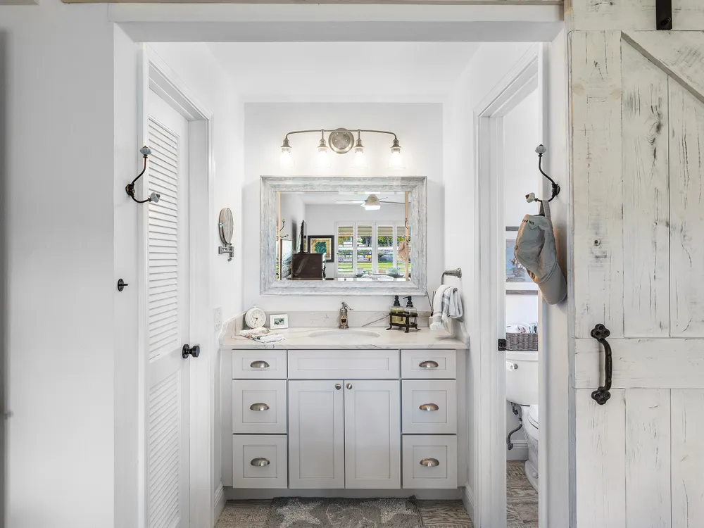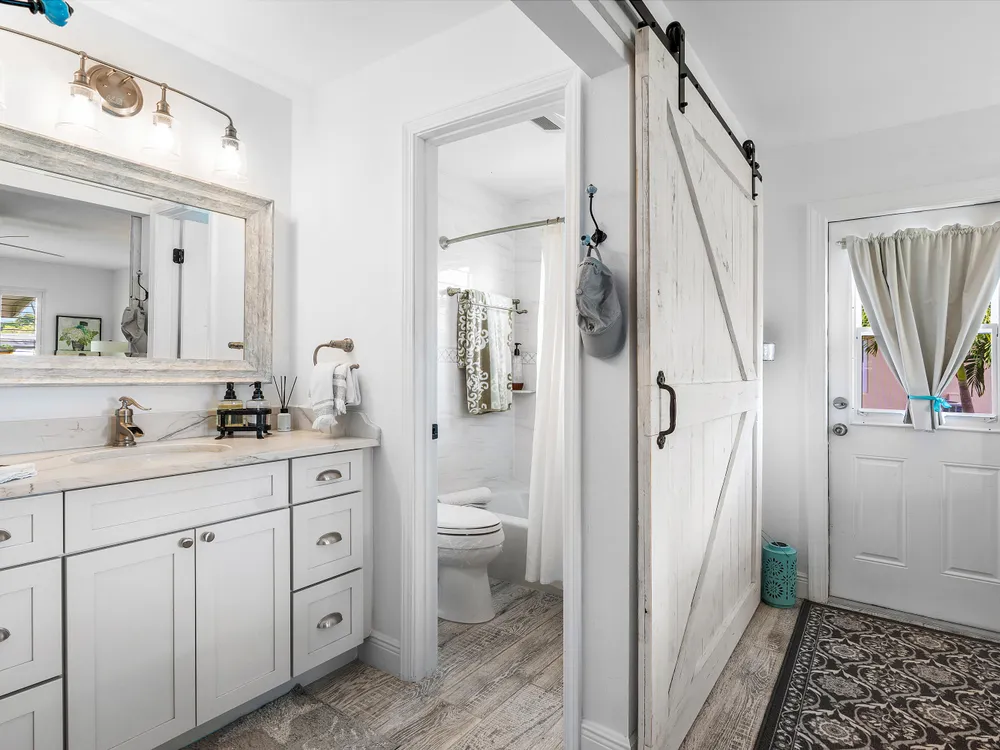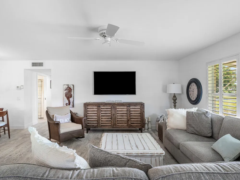 - Walk-In Closet(s), Home Office, Living/Dining Room, Plantation Shutters, Tub Shower, Primary Downstairs