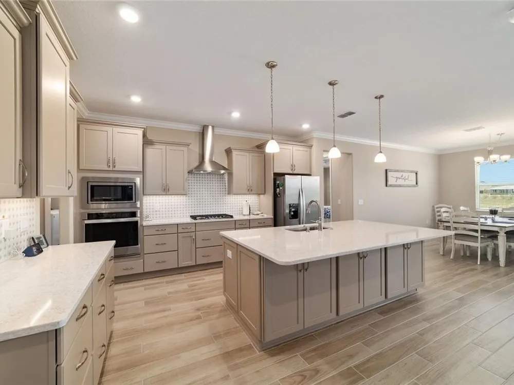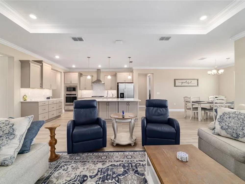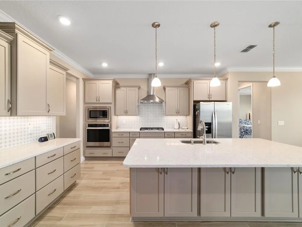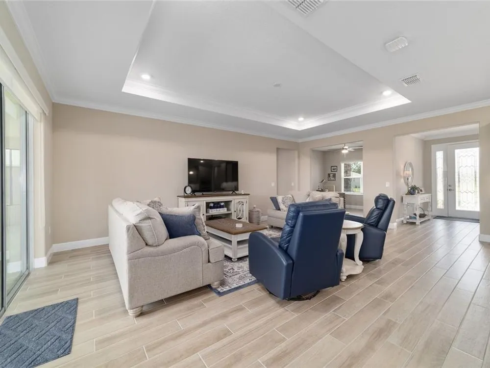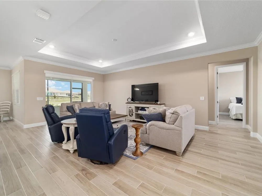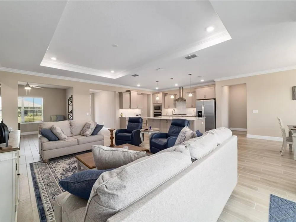 PREMIUM PRIVATE LOT: This 2023 Aurelia is a rare find! Absolutely loaded with options and both pet and smoke free, this home feature 3 bedrooms, 2.5 bathrooms, flex room, and an OVERSIZED garage with a 4 foot garage extension. Located on a cul-de-sac in the esteemed Longleaf Ridge in On Top of the World, this home has no rear neighbor. The gourmet kitchen has so many upgrades including stainless steel appliances, designer backsplash, and undercabinet lighting. The cream-colored cabinets have crown molding, soft close cabinets and drawers, and feature pot drawers with dovetail construction. This home features wood-look tile floors, shutter blinds, crown molding, upgraded base trim, rounded corners, and a coordinating paint throughout. The main bedroom has a huge walk-in closet and an ensuite bathroom complete with dual vanity sinks, additional cabinet storage, and a stunning walk-in shower with upgraded tile. With over $100k in upgrades, this home has so many thoughtful upgrades which include epoxy floors in the garage, pre-plumb for water softener, cabinets in the laundry room, paver driveway, upgraded lighting and ceiling fan features, an extended 10-year warranty on HVAC and SO much more. Best of all, this home has northeastern lanai exposure which makes outdoor entertainment from the screened lanai a delight. Longleaf Ridge residents enjoy curbside waste collection and streetside kiosk mail.
