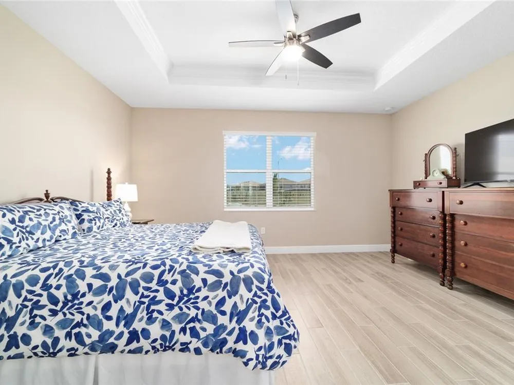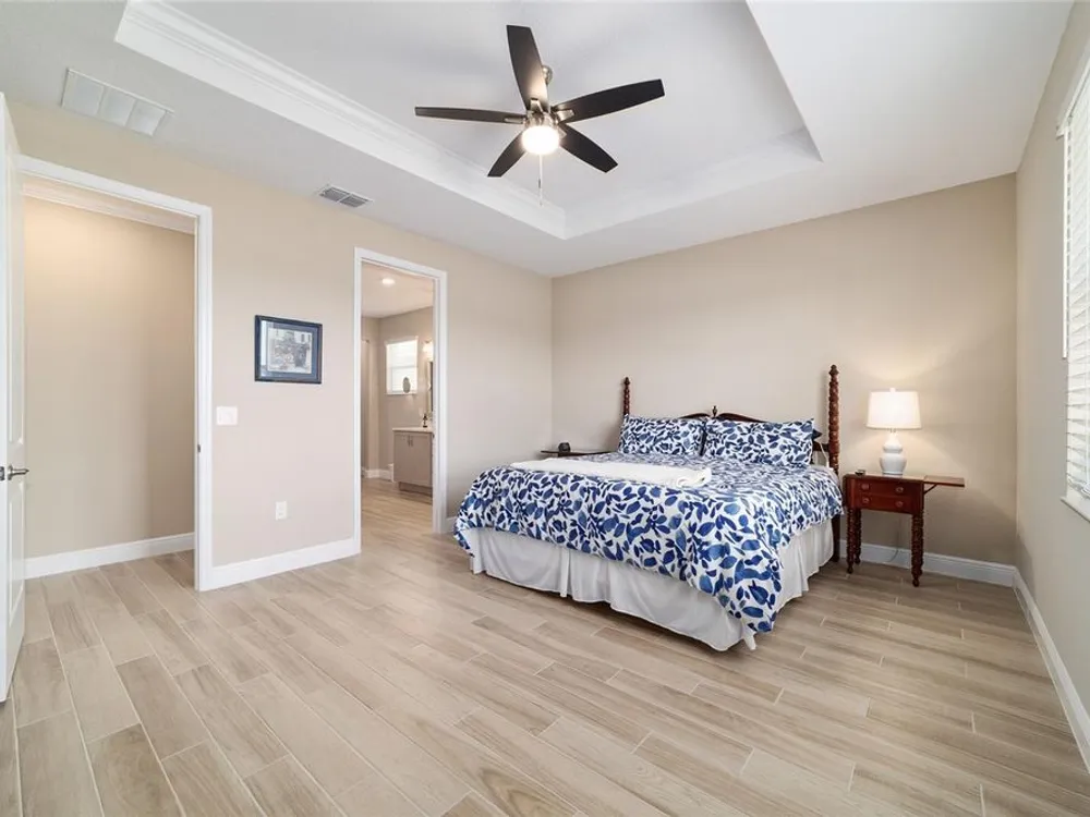 - Ceiling Fan(s), Crown Molding, High Ceilings, Open Floorplan, Main Level Primary, Smart Home, Split Bedrooms, Stone Counters, Thermostat, Tray Ceiling(s), Walk-In Closet(s), Window Treatments