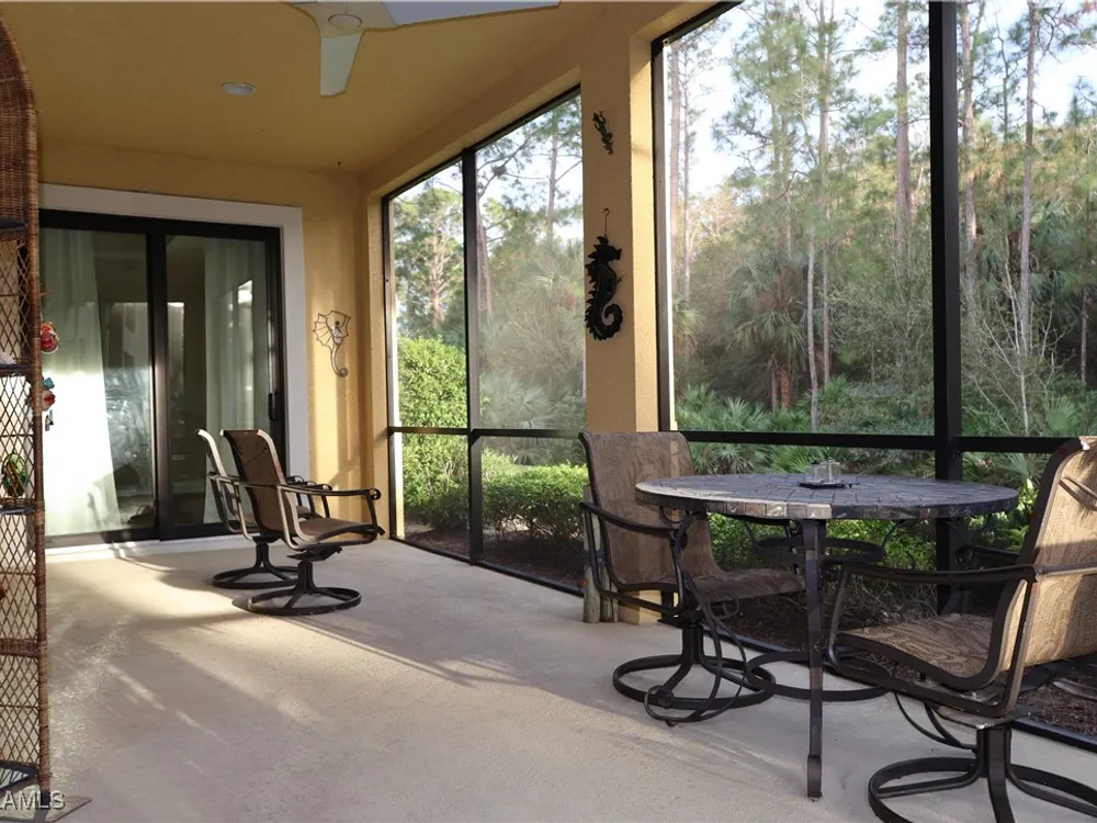 MOTIVATED! Move right into this 3-bedroom, beautifully furnished, turnkey, Corsica Carriage home including a golf cart located on a cul-de-sac within Pelican Preserve. This is a gated, 55+ active lifestyle community featuring many amenities. This low-maintenance home with high-impact glass on all windows and doors provides security and a quiet environment This spacious home features an open-floor plan with tray ceilings adorned with crown molding, professional appliances in the kitchen, a relaxing master suite with an en-suite bathroom, and two additional bedrooms ideal for guests or a home office. Enjoy serene views from your private screened lanai, perfect for morning coffee. This home is situated in a vibrant, amenity-rich golf community that offers the ultimate Florida lifestyle; Two onsite restaurants, a Championship 27-hole Ibis Golf Course, a Resort-Style Clubhouse, an Oasis Heated Pools & Spa, a Fitness Center, an indoor pool and track, Amphitheater, Tennis, Pickleball & Bocce Courts, Theater, Walking & Biking Trails and so much more. The community hosts a social calendar bustling with an array of entertainment, art & fitness classes, games, and social events, including exclusive themed night dining options, and more. Casella also has its own private pool with grills. The included golf cart makes it easy to explore the community, get to your tee time, or visit friends and neighbors with ease. Nestled in Southwest Florida, this community is just minutes from white-sand beaches, world-class shopping, fine dining, and cultural attractions. It’s also conveniently close to major highways and airports for easy travel. This turnkey home offers the perfect blend of relaxation, recreation, and convenience. Schedule your showing today and start living the Florida dream!