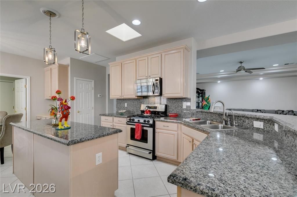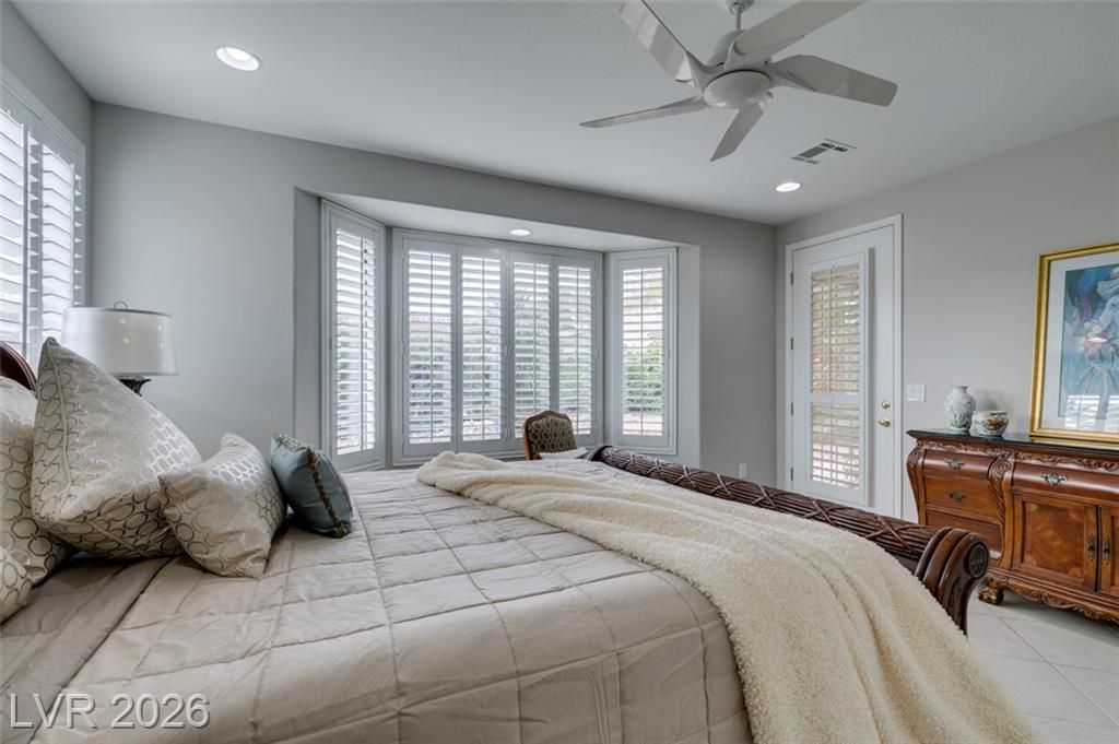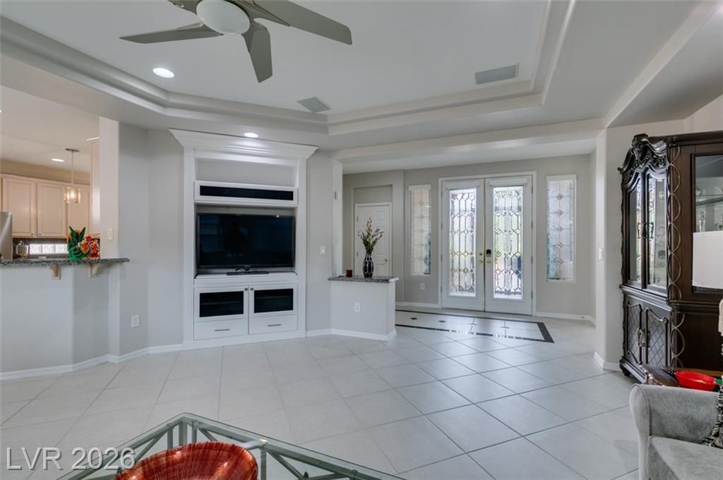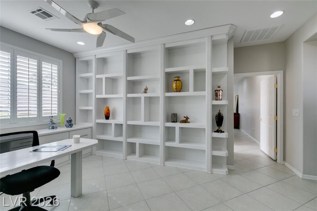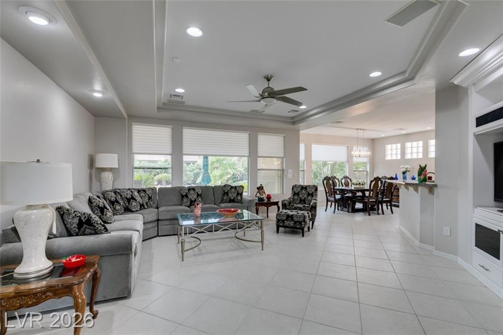 Large Cul D Sac Lot 11,326. Long Driveway. Security Gate Entry with Double Leaded Glass Doors. 2 Bdrms + 11x10 Sep Office, all in white, Built in Desk, Cabinets & Shelving. Freshly Painted interior, New: Light Fixtures& Faucets. All Tile Flooring, no Carpet. Kitchen Features Granite counters, Stainless Applncs, Center Island, Double Sinks, Skylite, Pantry, Breakfast Area, Desk area. Shutters & Ceiling Fans throughout. Lovely Formal Dining. Coffered Ceiling in Liv Rm, Surround Sound, Entertainment Cabinet. Primary Bedrm MTN View, Bay window, door to ext Patio, LG Walk in Closet, Linen Closet. Bathrm Has Sep Bathtub, 2 Sinks, Skylite Sep Laundry Rm, Washer, Dryer, Cabinets. Water Softener, Alarm. Large Covered Rear Patio, Lush Landscaping. See SIENA'S Community. Golf, Bistro, Pools, Spa's, Pickle Ball, Tennis Fitness Center. Event Calendar & MORE !! We are Featured in Best Senior Community in LAS Vegas