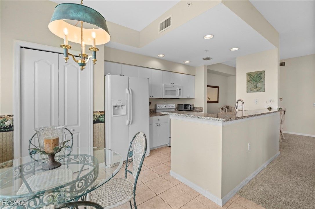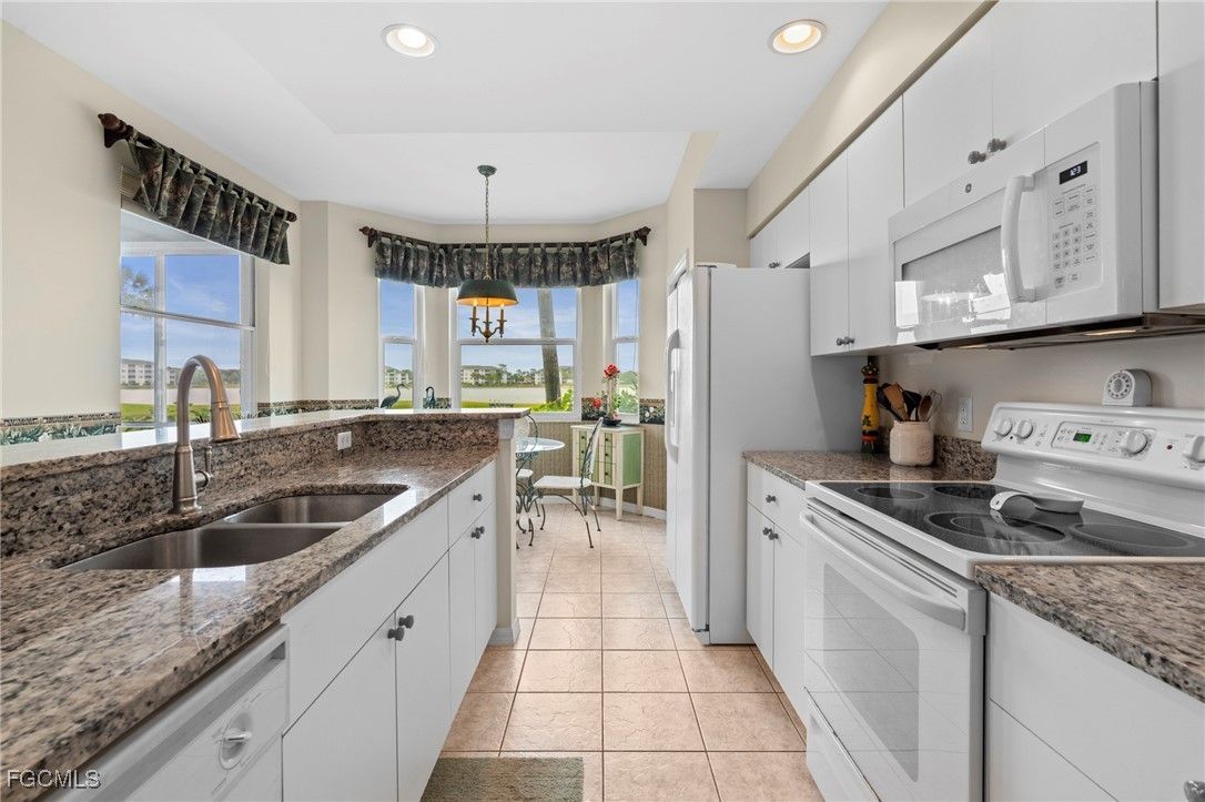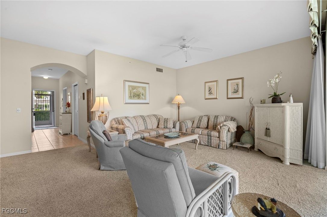 Experience the ultimate Florida lifestyle in Heritage Palms Golf & Country Club, Fort Myers’ premier gated community where every home includes a bundled golf membership—just pay the cart fee. Set across more than 800 acres of lush, tropical landscaping, Heritage Palms features two 18-hole championship golf courses designed by Azinger & Lewis, offering a world-class experience for players of all levels. This first-floor Brookside model condo perfectly blends comfort, style, and convenience, featuring two bedrooms, two bathrooms, and being sold turnkey furnished so you can move right in and start enjoying resort living from day one. Step inside to a bright, open layout that draws your eyes to the spectacular lake and 18th-hole views of the Sable Course, visible from both the kitchen and living room. Impact-resistant windows and large sliding glass doors beautifully frame the scenery and open to a screened lanai—an ideal spot for your morning coffee or sunset cocktails. The kitchen boasts granite countertops, white appliances, a large pantry, and an eat-in nook filled with natural light. A flexible formal dining area easily doubles as a home office or den, providing extra versatility. The primary suite includes plantation shutters, a walk-in closet, and a private bath with a walk-in shower. The spacious guest bedroom is conveniently located near a full guest bath with a tub, offering comfort and privacy for visitors. Additional highlights include a full-size washer and dryer, a private storage closet just outside the front door, a screened front porch that welcomes refreshing cross-breezes throughout the home, and covered carport parking with ample guest spaces. A brand-new roof is also being installed—no assessment required. Residents of Heritage Palms enjoy an exceptional array of resort-style amenities, including a newly renovated clubhouse offering both casual and fine dining, a state-of-the-art fitness center, tennis and pickleball courts, bocce ball, and multiple resort-style pools. The community’s active social calendar features themed dinners, live entertainment, clubs, and fitness classes, all contributing to a friendly, welcoming atmosphere. And soon to be opening, a casual tiki bar and pool - see pics! All of this is nestled within a serene, beautifully landscaped setting just minutes from Southwest Florida International Airport, white-sand beaches, shopping, and top-rated restaurants. Don’t just imagine the lifestyle—live it. Schedule your private showing today and discover why Heritage Palms remains one of Fort Myers’ most desirable communities.