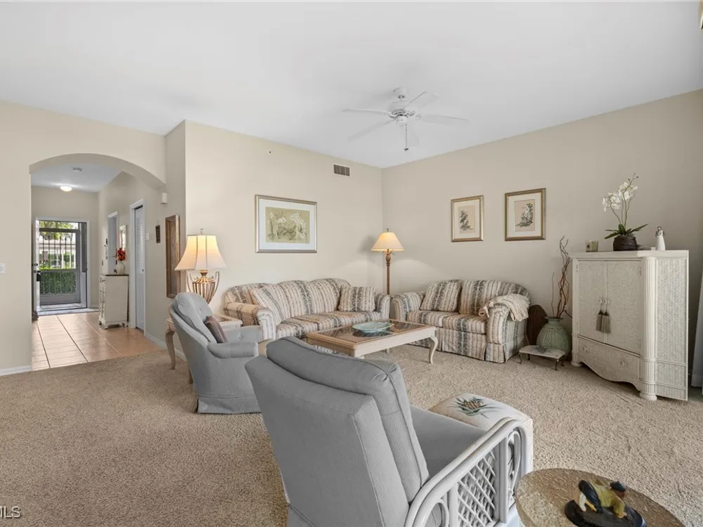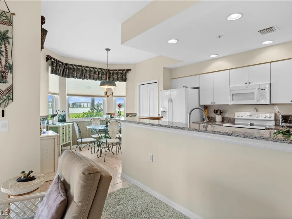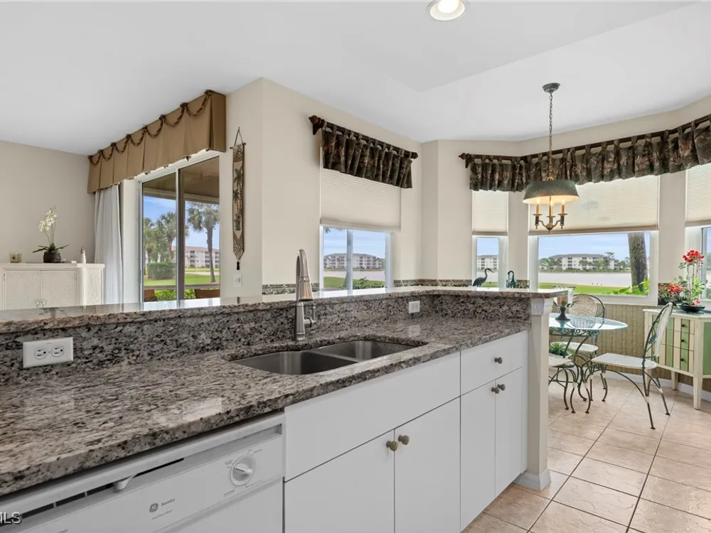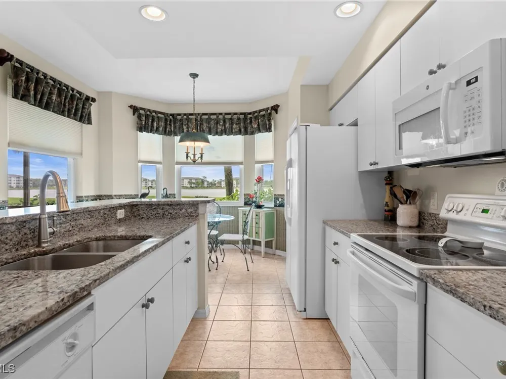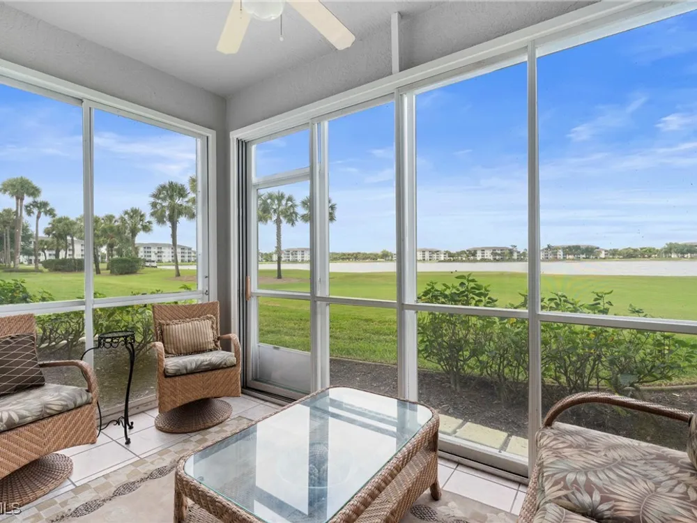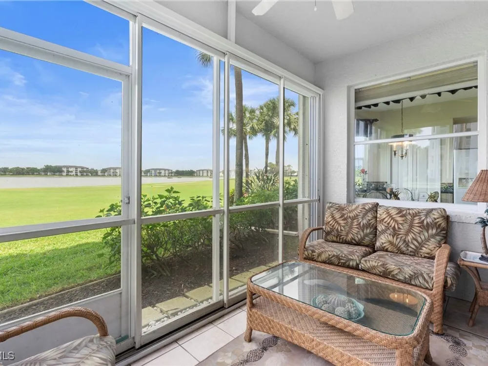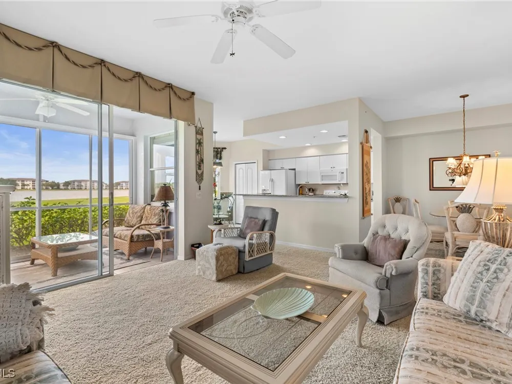 Experience the ultimate Florida lifestyle in Heritage Palms Golf & Country Club, Fort Myers’ premier gated community where every home includes a bundled golf membership—just pay the cart fee. Set across more than 800 acres of lush, tropical landscaping, Heritage Palms features two 18-hole championship golf courses designed by Azinger & Lewis, offering a world-class experience for players of all levels. This first-floor Brookside model condo perfectly blends comfort, style, and convenience, featuring two bedrooms, two bathrooms, and being sold turnkey furnished so you can move right in and start enjoying resort living from day one. Step inside to a bright, open layout that draws your eyes to the spectacular lake and 18th-hole views of the Sable Course, visible from both the kitchen and living room. Impact-resistant windows and large sliding glass doors beautifully frame the scenery and open to a screened lanai—an ideal spot for your morning coffee or sunset cocktails. The kitchen boasts granite countertops, white appliances, a large pantry, and an eat-in nook filled with natural light. A flexible formal dining area easily doubles as a home office or den, providing extra versatility. The primary suite includes plantation shutters, a walk-in closet, and a private bath with a walk-in shower. The spacious guest bedroom is conveniently located near a full guest bath with a tub, offering comfort and privacy for visitors. Additional highlights include a full-size washer and dryer, a private storage closet just outside the front door, a screened front porch that welcomes refreshing cross-breezes throughout the home, and covered carport parking with ample guest spaces. A brand-new roof is also being installed—no assessment required. Residents of Heritage Palms enjoy an exceptional array of resort-style amenities, including a newly renovated clubhouse offering both casual and fine dining, a state-of-the-art fitness center, tennis and pickleball courts, bocce ball, and multiple resort-style pools. The community’s active social calendar features themed dinners, live entertainment, clubs, and fitness classes, all contributing to a friendly, welcoming atmosphere. All of this is nestled within a serene, beautifully landscaped setting just minutes from Southwest Florida International Airport, white-sand beaches, shopping, and top-rated restaurants. Don’t just imagine the lifestyle—live it. Schedule your private showing today and discover why Heritage Palms remains one of Fort Myers’ most desirable communities.