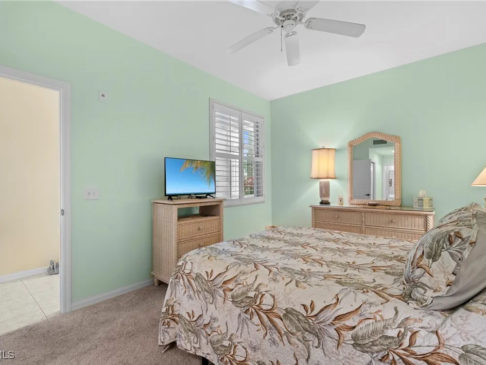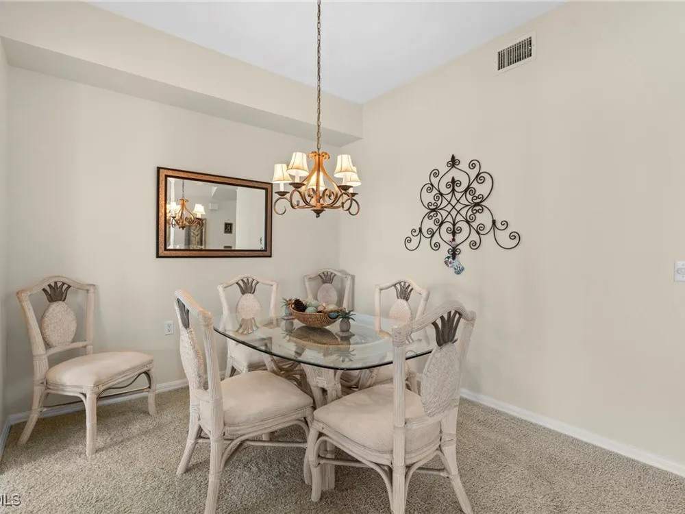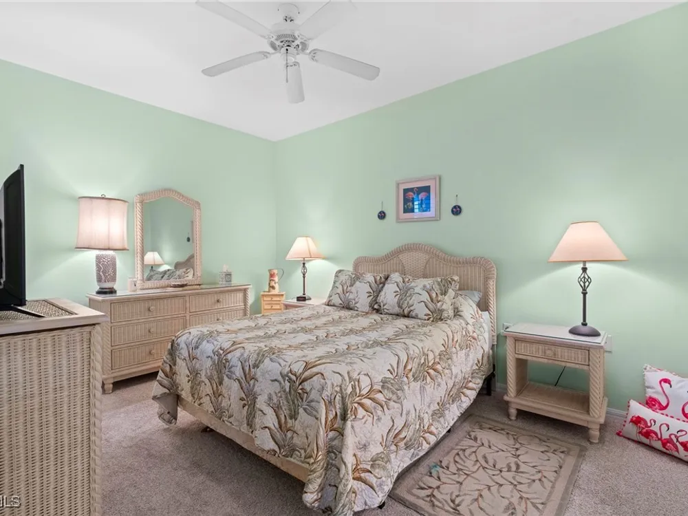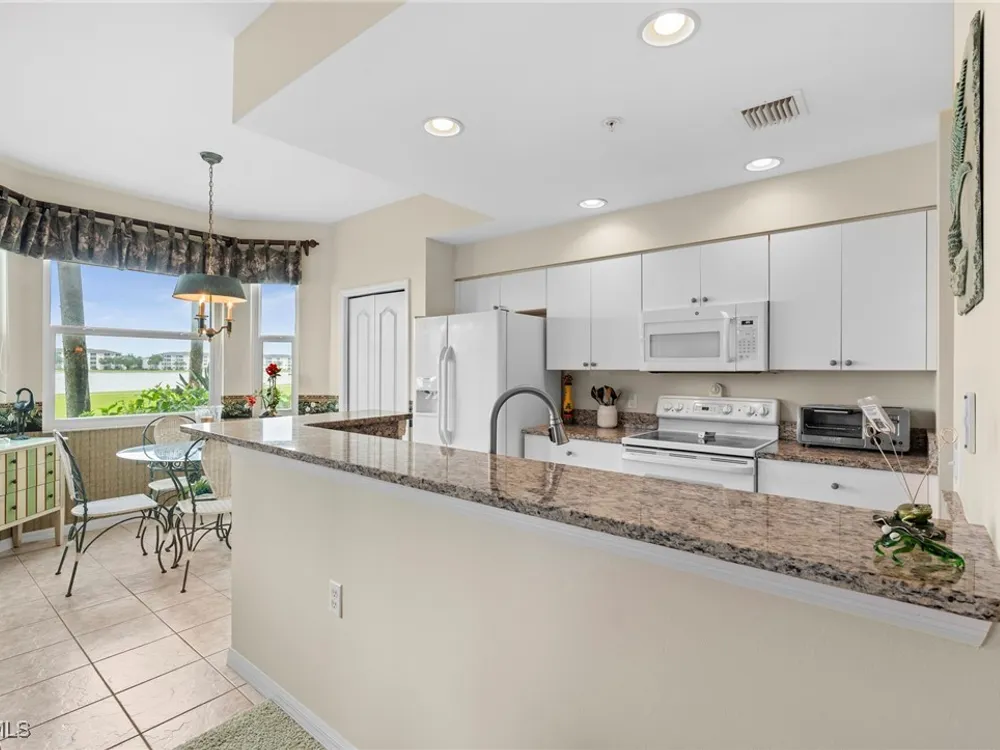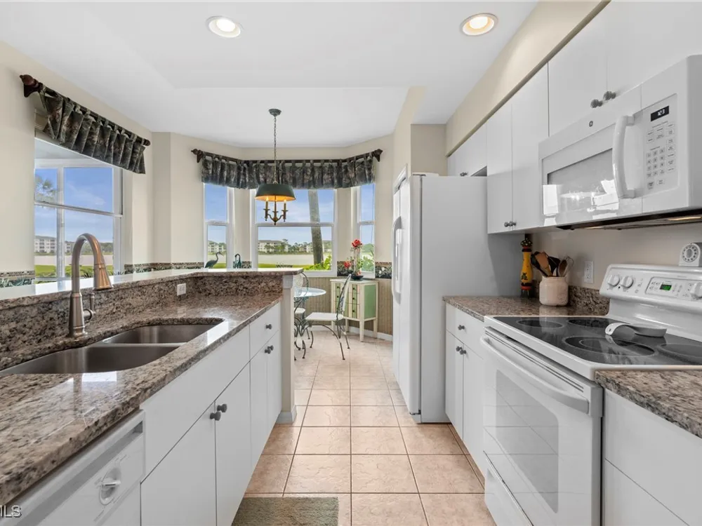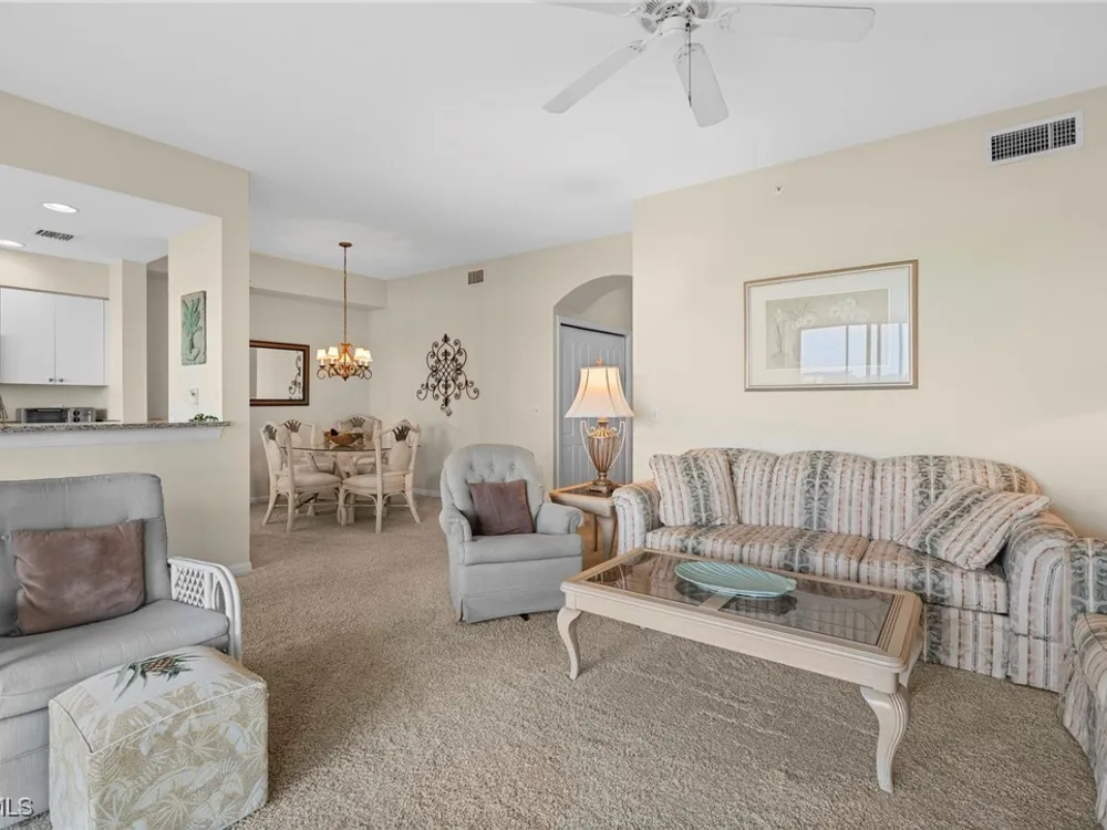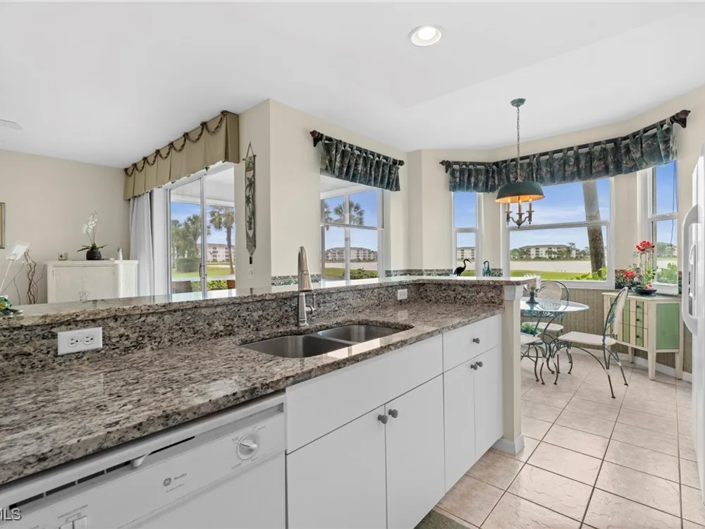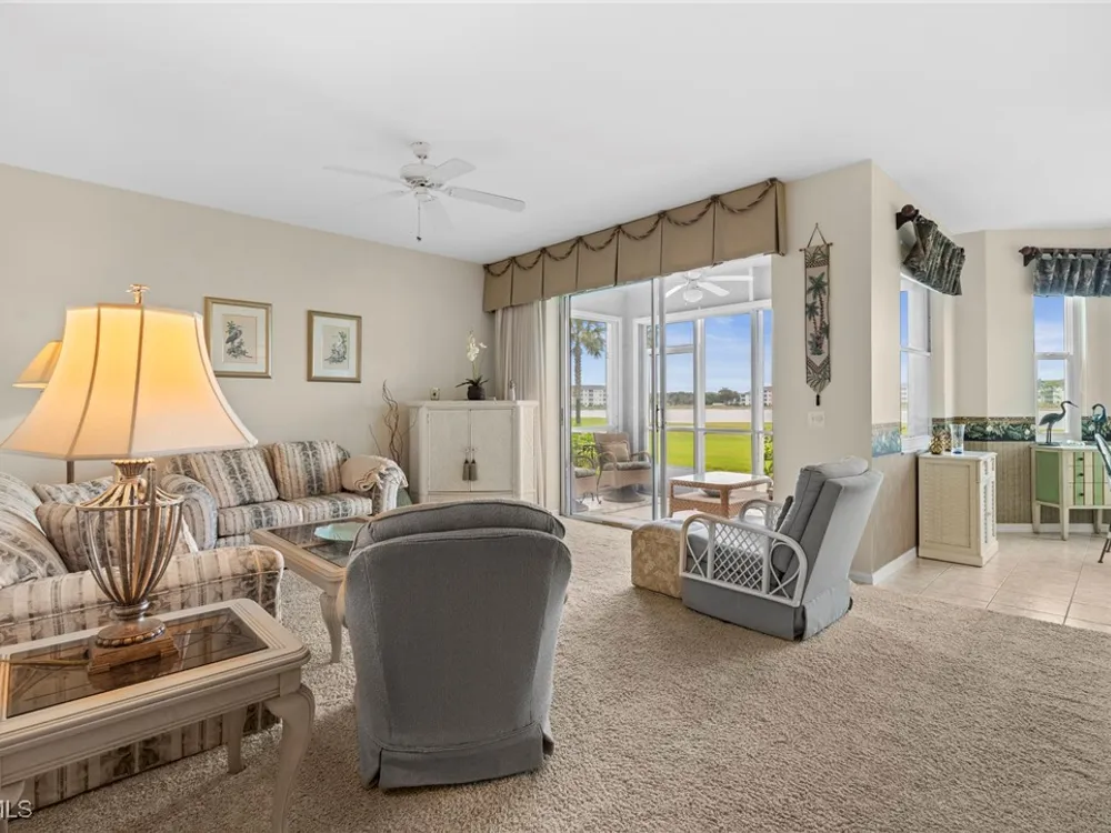 Experience the ultimate Florida lifestyle in Heritage Palms Golf & Country Club, Fort Myers’ premier gated community where every home includes a bundled golf membership—just pay the cart fee. Set across more than 800 acres of lush, tropical landscaping, Heritage Palms features two 18-hole championship golf courses designed by Azinger & Lewis, offering a world-class experience for players of all levels. This first-floor Brookside model condo perfectly blends comfort, style, and convenience, featuring two bedrooms, two bathrooms, and being sold turnkey furnished so you can move right in and start enjoying resort living from day one. Step inside to a bright, open layout that draws your eyes to the spectacular lake and 18th-hole views of the Sable Course, visible from both the kitchen and living room. Impact-resistant windows and large sliding glass doors beautifully frame the scenery and open to a screened lanai—an ideal spot for your morning coffee or sunset cocktails. The kitchen boasts granite countertops, white appliances, a large pantry, and an eat-in nook filled with natural light. A flexible formal dining area easily doubles as a home office or den, providing extra versatility. The primary suite includes plantation shutters, a walk-in closet, and a private bath with a walk-in shower. The spacious guest bedroom is conveniently located near a full guest bath with a tub, offering comfort and privacy for visitors. Additional highlights include a full-size washer and dryer, a private storage closet just outside the front door, a screened front porch that welcomes refreshing cross-breezes throughout the home, and covered carport parking with ample guest spaces. A brand-new roof is also being installed—no assessment required. Residents of Heritage Palms enjoy an exceptional array of resort-style amenities, including a newly renovated clubhouse offering both casual and fine dining, a state-of-the-art fitness center, tennis and pickleball courts, bocce ball, and multiple resort-style pools. The community’s active social calendar features themed dinners, live entertainment, clubs, and fitness classes, all contributing to a friendly, welcoming atmosphere. All of this is nestled within a serene, beautifully landscaped setting just minutes from Southwest Florida International Airport, white-sand beaches, shopping, and top-rated restaurants. Don’t just imagine the lifestyle—live it. Schedule your private showing today and discover why Heritage Palms remains one of Fort Myers’ most desirable communities.