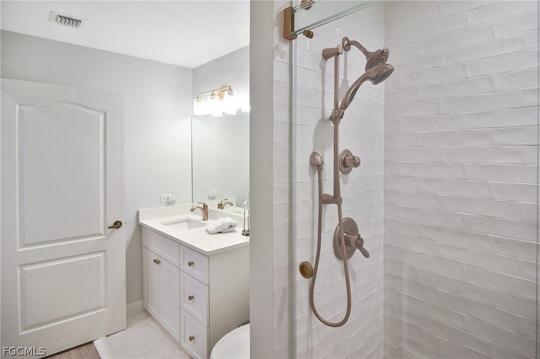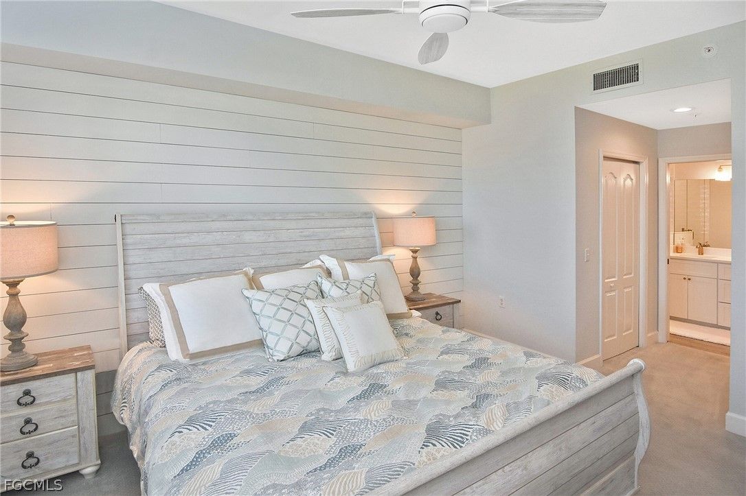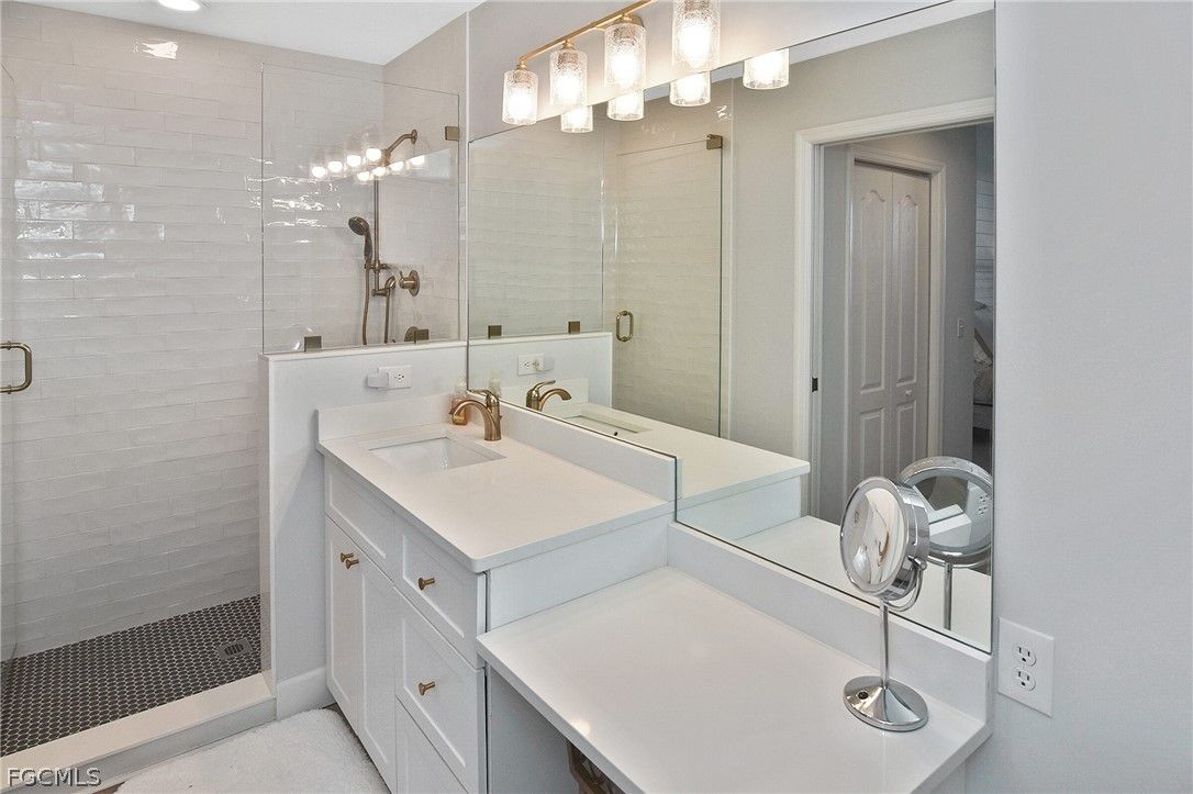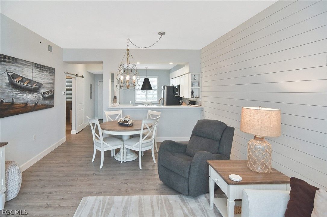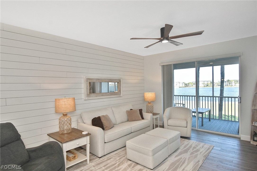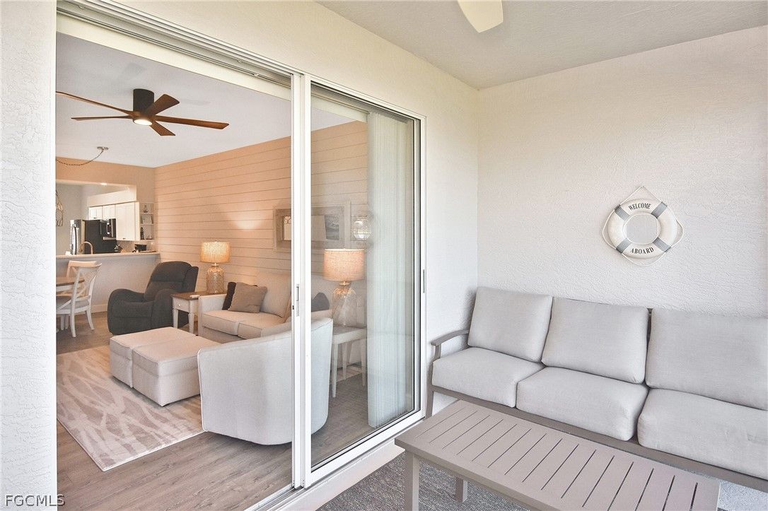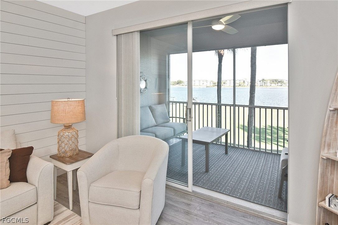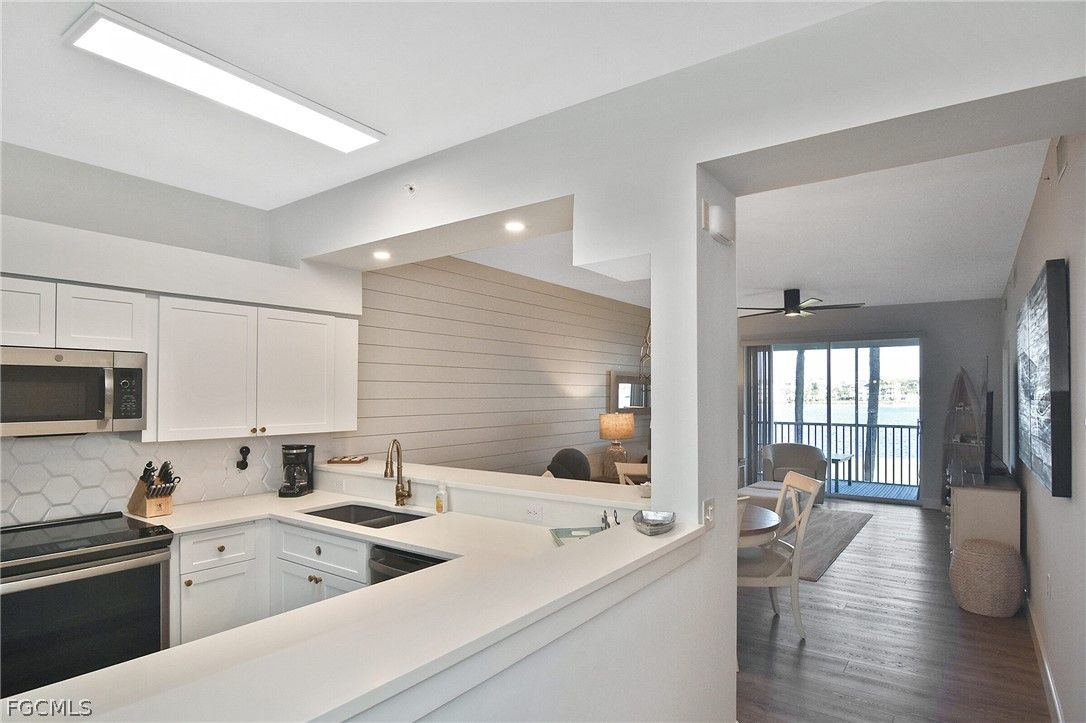 Completely remodeled condo offered turnkey—including all newer large HD TVs. From the moment you enter, you’ll notice the bright, open feel created by two kitchen half walls that enhance the lake and fountain views. A shiplap wall extends from the dining area into the family room, adding inviting coastal character. The redesigned kitchen is a standout, featuring new cabinetry with large drawers, white quartz countertops, and stainless-steel appliances, all opening beautifully to the main living area. Cortex cork flooring runs throughout the main living spaces, complemented by modern light fixtures. The bathrooms have been fully renovated, offering premium step-in tile showers with built-in benches, custom vanities, and frameless glass doors, creating a spa-like experience that blends style and function. The private lanai overlooks the 18th hole, with peaceful lake and golf course views—an ideal spot to enjoy morning coffee or unwind at the end of the day. The building’s prime location is close to the clubhouse, fitness center, and main pool. This active, amenity-rich community offers 36 holes of championship golf, tennis, pickleball, bocce ball, and a full calendar of social activities and events at Heritage Palms Golf & Country Club. The building features a new roof and elevator, and the well-managed HOA has recently reduced dues—offering long-term value and peace of mind. Schedule your showing today—words and pictures truly can’t capture the beautiful details of this home.