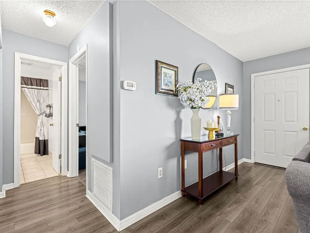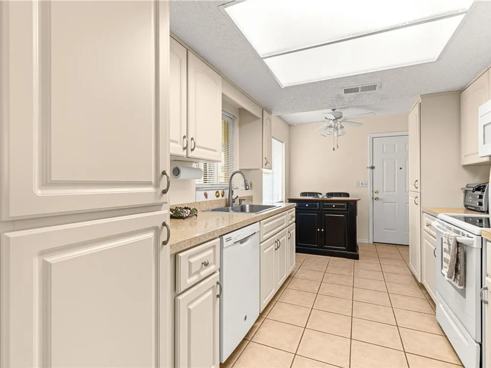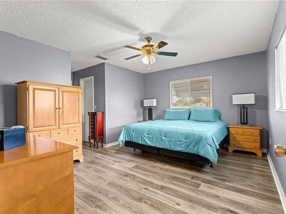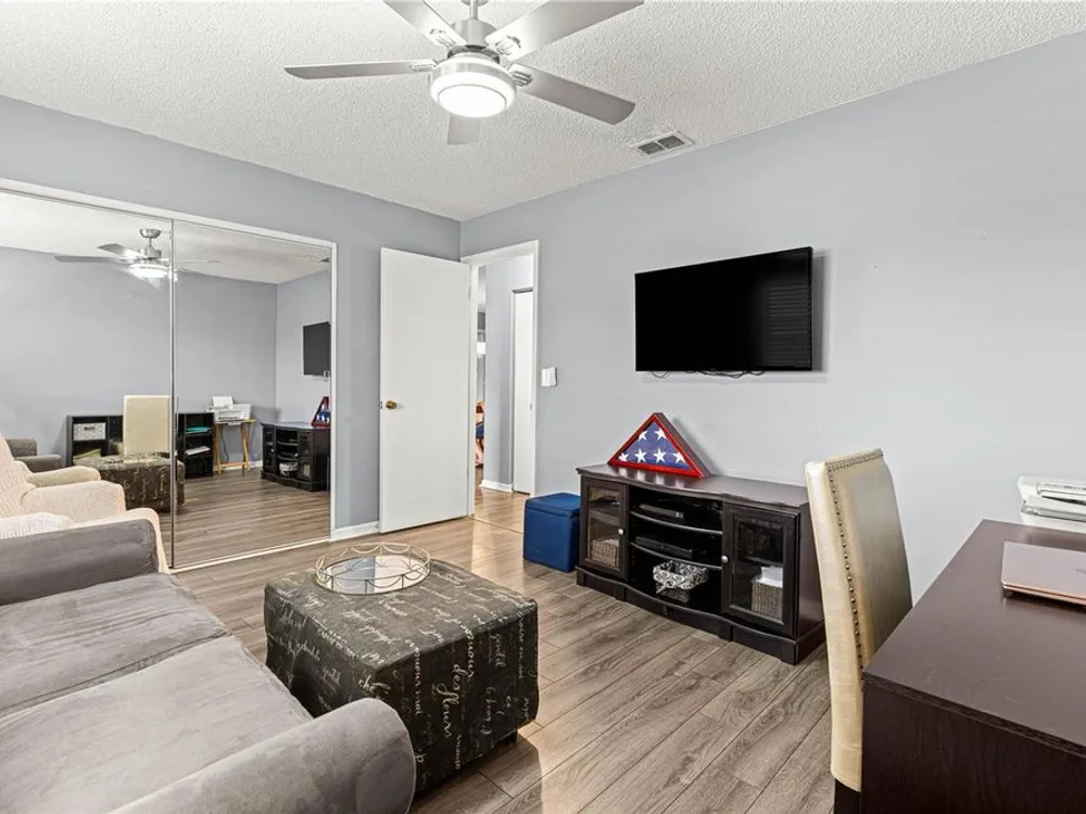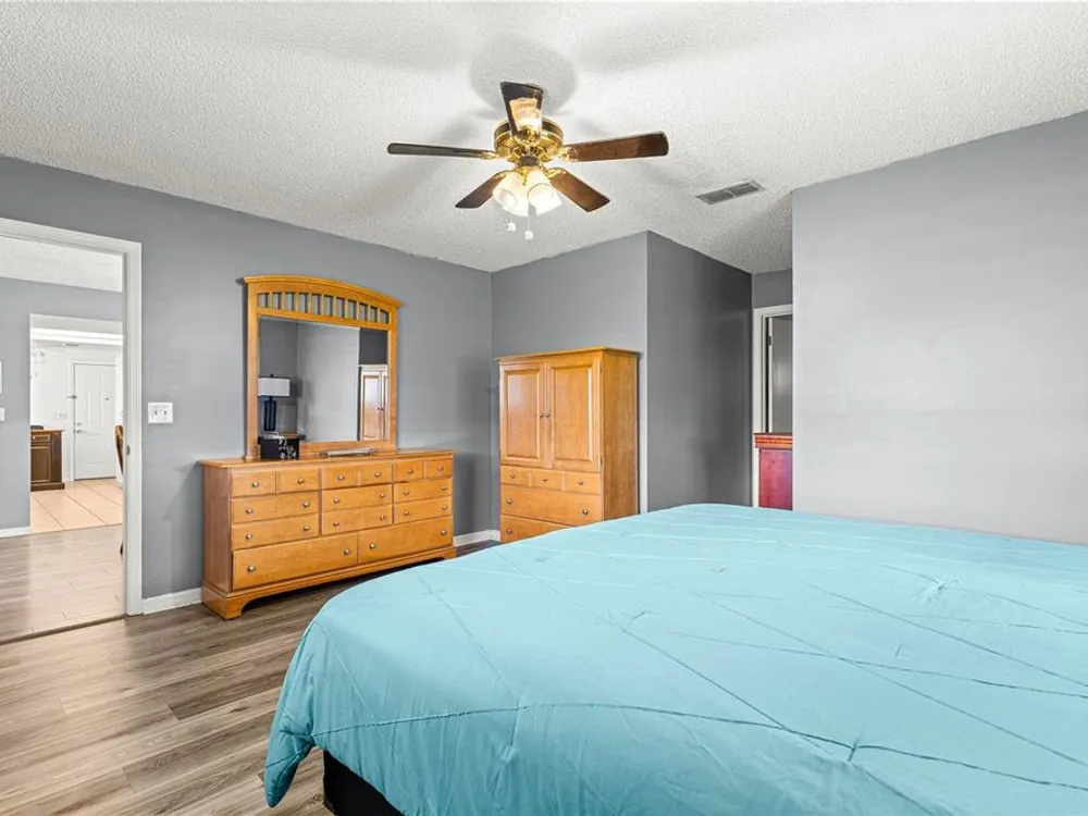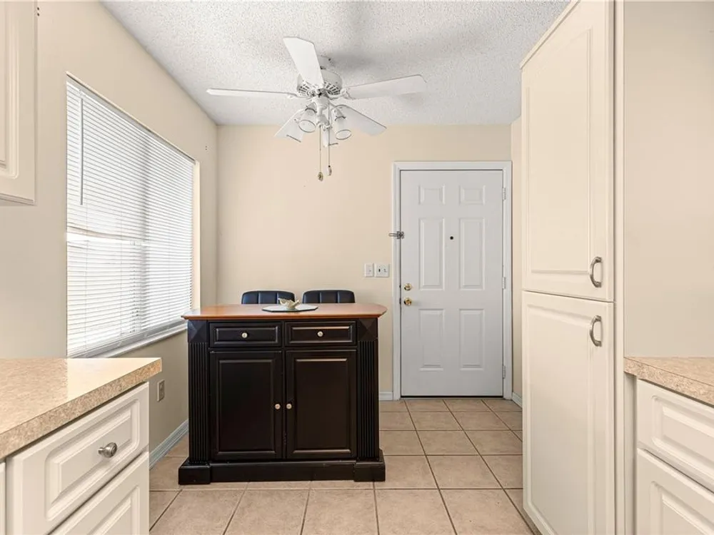 - Ceiling Fan(s), Eat-in Kitchen, Main Level Primary, Split Bedrooms, Thermostat, Walk-In Closet(s), Window Treatments