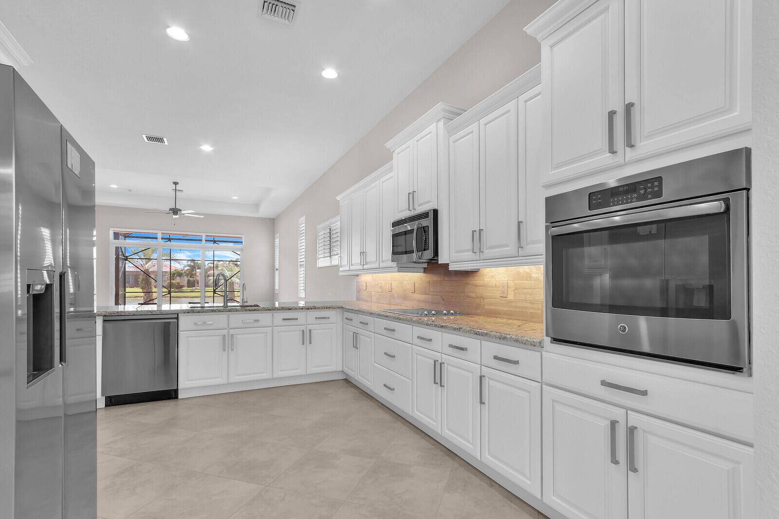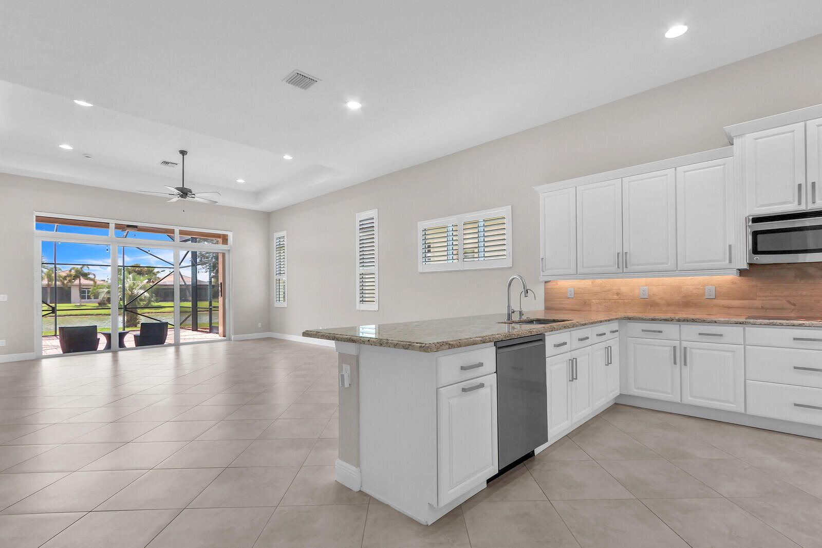 MOTIVATED SELLER! WATERFRONT, STUNNING 3-bedroom home in the sought-after PGA Verano community. This modern residence boasts an open floor plan that seamlessly blends style and functionality. The spacious interior features tile flooring throughout, with a desirable current decor, white cabinets, & beautiful granite countertops. The kitchen is equipped with SS appliances, including a new refrigerator in 2023. Step outside to the extended, screened lanai, offering beautiful, peaceful, water views-perfect for relaxing or entertaining. Hurricane impact windows & doors provide peace of mind, & the interior was freshly painted in June 2024. The home also boasts upgraded landscaping, a new water heater (2023), a new A/C system & new modern ceiling fans in every room, all added in 2024. More..
