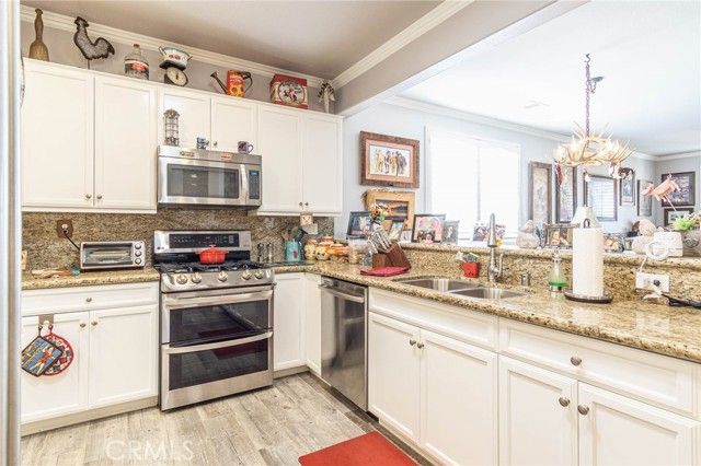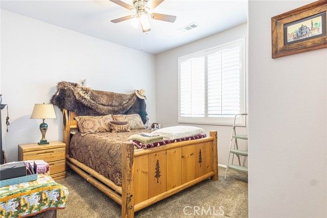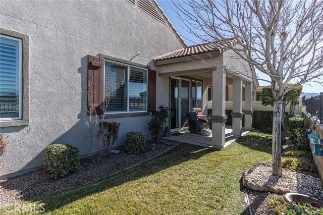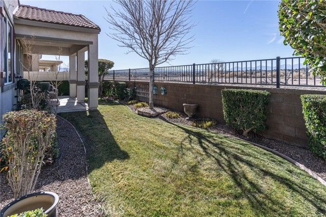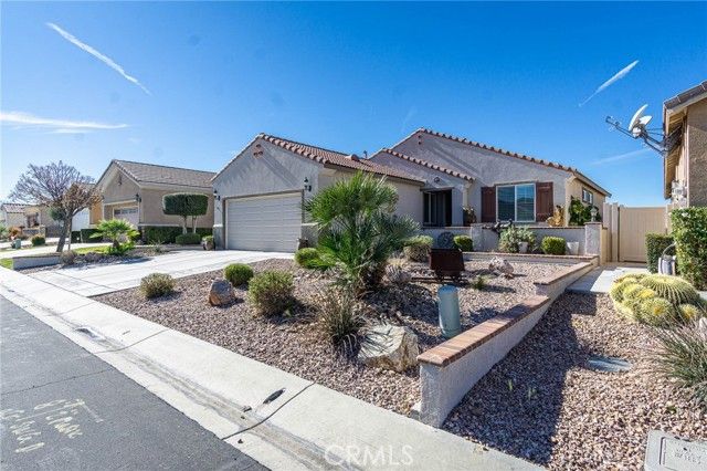 Do you want to live in a beautiful 55+ community in desirable Apple Valley? Come check out this beautiful home located on the Mojave riverbed with a beautiful view of the San Gabriel mountains. A large courtyard welcome you to a lovely place to set and enjoy. Then enter to find a home that has 2 bedrooms, 2 bathrooms, a den with double glass doors and a wonderful kitchen with a breakfast nook, large pantry, stainless steel appliances, pull out shelves and granite counters. The open great room has a fireplace and dining area which is open to the kitchen. There are two solar tubes, one in the kitchen and one in the laundry room. Home is appointed with plantation shutters, crown moulding and ceiling fans. Beautiful tile floors that look like would planks were installed in 2018 along with upgraded carpet in the bedrooms and was fully painted inside at that time. The primary bathroom has dual sinks, walk-in shower, linen closet, water closet and large walk-in closet. Primary bedroom has that beautiful view to wakeup to. Step out back to a covered patio to take in the view. Home was completely painted outside, stucco and trim 4 years ago. Call and make your appointment.