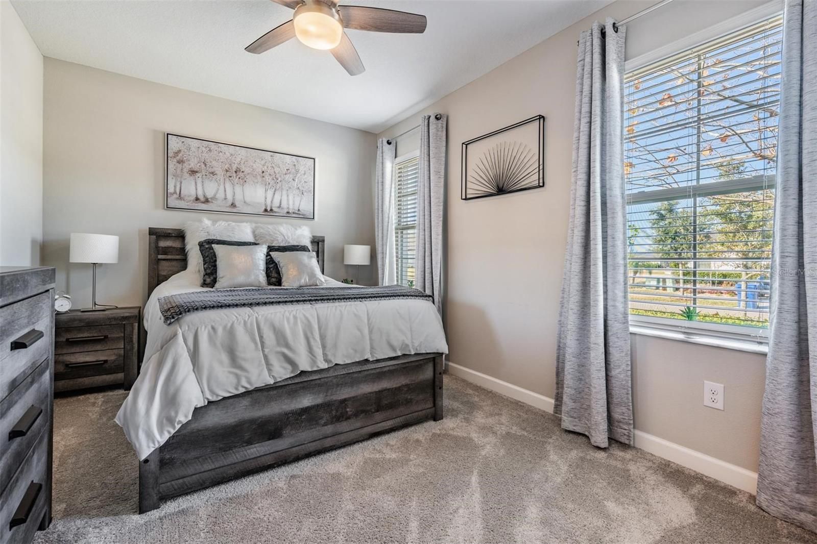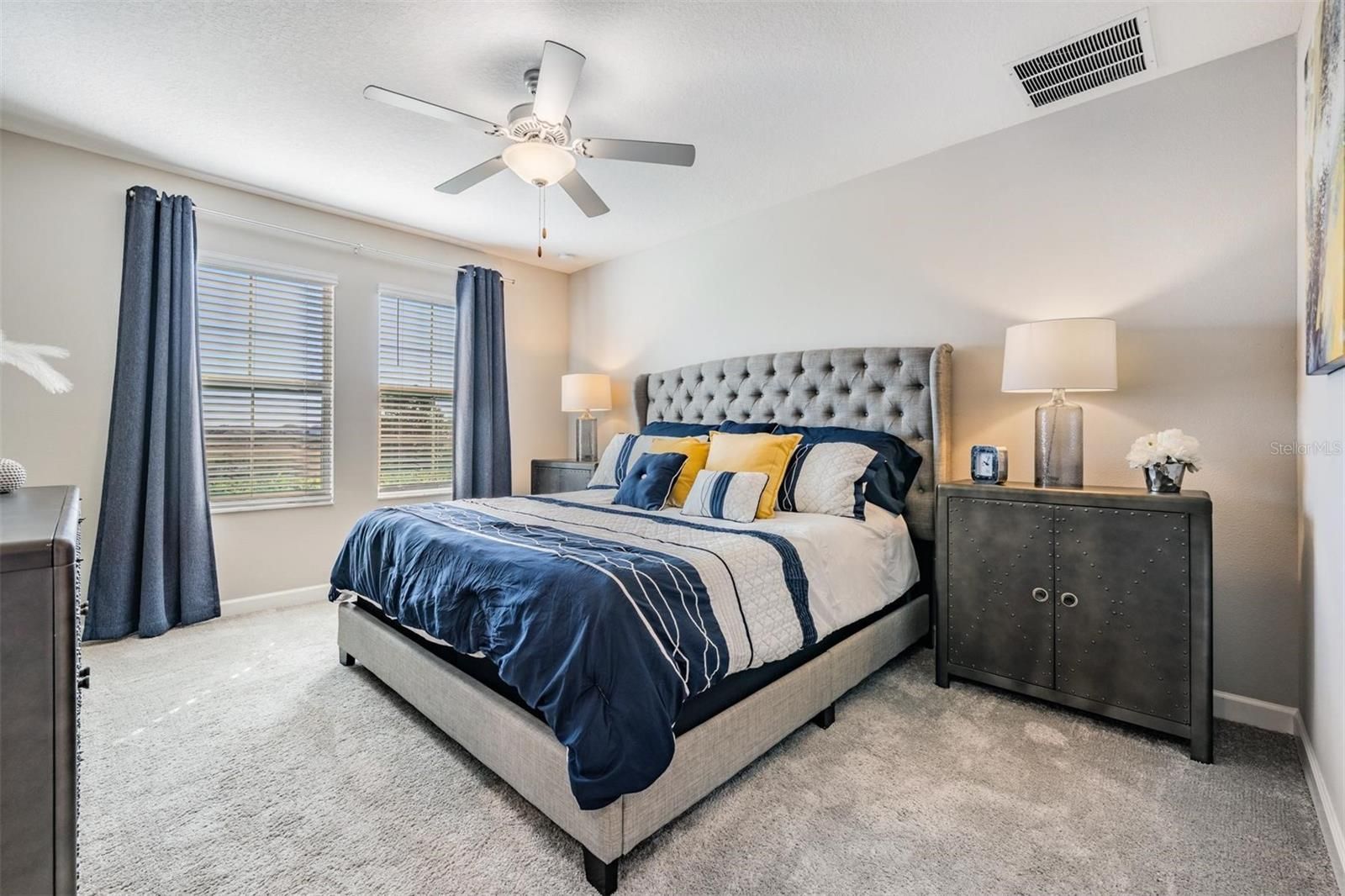 - Ceiling Fan(s), Kitchen/Family Room Combo, Main Level Primary, Solid Surface Counters, Thermostat, Walk-In Closet(s), Window Treatments
