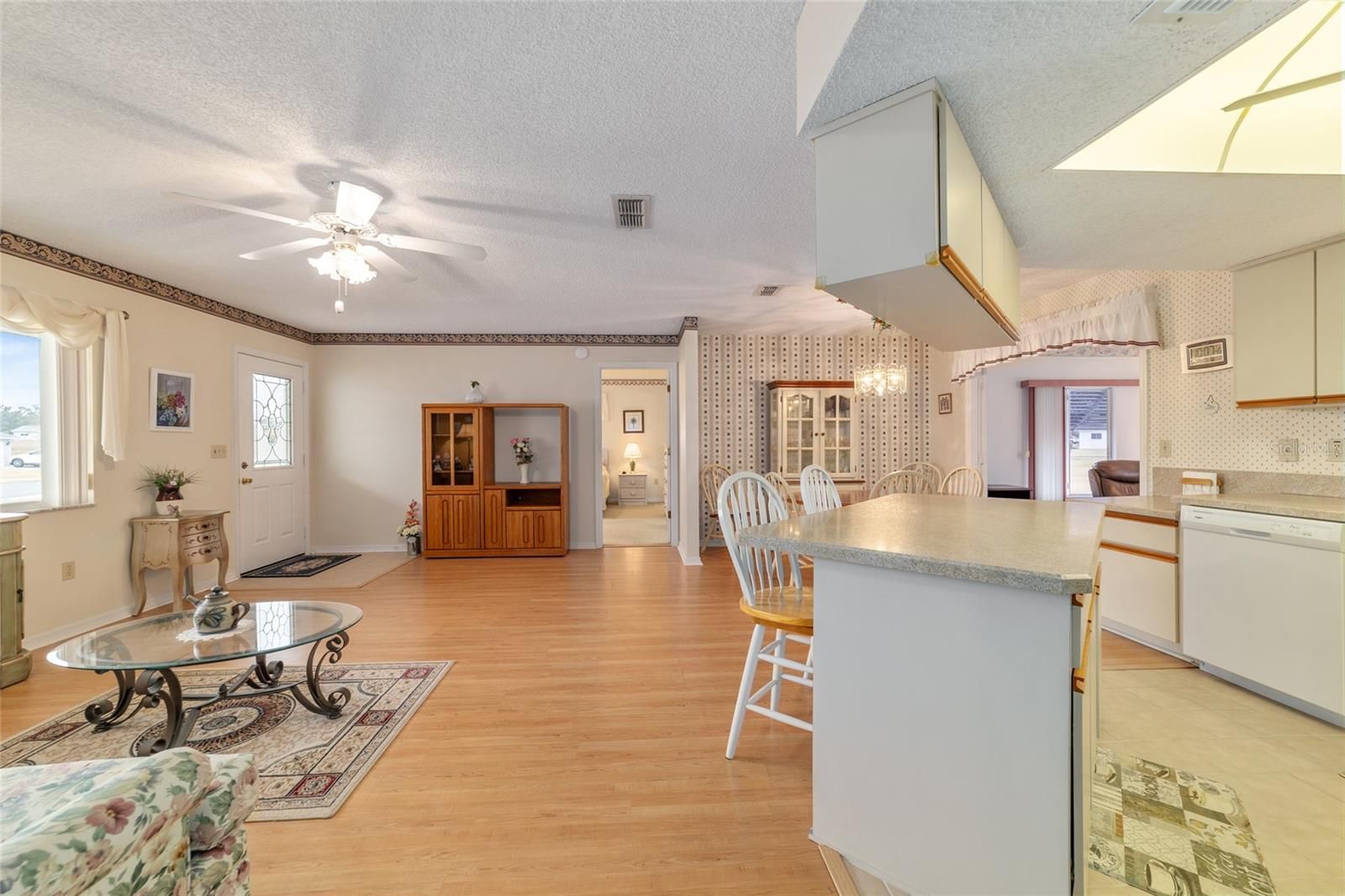 All IMPORTANT upgrades!!! Roof: 10/2022, HVAC: 12/2024, Water Heater: 2025, New Electrical Panel: 2025, Septic tank: emptied & visually inspected 11/2024 **** INSIDE LAUNDRY!!! *** GRASS in GREEN (photos taken while dormant) *** Be sure to watch the YouTube VIDEO TOUR: https://youtu.be/G-WWnZxU0vA ---Expanded Chestnut Model with 225 ft² Florida Room: Optionally TURNKEY!! Located in Spruce Creek South’s active retirement community. Where you can play: golf, pickleball, horseshoes, softball, bocce ball or participate in many other activities. Not a sports kind of person? They have a ballroom, pool & spa, fitness equipment, billiards, arts & crafts room, card room and even a library. After a wonderful day of activities, come home and relax in your Florida Room, your 210 ft² Lanai or on your Front Porch. As guests pull into the driveway, they’ll notice the curb appeal. When they enter your front door they are welcomed into an Open Floor Plan with plenty of natural light. Kitchen has a breakfast bar. OPEN CONCEPT to the kitchen is the Dining room and Living room with laminate flooring. Spacious primary bedroom has a walk-in-closet and ensuite with plenty of cabinets. Inside laundry room and utility sink. Whole House Water Purifier. Perfect home for someone who needs furniture right away (optional) and wants to update with their own touches! HURRY!