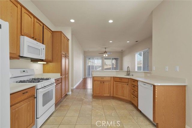 LOCATED IN APPLE VALLEY'S PREMIER 55+ GATED COMMUNITY! Beautiful two bedroom, two bath home. Bright and open floorplan. Spacious kitchen with breakfast bar, pantry and dining area. Large living room. Master bedroom with walk-in closet. Laundry room with sink and storage. Lots of cabinets in the garage. Fully landscaped with an aluma-wood rear covered patio. Enjoy an active and social lifestyle with all the amenities this community has to offer. Embrace the vibrant lifestyle of this active adult community with access to a stunning clubhouse equipped with indoor and outdoor pools, a modern gym, tennis courts, pool tables, golf course and a cozy community area with a fireplace for social gatherings. Close to shopping, movies, banks, clinics and restaurants.