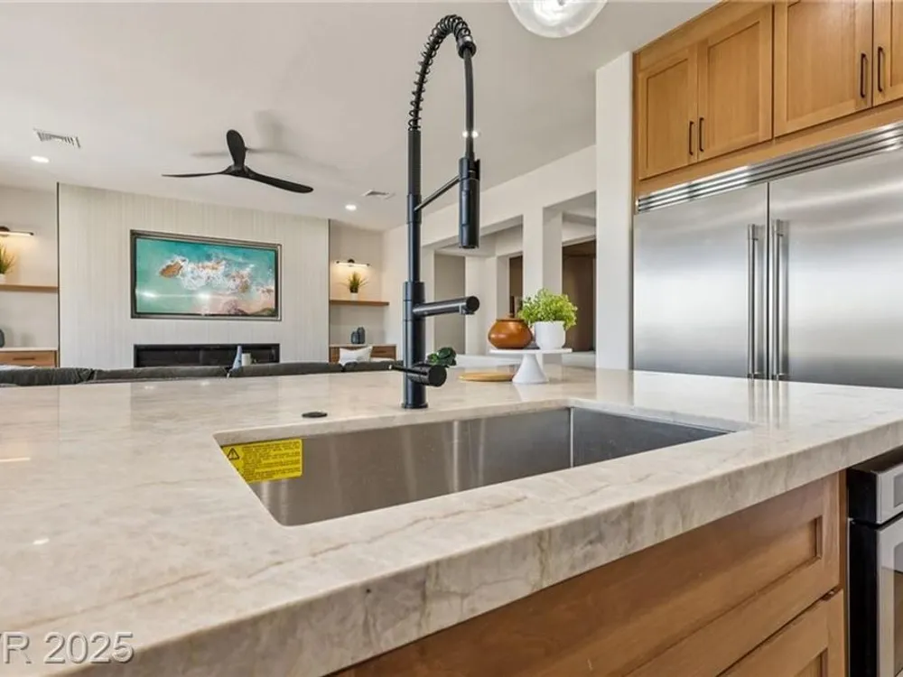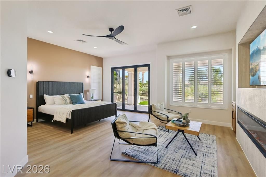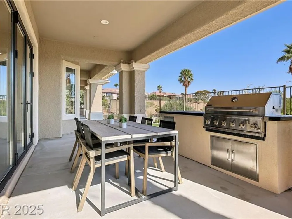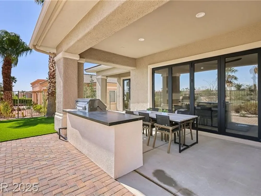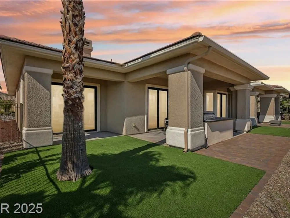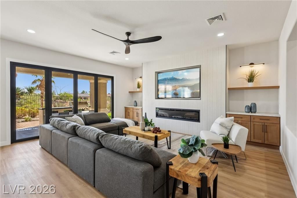 WELCOME TO YOUR OASIS ON THE GOLD COURSE - UNIQUELY SITUATED TO PROVIDE GREAT PRIVACY, YOU WILL FIND THIS FULLY REMODELED DESIGNER HOME WITH SEPARATE CASITA. UPGRADED W/ TOP QUALITY MATERIALS & FIXTURES INCLUDING BUT NOT LIMITED TO: NEW LUXURY VINYL PLANK FLOORS THROUGHOUT, FRESH INTERIOR & EXTERIOR PAINT, TWO TONE WHITE OAK CABINETRY W/ HIGH-END DESIGNER HARDWARE, CUSTOM FABRICATED TAJ MAHAL QUARTZITE COUNTERTOPS W/ OVERSIZED WATERFALL ISLAND, BRAND NEW LUXURY APPLIANCE PACKAGE IN THE KITCHEN, 2 CUSTOM BUILT LED FIREPLACES LOCATED IN THE FAMILY ROOM & PRIMARY BEDROOM, DESIGNER FIXTURES/FAUCETS/LIGHTING THROUGHOUT, A SPA STYLE PRIMARY BATH WITH HIS & HER VANITIES, CUSTOM TILED SHOWER W/ FREESTANDING TUB! FULL LANDSCAPE OVERHALL FRONT AND REAR! ENJOY THE GOLF COURSE VIEWS THROUGHOUT THE HOME. ENJOY YOUR OVERSIZED COVERED PATIO WITH OUTDOOR KITCHEN, AND BUILT IN FIRE PIT! THE HOME IS EVERYTHING YOU ARE LOOKING FOR IN THE BEST LOCATION IN SUMMERLIN.