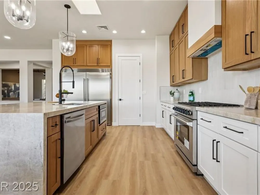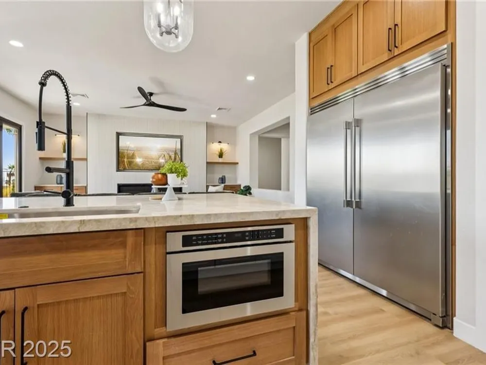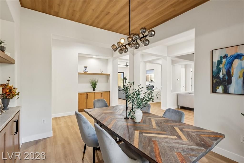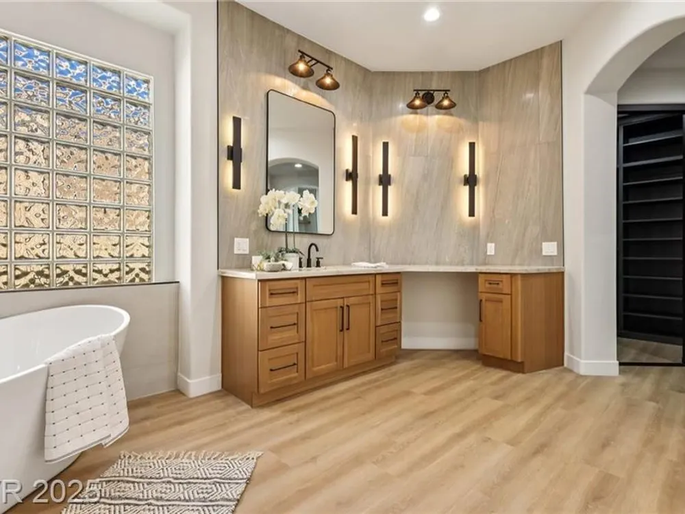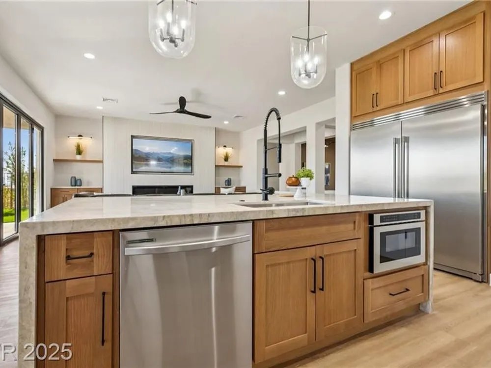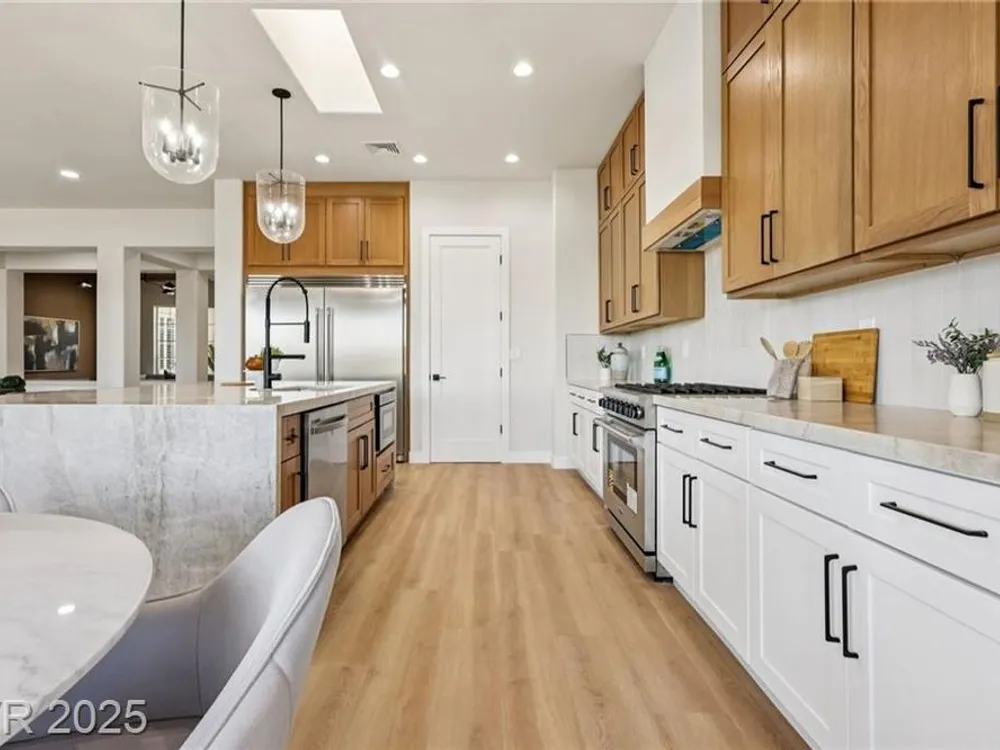 WELCOME TO YOUR OASIS ON THE GOLD COURSE - UNIQUELY SITUATED TO PROVIDE GREAT PRIVACY, YOU WILL FIND THIS FULLY REMODELED DESIGNER HOME WITH SEPARATE CASITA. UPGRADED W/ TOP QUALITY MATERIALS & FIXTURES INCLUDING BUT NOT LIMITED TO: NEW LUXURY VINYL PLANK FLOORS THROUGHOUT, FRESH INTERIOR & EXTERIOR PAINT, TWO TONE WHITE OAK CABINETRY W/ HIGH-END DESIGNER HARDWARE, CUSTOM FABRICATED TAJ MAHAL QUARTZITE COUNTERTOPS W/ OVERSIZED WATERFALL ISLAND, BRAND NEW LUXURY APPLIANCE PACKAGE IN THE KITCHEN, 2 CUSTOM BUILT LED FIREPLACES LOCATED IN THE FAMILY ROOM & PRIMARY BEDROOM, DESIGNER FIXTURES/FAUCETS/LIGHTING THROUGHOUT, A SPA STYLE PRIMARY BATH WITH HIS & HER VANITIES, CUSTOM TILED SHOWER W/ FREESTANDING TUB! FULL LANDSCAPE OVERHALL FRONT AND REAR! ENJOY THE GOLF COURSE VIEWS THROUGHOUT THE HOME. ENJOY YOUR OVERSIZED COVERED PATIO WITH OUTDOOR KITCHEN, AND BUILT IN FIRE PIT! THE HOME IS EVERYTHING YOU ARE LOOKING FOR IN THE BEST LOCATION IN SUMMERLIN.