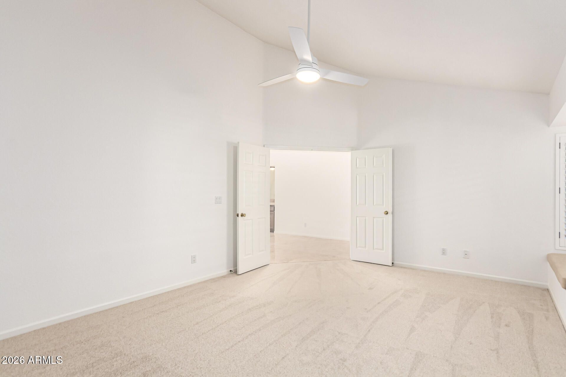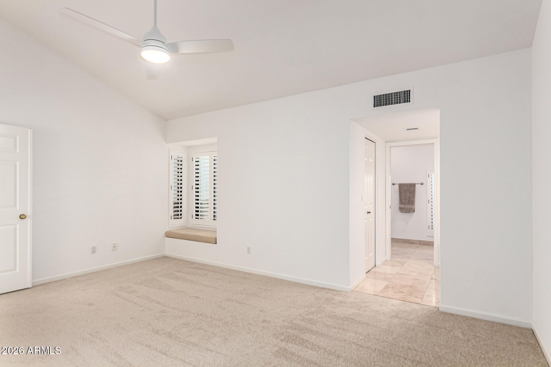 This light, bright 3 bedroom patio home sits on one of the best lots in Heritage Village IV in Scottsdale Ranch. The sunny south facing patio backs to open space & has a large retractable awning with automatic sensors for both sun & wind. Enjoy the expansive views from the patio, kitchen & family room. Step out the back gate to the walking path for an easy stroll to the community pool. All new Milgard windows & sliding doors Oct. 2024, new plantation shutters throughout Nov. 2024. HVAC new in 2021.. Built up roof resurfaced in August 2025. Interior paint & new carpet Jan. 2026. Primary bath has a spacious walk-in shower and a freestanding claw tub. Built in cabinetry in garage provides lots of extra storage. Professional photos coming...
