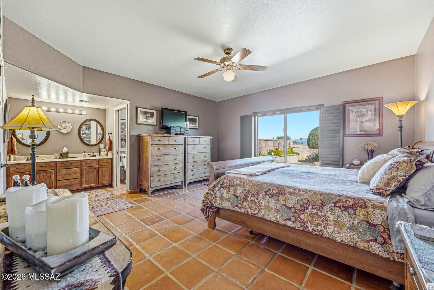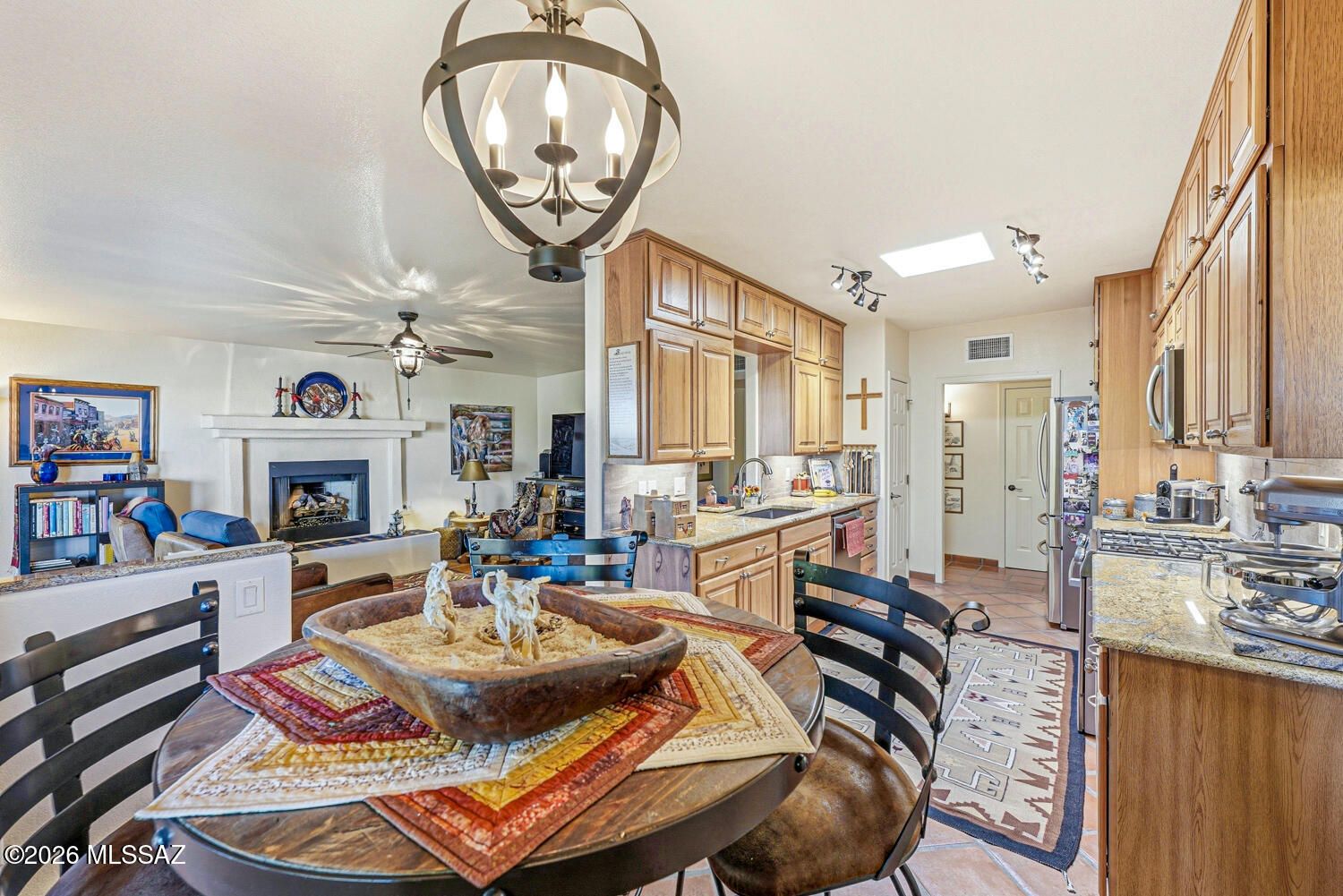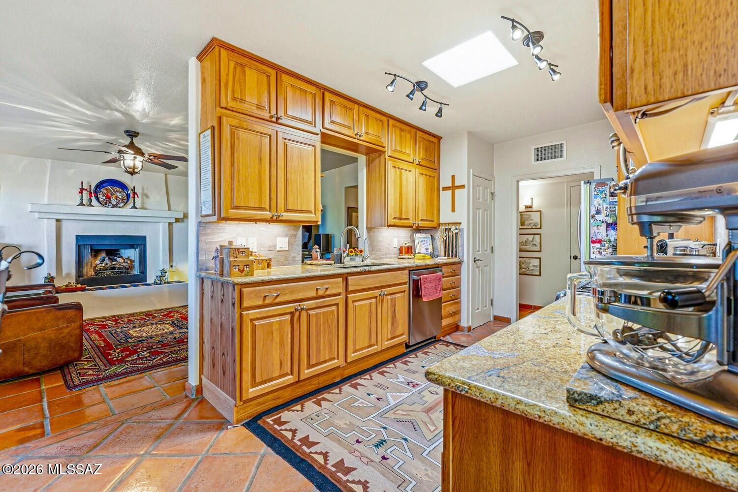 Stunning Custom Home on Over 1/3 Acre in Desirable Portillo Hills II! Welcome to a truly special property that blends custom finishes, thoughtful upgrades, and breathtaking outdoor living. Perfectly situated on a spacious over 1/3-acre lot, this beautiful 3-bedroom, 2-bath home offers style, comfort, and exceptional attention to detail throughout.From the moment you step inside, you'll be captivated by the warmth of beautiful Saltillo tile flooring, elegant Anderson windows, and wood plantation shutters throughout. The inviting living and dining area features high ceilings and a stylish modern light fixture, creating the perfect space for entertaining. At the heart of the home is the tastefully remodeled kitchen, designed to impress with granite countertops, rich hickory cabinetry with