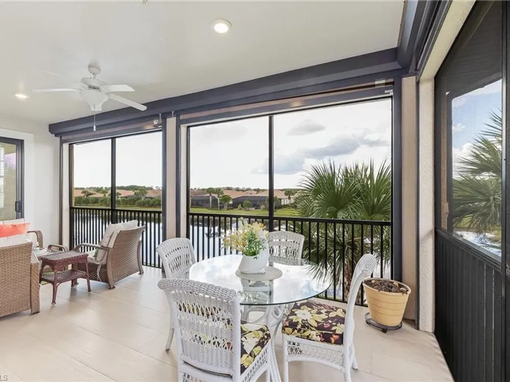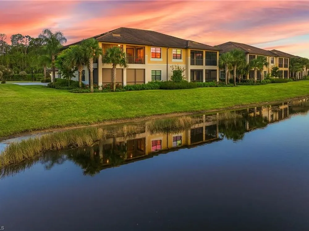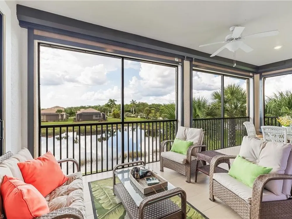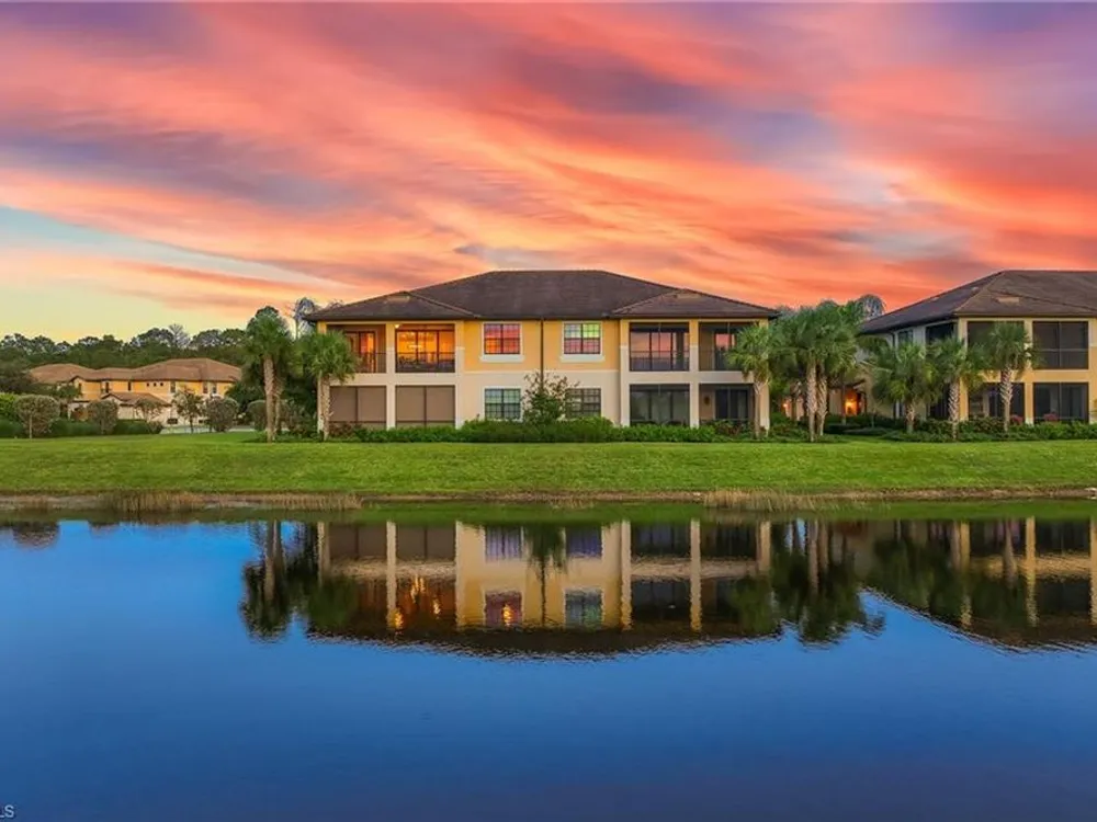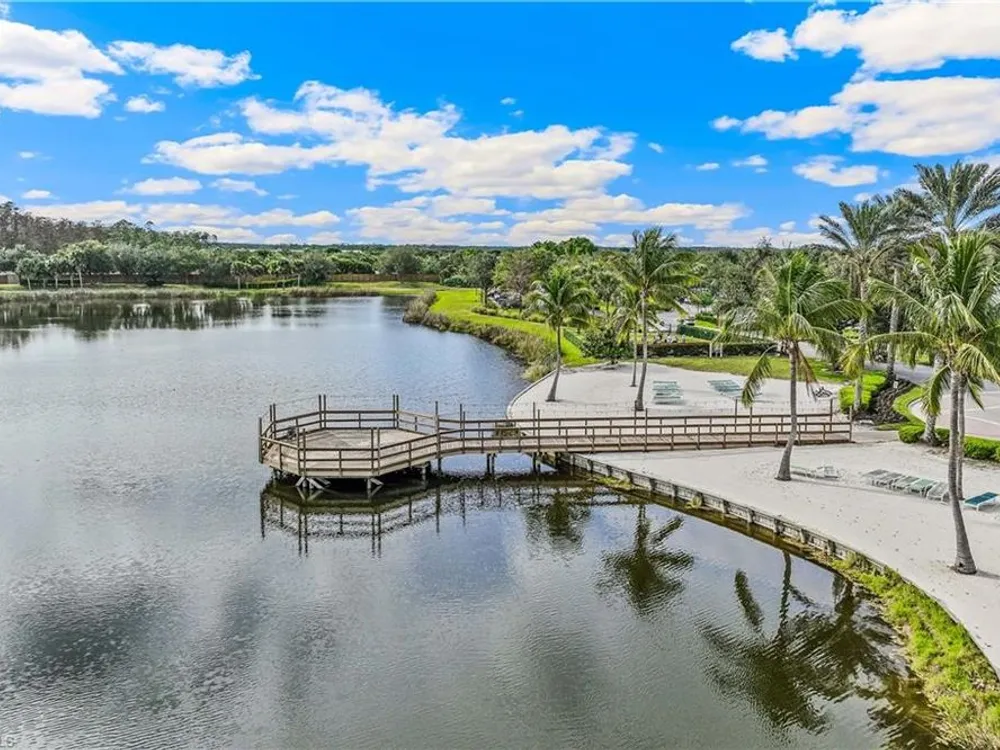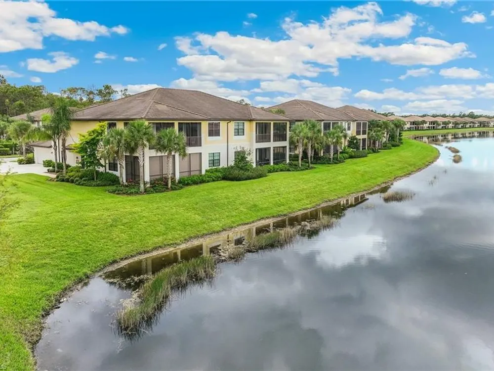 ONE OF THE BEST LAKE/WATER VIEWS IN PELICAN PRESERVE. . . Perfectly positioned with a short walk to Casella's Community Pool, this spacious, second floor unit w/private elevator spans over 2,500 total sq. ft. The bright and sunny unit with its volume, tray ceilings feature updates of new interior paint throughout with soothing shades of all-natural hues to compliment the negotiable brand-new coastal furnishings and beautiful new carpet flooring. The open concept designed kitchen has premium stainless-steel appliances; 42" white cabinets; counter bar island seating; large walk-in pantry with custom built-in shelving; and beautiful white quartz counter tops w/new tile backsplash. Multiple sets of sliding glass doors lead out to the covered lanai w/new tile flooring + electric hurricane shutters. The enclosed, screened balcony offers endless, panoramic sunsets captured by its coveted western facing lake view. A two-car garage with added storage hooks and shelf + laundry room with new cabinets and sink complete this unit with flexible storage space options. Perfect for anyone seeking a second home or as a permanent residence. . . this home invites true resort-style living and an elite lifestyle in an amenity rich, active 55+ community. Go to www.PelicanPreserveLifestyles.com to check out all of the Town Center's community offerings of multiple sports, arts & crafts activities, social clubs, indoor movies and live concerts. Truly a coastal get-a-way you’ll love coming home to.