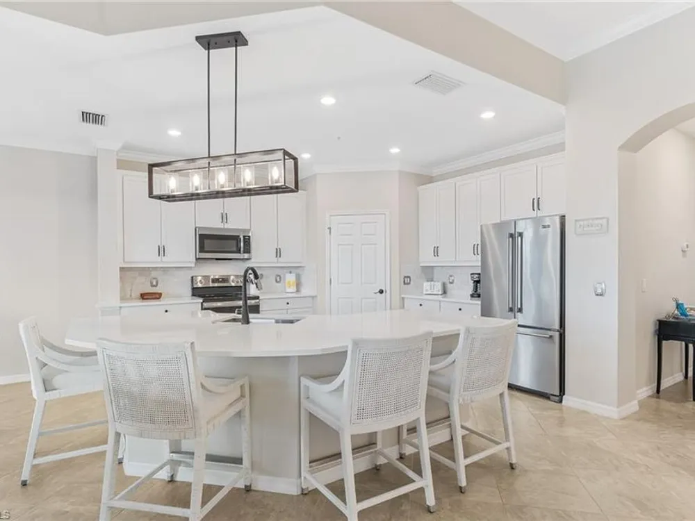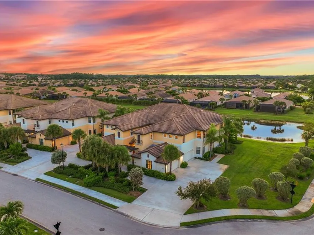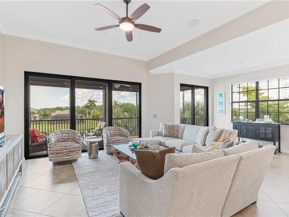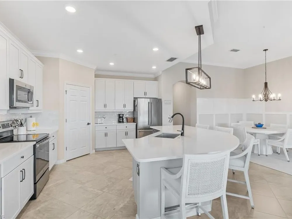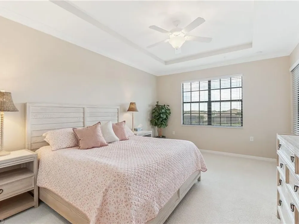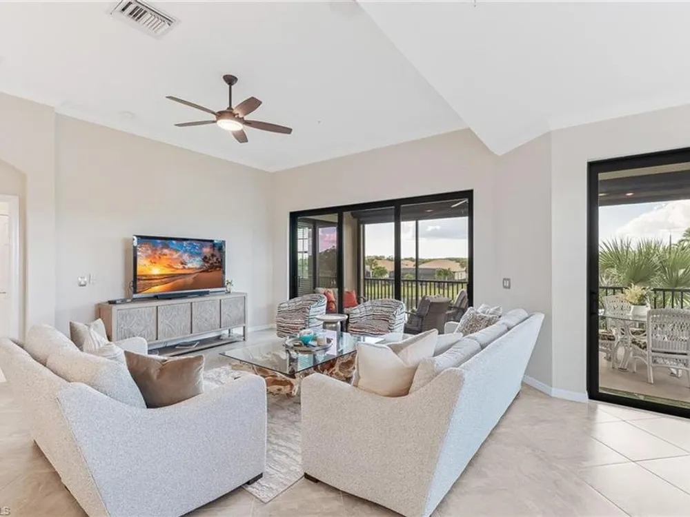 ONE OF THE BEST LAKE/WATER VIEWS IN PELICAN PRESERVE. . . Perfectly positioned with a short walk to Casella's Community Pool, this spacious, second floor unit w/private elevator spans over 2,500 total sq. ft. The bright and sunny unit with its volume, tray ceilings feature updates of new interior paint throughout with soothing shades of all-natural hues to compliment the negotiable brand-new coastal furnishings and beautiful new carpet flooring. The open concept designed kitchen has premium stainless-steel appliances; 42" white cabinets; counter bar island seating; large walk-in pantry with custom built-in shelving; and beautiful white quartz counter tops w/new tile backsplash. Multiple sets of sliding glass doors lead out to the covered lanai w/new tile flooring + electric hurricane shutters. The enclosed, screened balcony offers endless, panoramic sunsets captured by its coveted western facing lake view. A two-car garage with added storage hooks and shelf + laundry room with new cabinets and sink complete this unit with flexible storage space options. Perfect for anyone seeking a second home or as a permanent residence. . . this home invites true resort-style living and an elite lifestyle in an amenity rich, active 55+ community. Go to www.PelicanPreserveLifestyles.com to check out all of the Town Center's community offerings of multiple sports, arts & crafts activities, social clubs, indoor movies and live concerts. Truly a coastal get-a-way you’ll love coming home to.